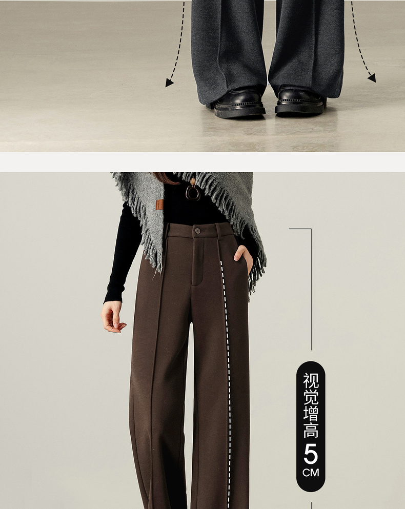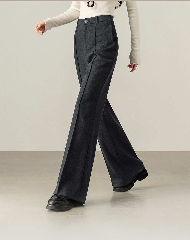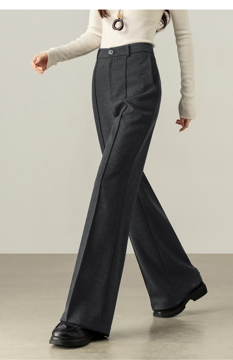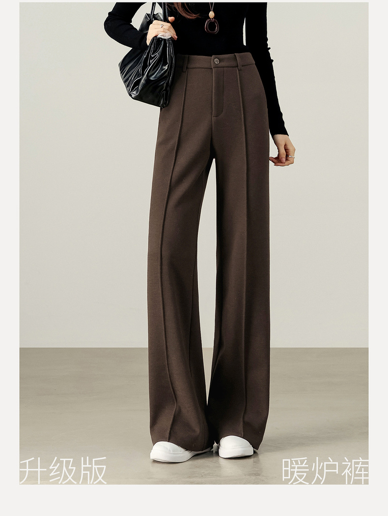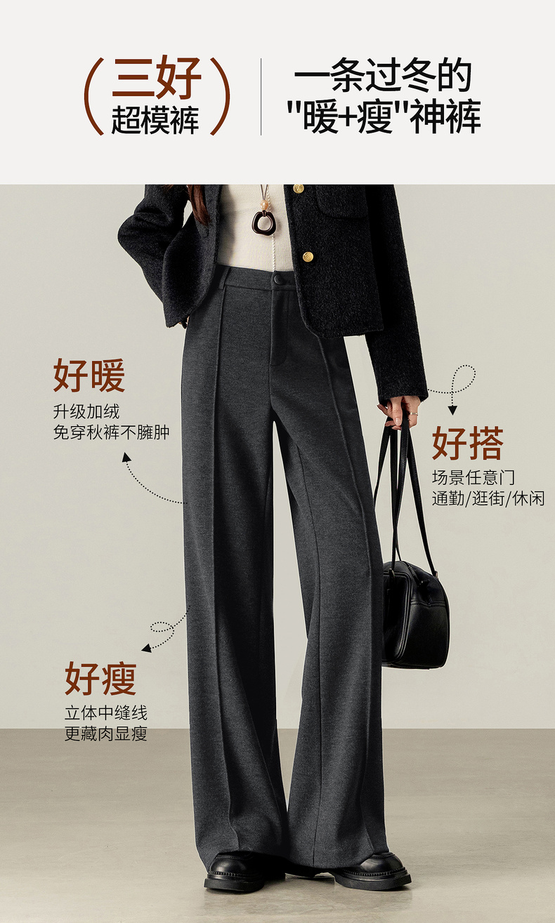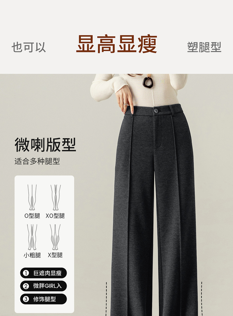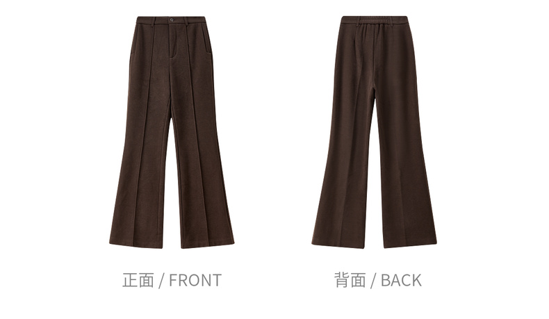 【内购】简约通勤舒适橡筋后腰显瘦拼接线条加绒保暖含绵羊毛微喇叭裤-154KH5388