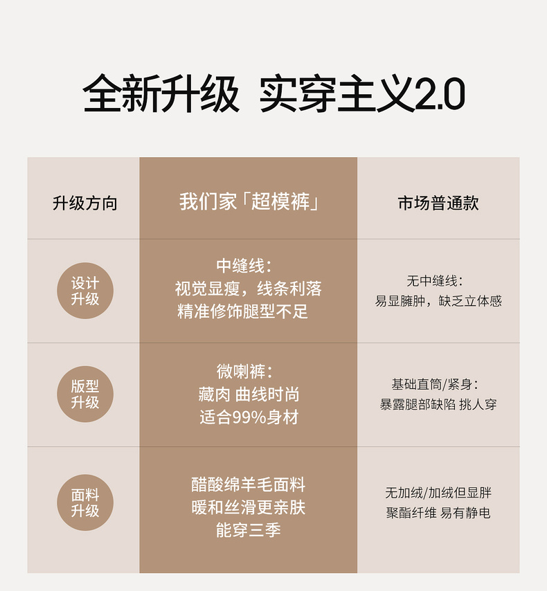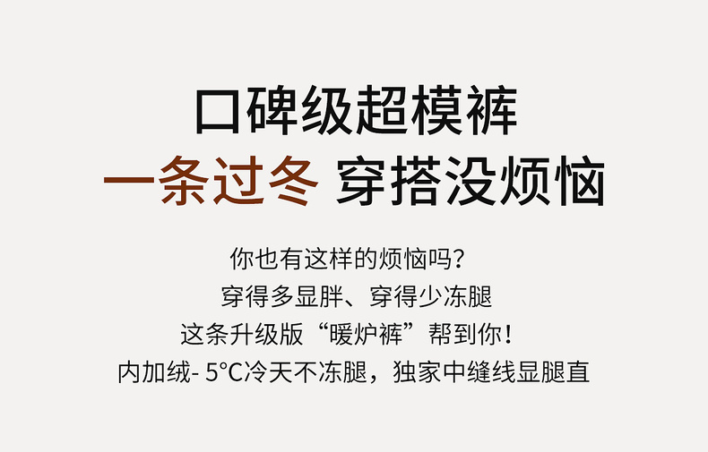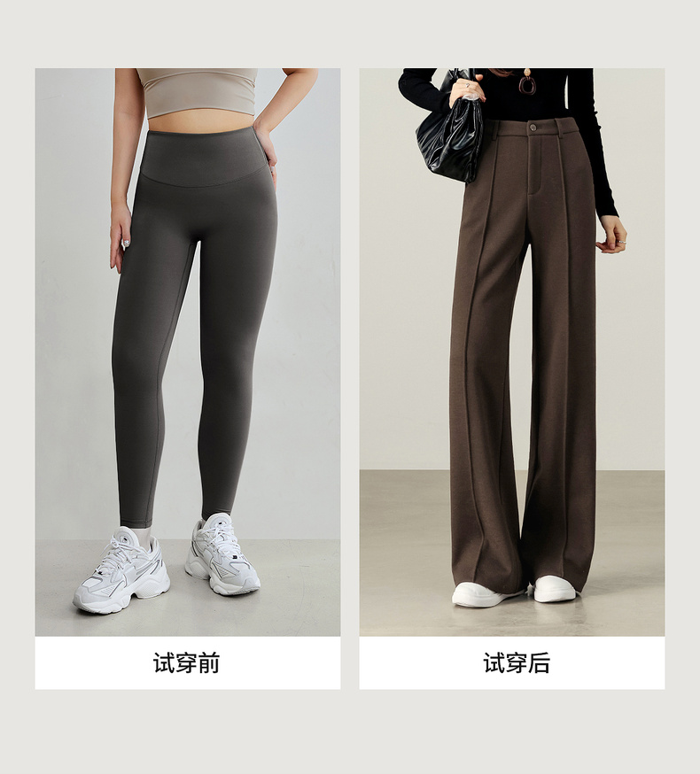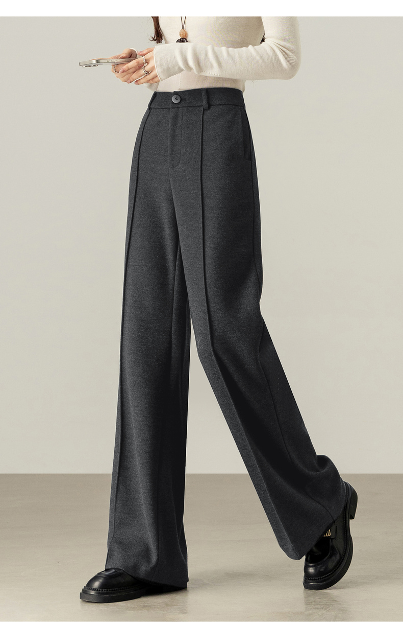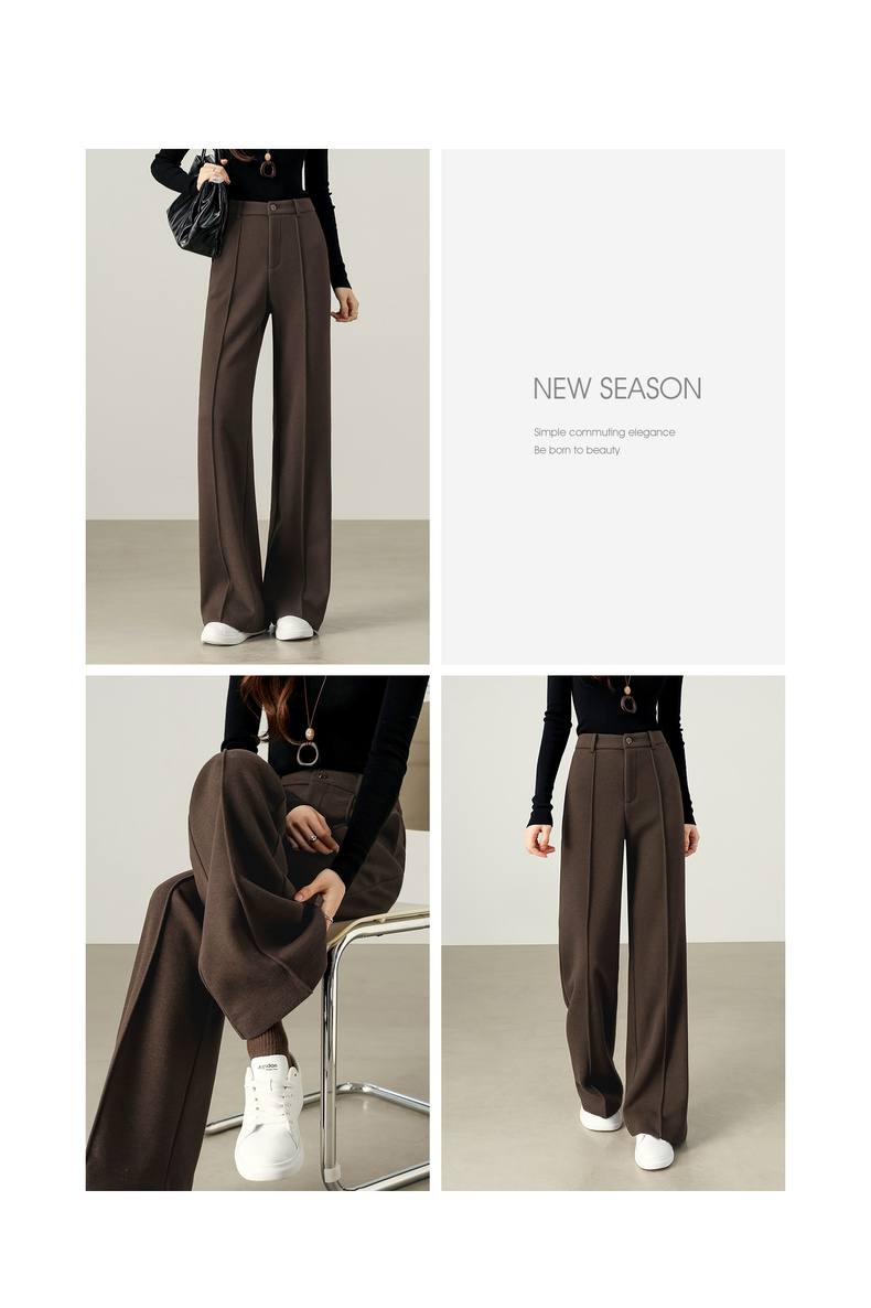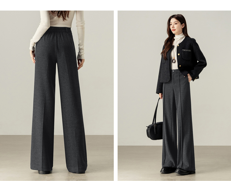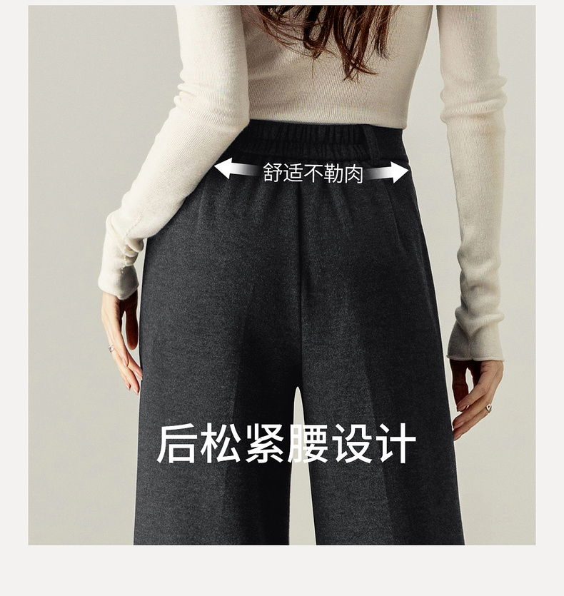 【内购】简约通勤舒适橡筋后腰显瘦拼接线条加绒保暖含绵羊毛微喇叭裤-154KH5388