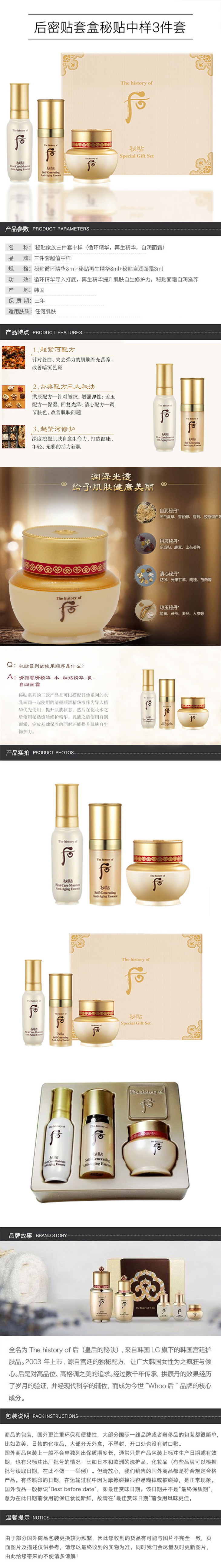 【现货】韩国Whoo后护肤 秘贴中样三件套装