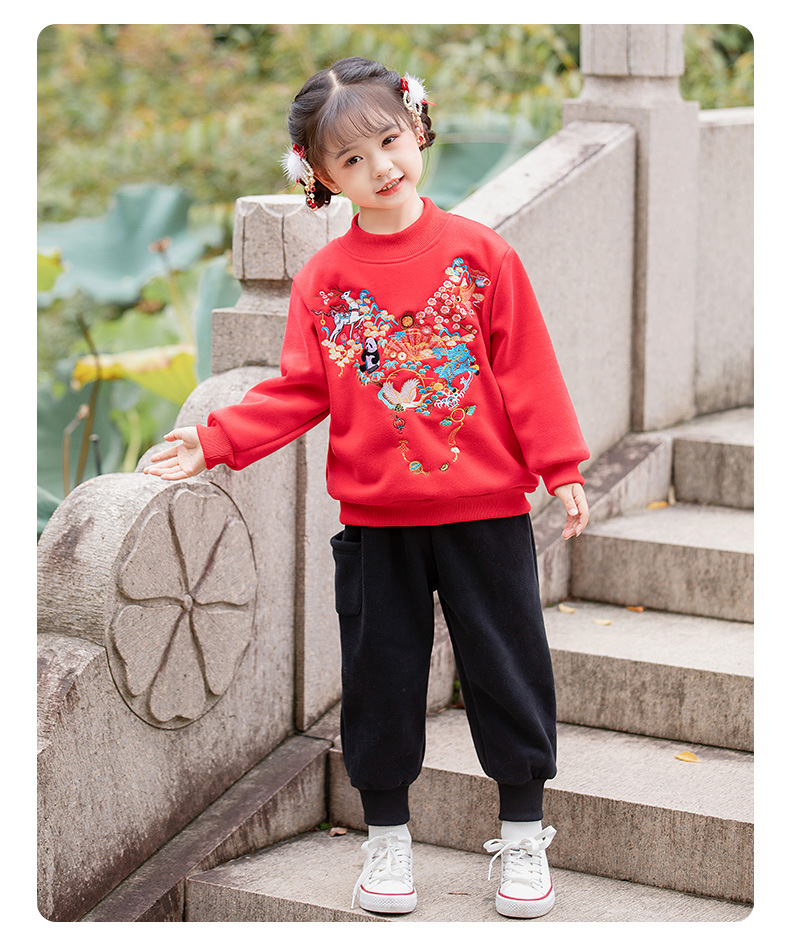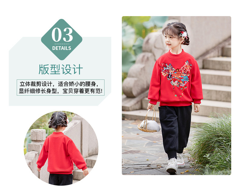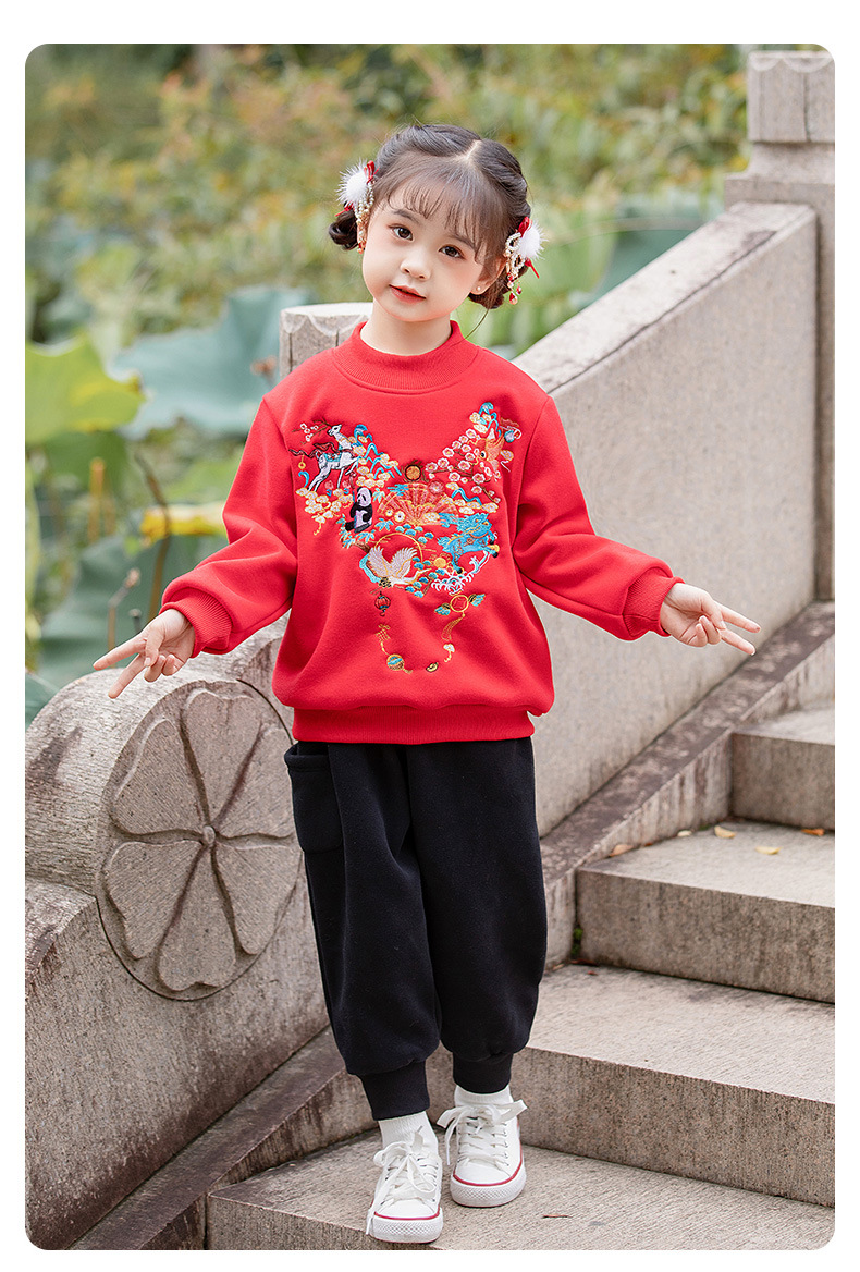 儿童拜年服套装,中国风刺绣加绒过年服ZL2299