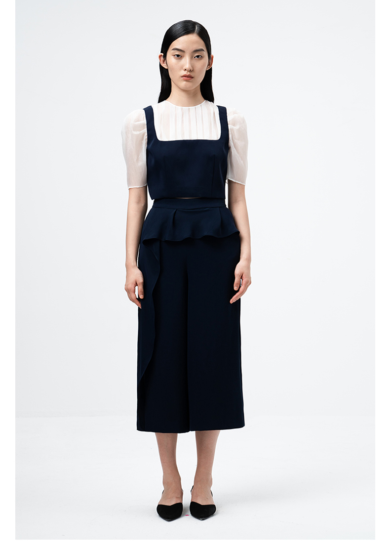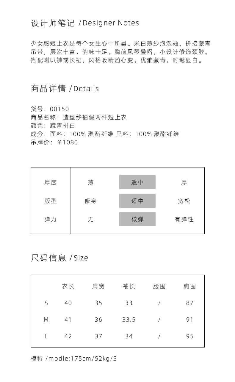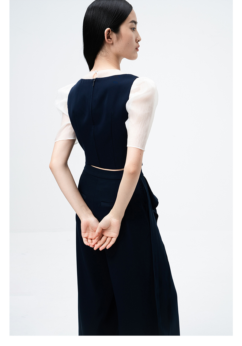 AtelierMissLu /Liliana-泡泡袖藏青拼白短上衣