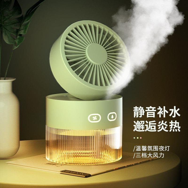 新款跨境水冷风扇usb迷你小风扇桌面风扇可折叠喷雾加湿冷风