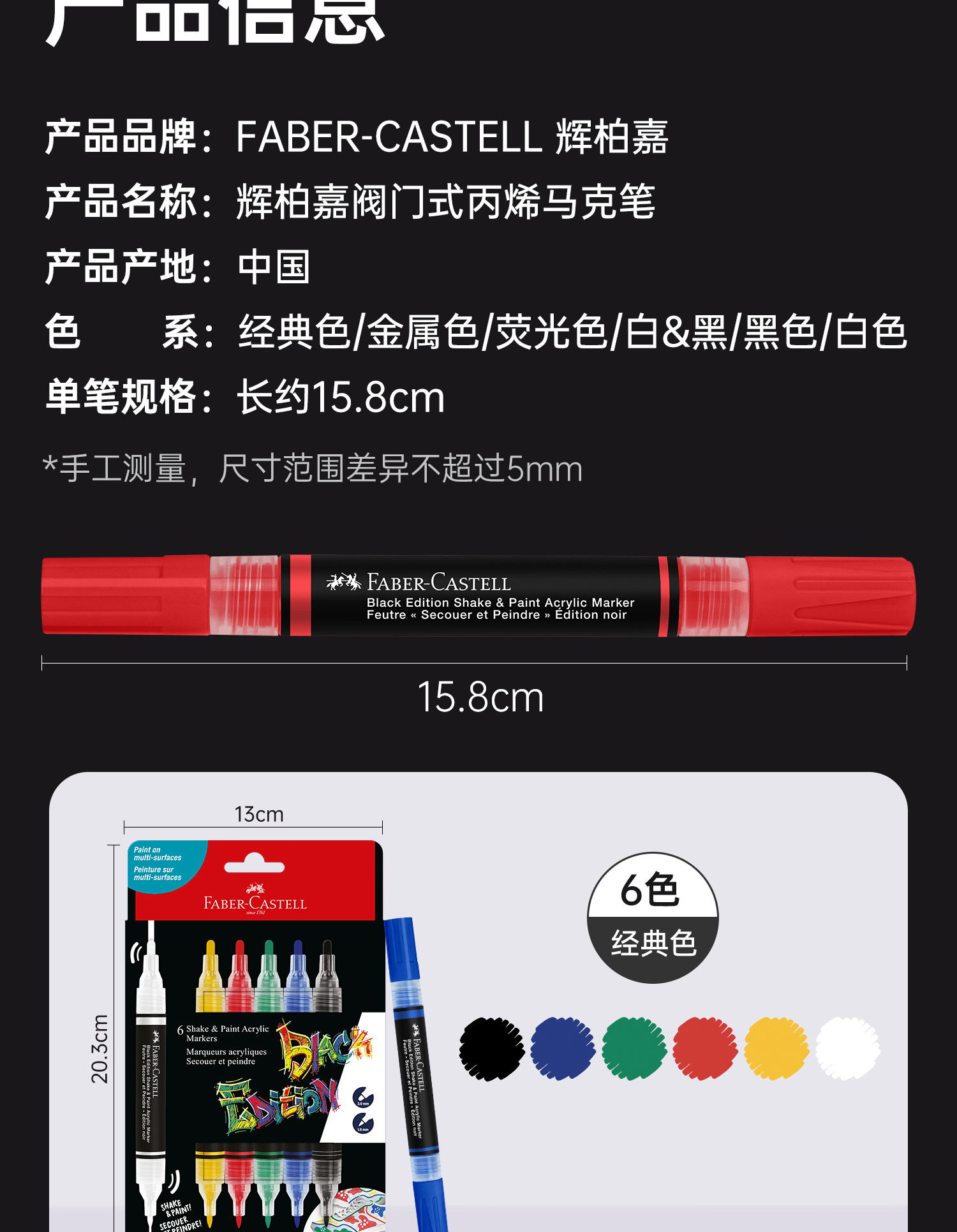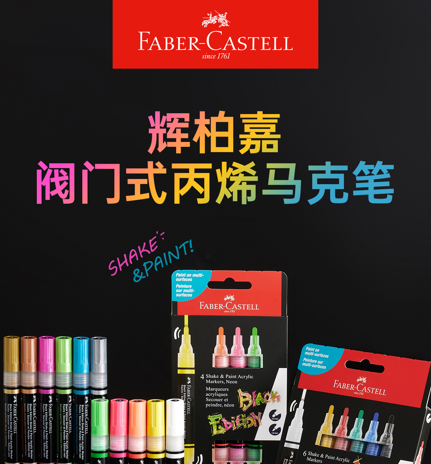 德国辉柏嘉丙烯马克笔记号笔水性涂鸦笔POP海报广告笔绘画美术生彩绘