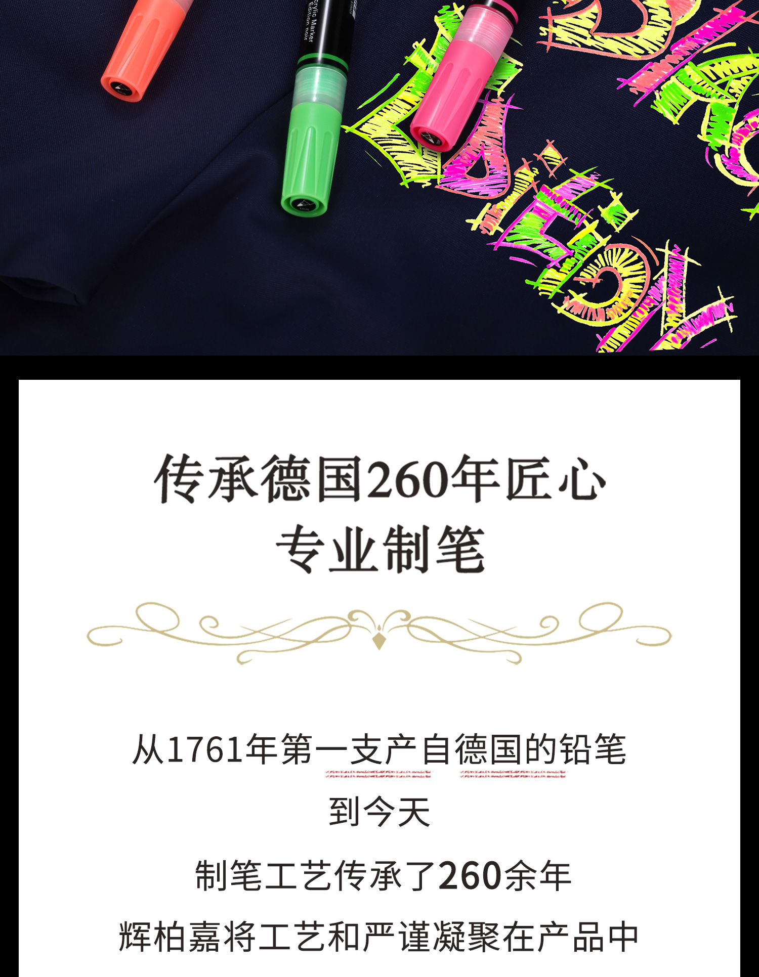 - 德国辉柏嘉,始创于1761年的家族品牌,历经259年岁月洗礼的制笔权威,一直致力于提供高品质书写及绘画艺术创作工具的专业制造商。