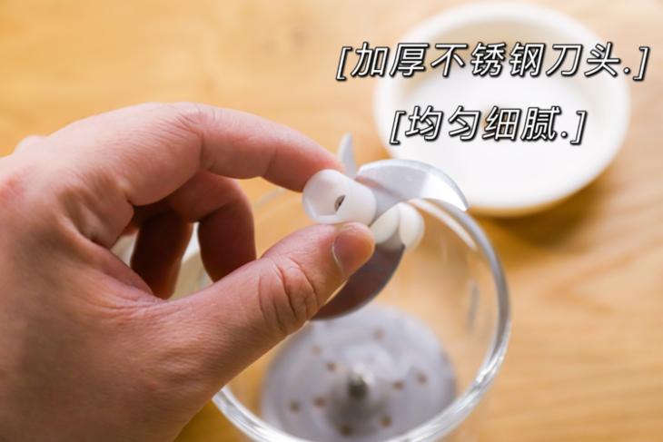 看着这么一个小巧精简的捣蒜器, 其实动力真的很足,强力高转,秒出细腻 想吃什么馅都能轻松搞定,不用再为剁馅而觉得麻烦。