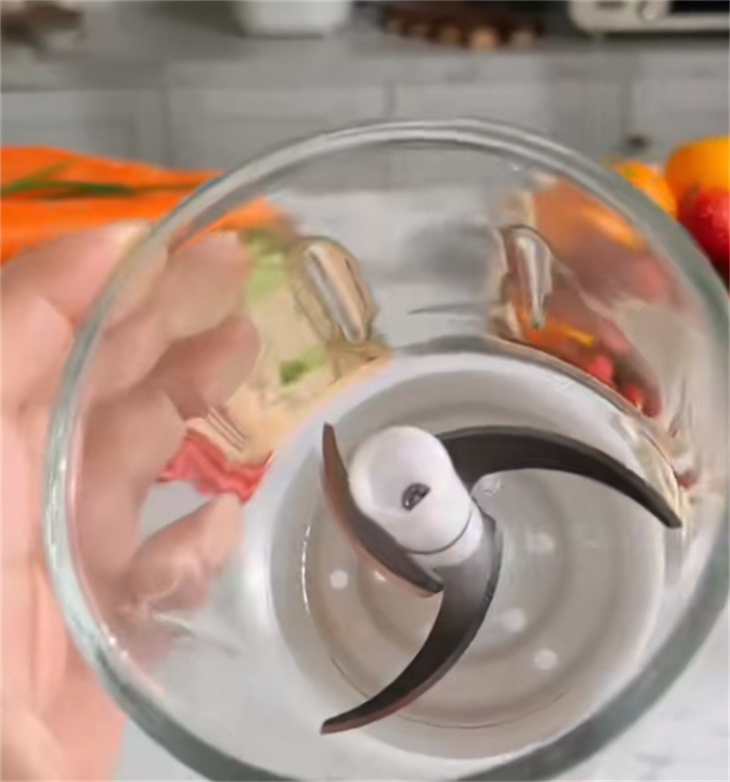 ✨锋利立体三叶刀头,绞肉碎菜不在话下💯 耐磨耐腐蚀非常实用!🍎😃 切啥都是嗖嗖的,上下刀刃,能在360度无死角旋转下细腻地绞碎食材。 比起手剁配料,不仅更省事,还更加细腻好吃~ 加厚玻璃料理杯也是食品级材质哒