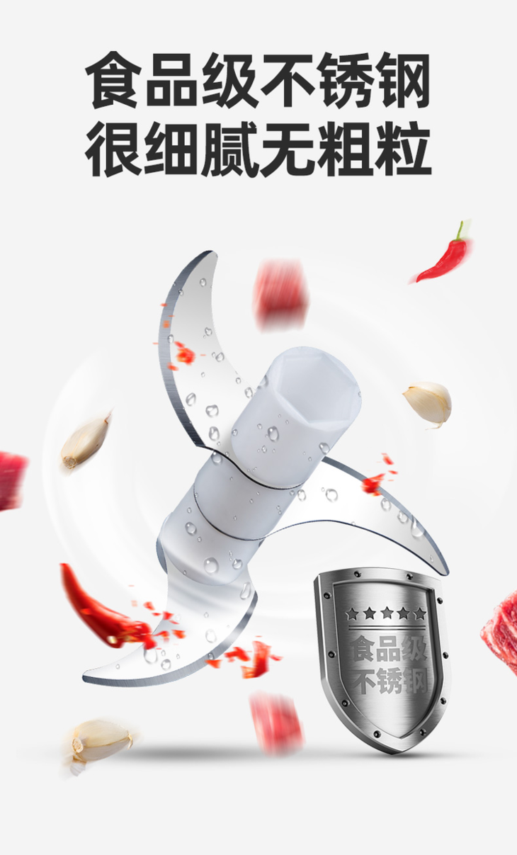 杯身结实耐用,易清洗不串味; 宝妈们可以放心用ta做宝宝辅食~ 使用操作超级方便,秒出蒜末新鲜不浪费