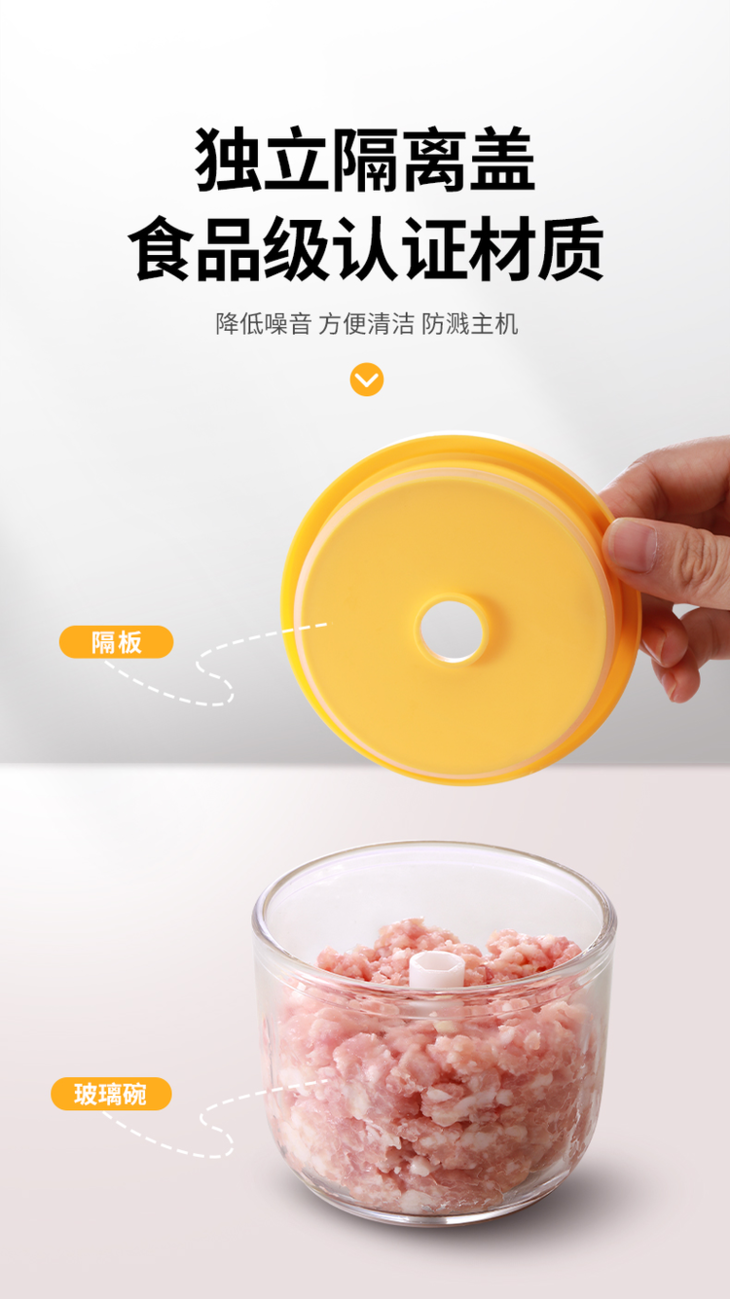 可以根据搅打工作的时间,来决定蒜末的粗细。 无论是炒菜用的蒜末,还是烧烤用的蒜蓉,凉拌用的蒜泥,一切安排的妥妥当当。 350ml玻璃杯身,一次性完成全家蘸料,更方便冲洗,不串味 创新隔离盖,食材不粘机身,使用更安全,更轻音!! 有了它,蒜蓉自然不说,肉馅、胡萝卜泥、小米辣……统统都不在话下。