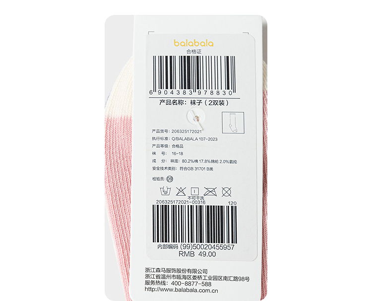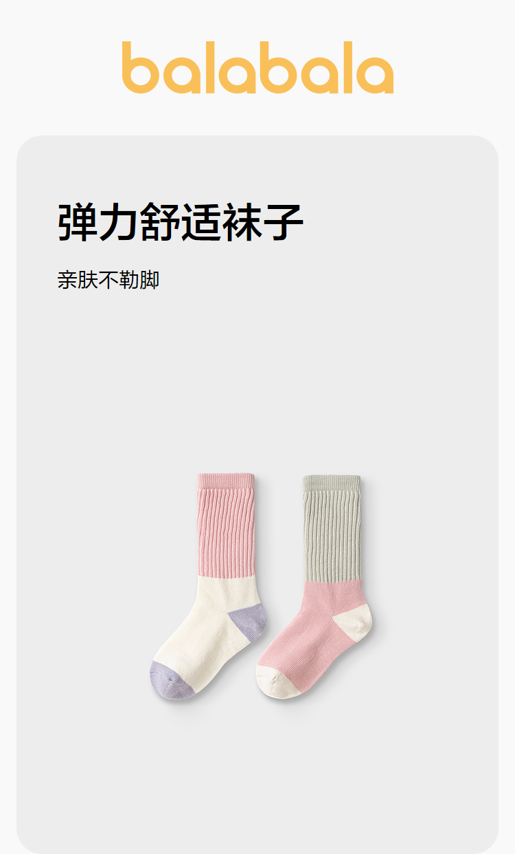 巴拉巴拉女童袜子秋新品儿童中筒袜不勒脚撞色两双装