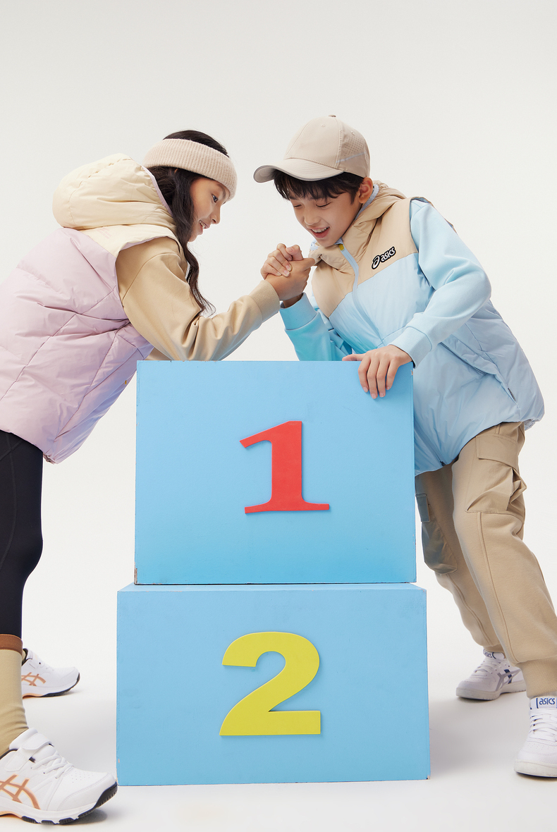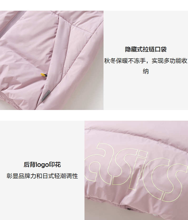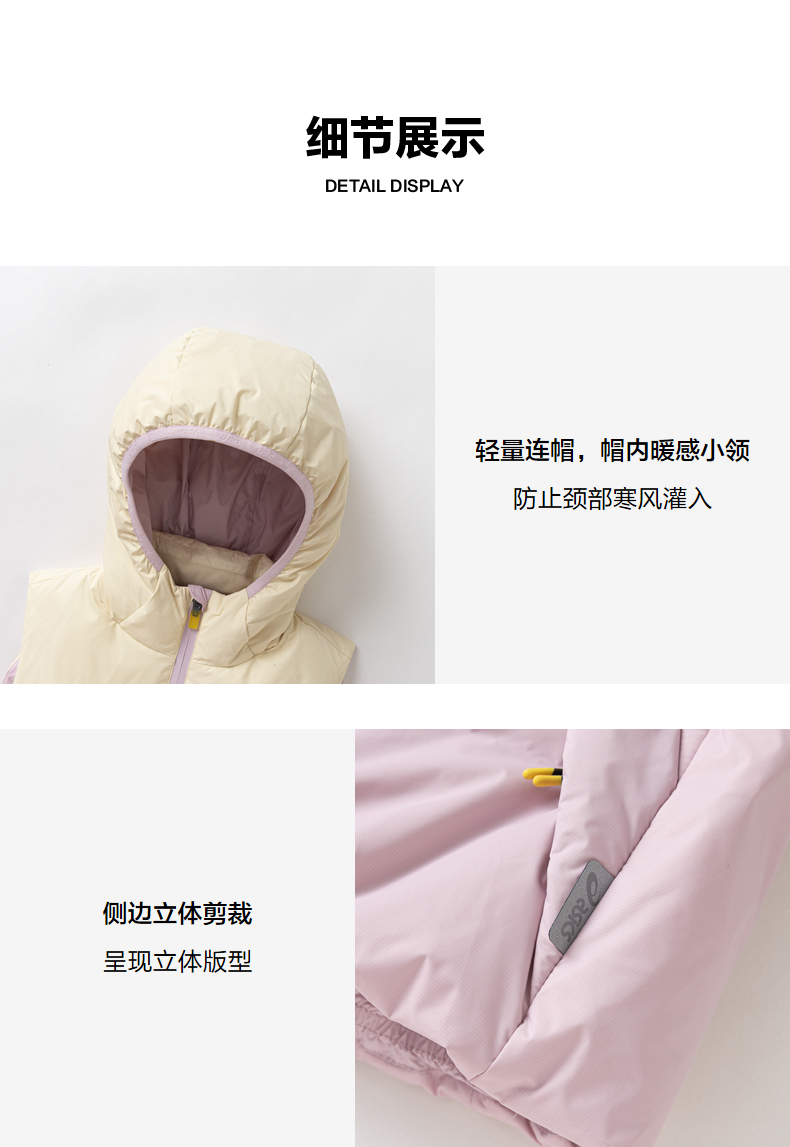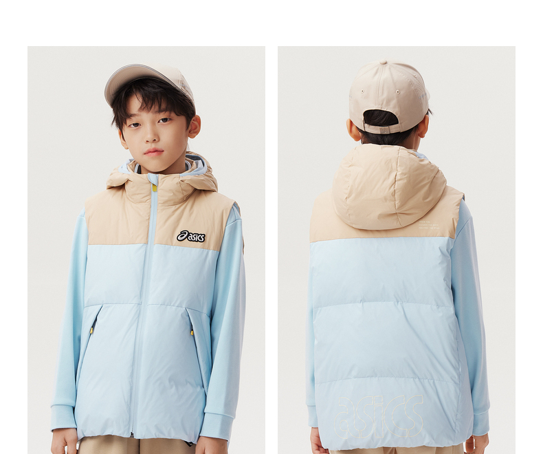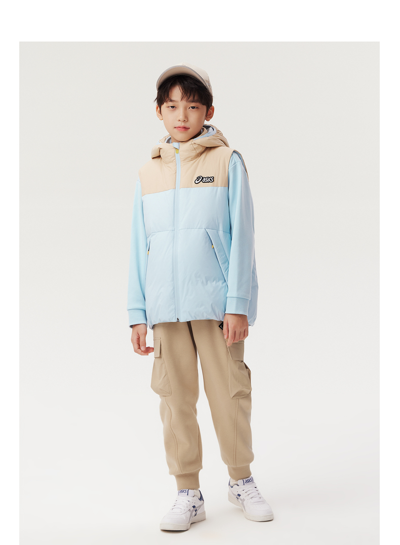 【商场同款】Asics/亚瑟士童装羽绒马甲防水保暖2024年秋冬季新款