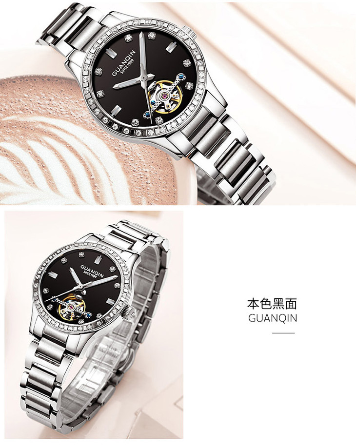 冠琴手表女士机械表全自动镂空防水潮流新款学生时尚镶钻女表GJ16102