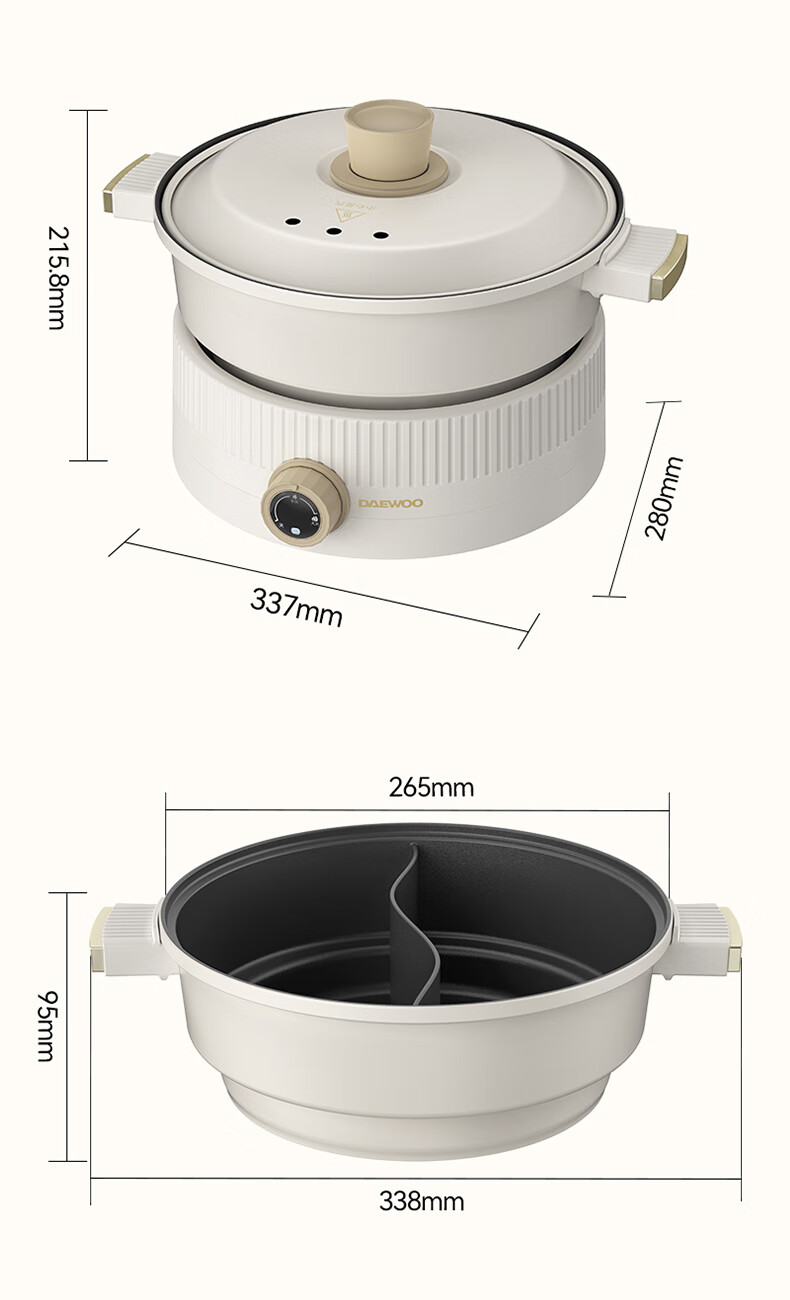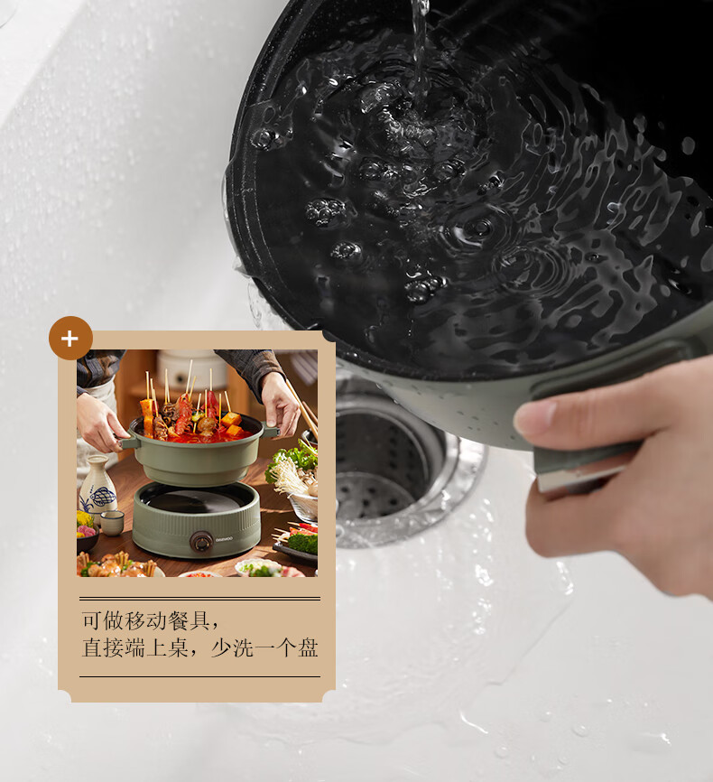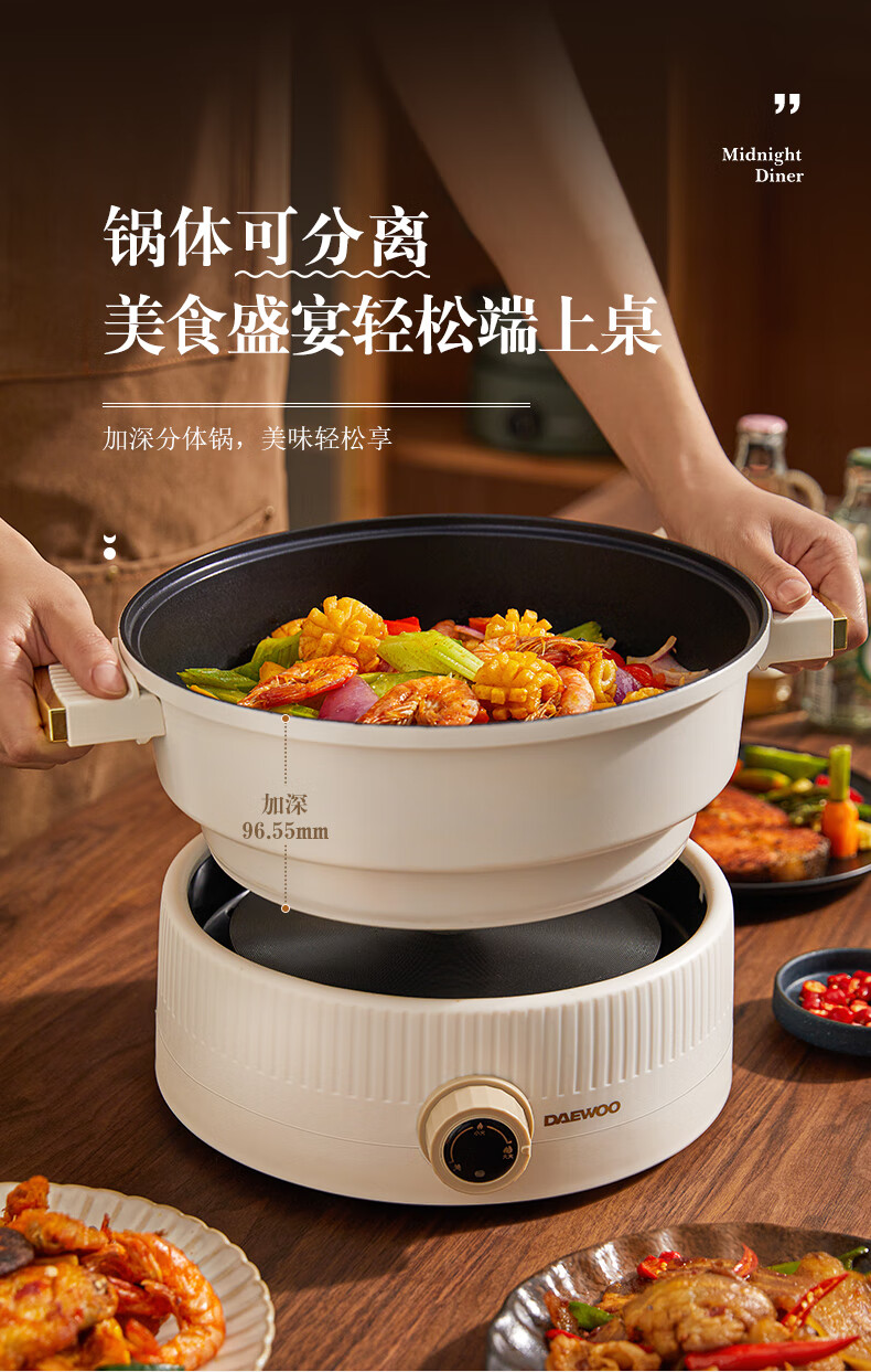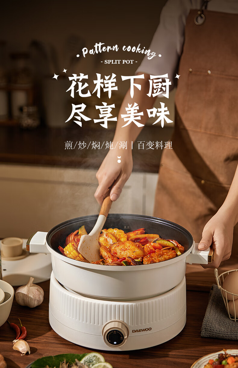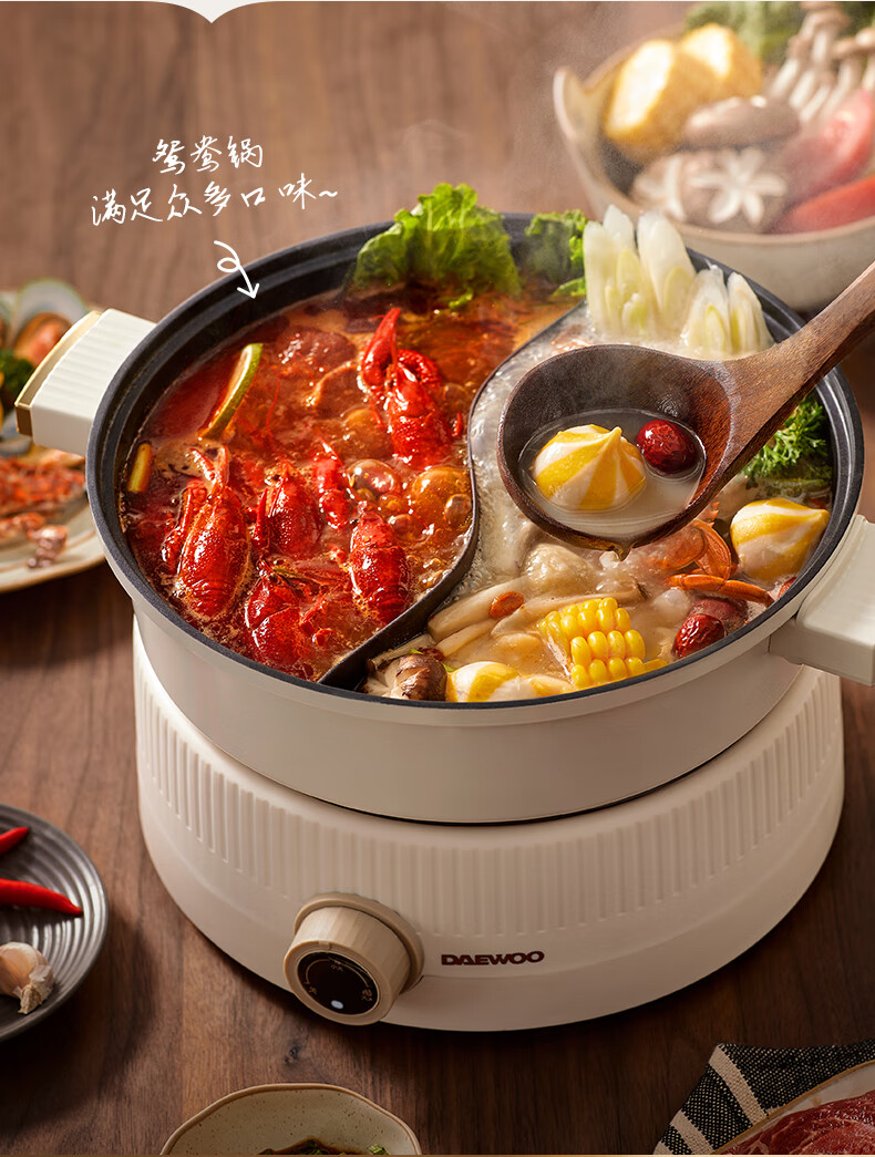 大宇分体式电火锅 专用锅家用电煮锅多功能炒锅涮煮多用途小火锅锅不沾电热锅1-4人用S18-NTB【伊藤优选302401】
