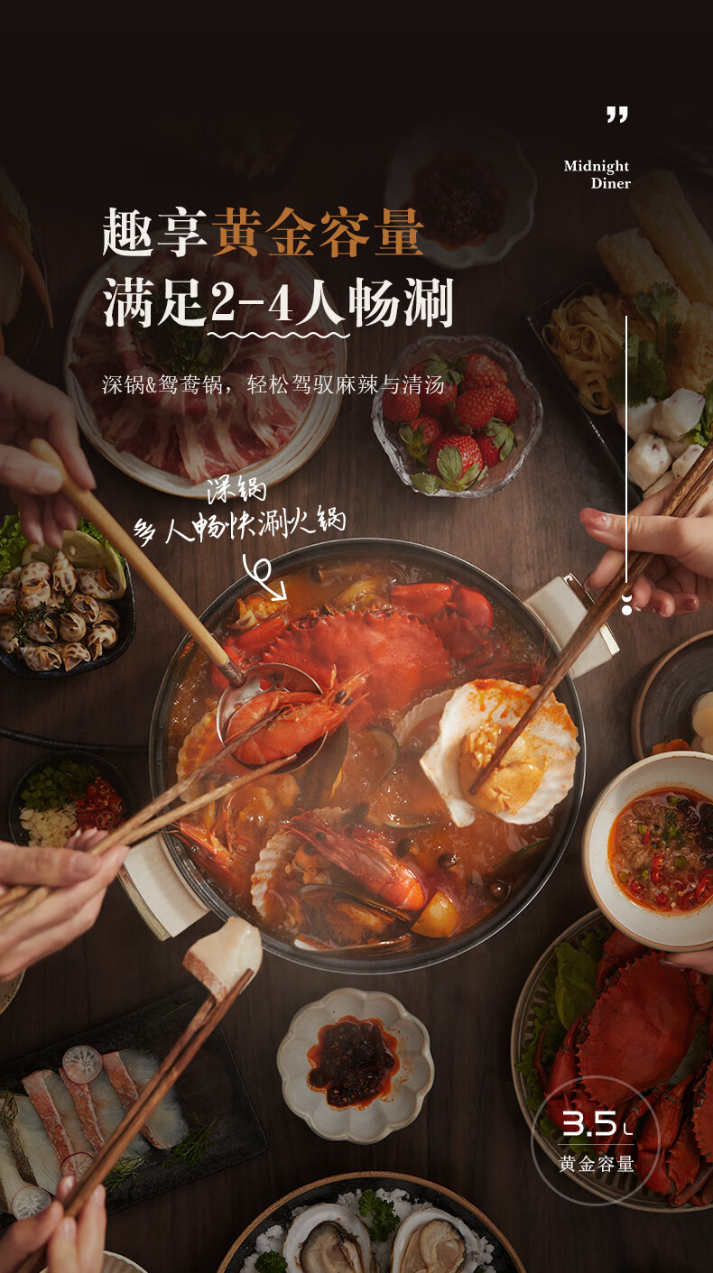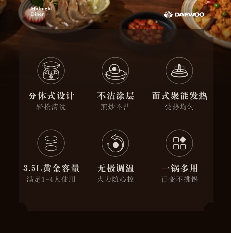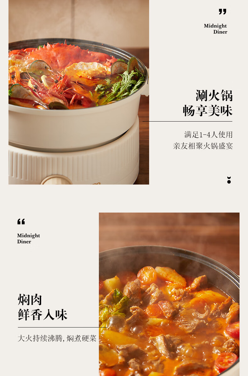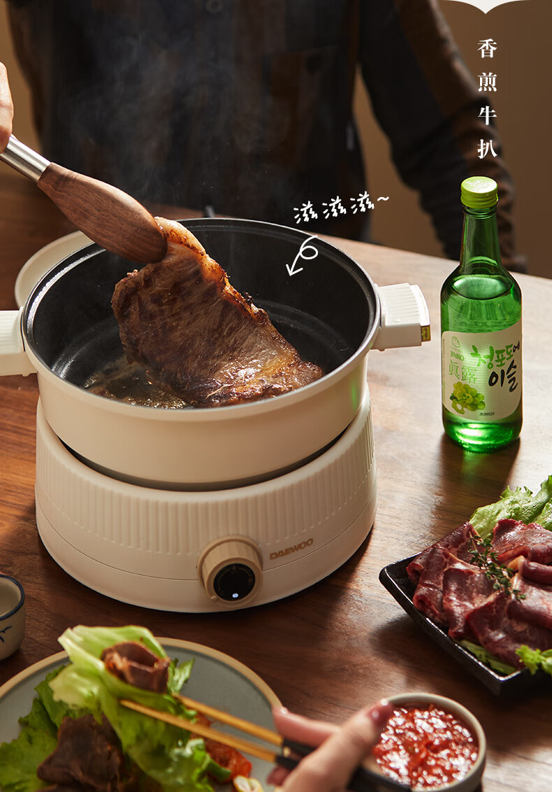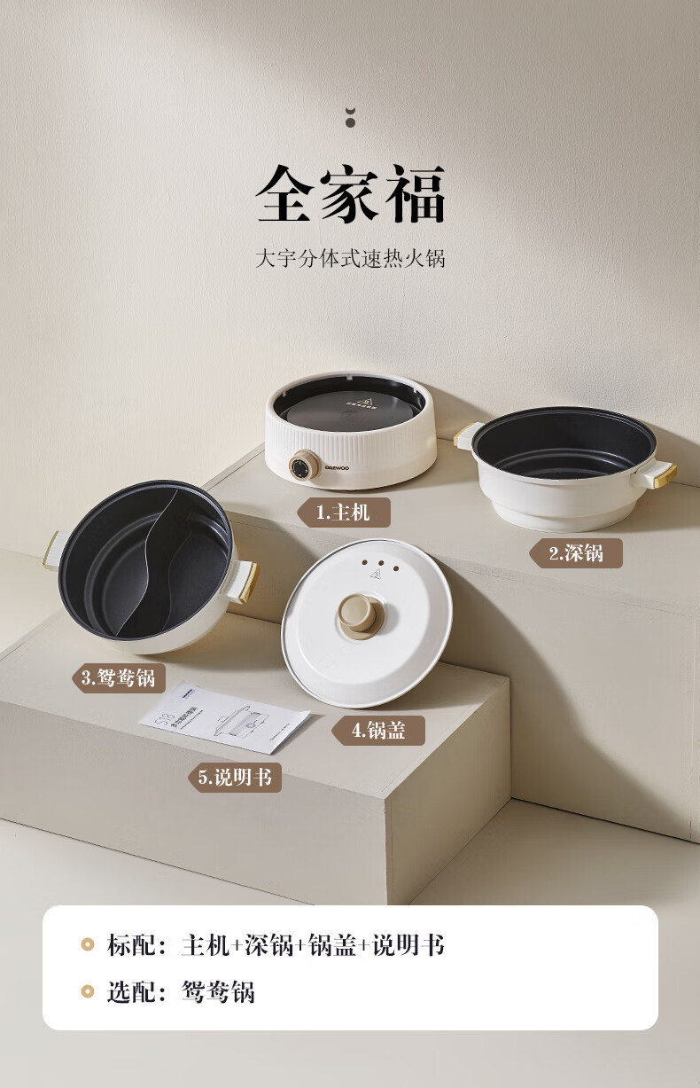 大宇分体式电火锅 专用锅家用电煮锅多功能炒锅涮煮多用途小火锅锅不沾电热锅1-4人用S18-NTB【伊藤优选302401】