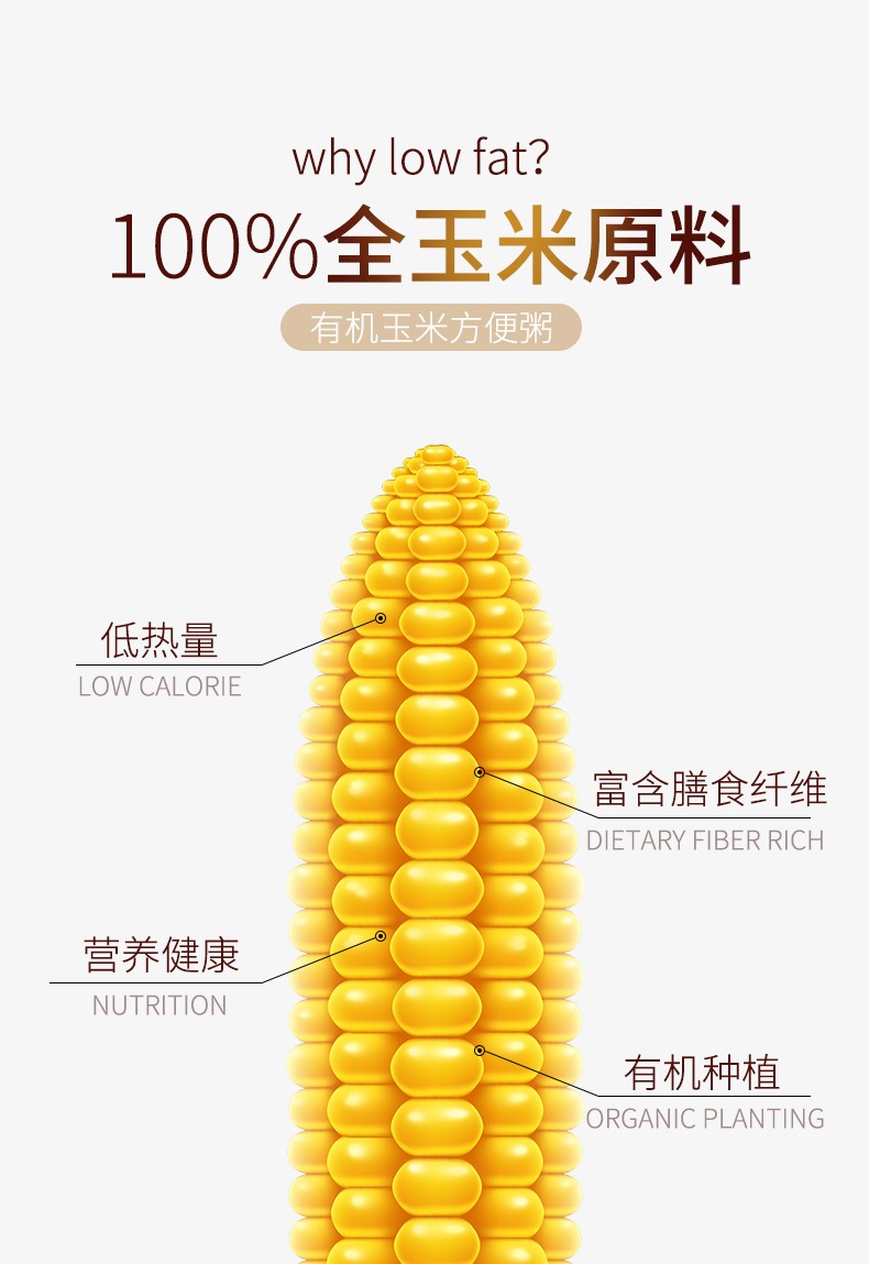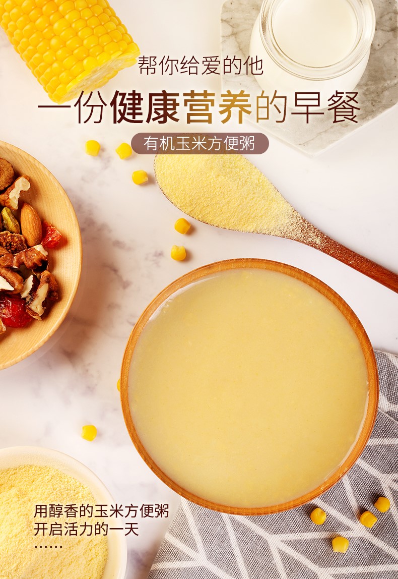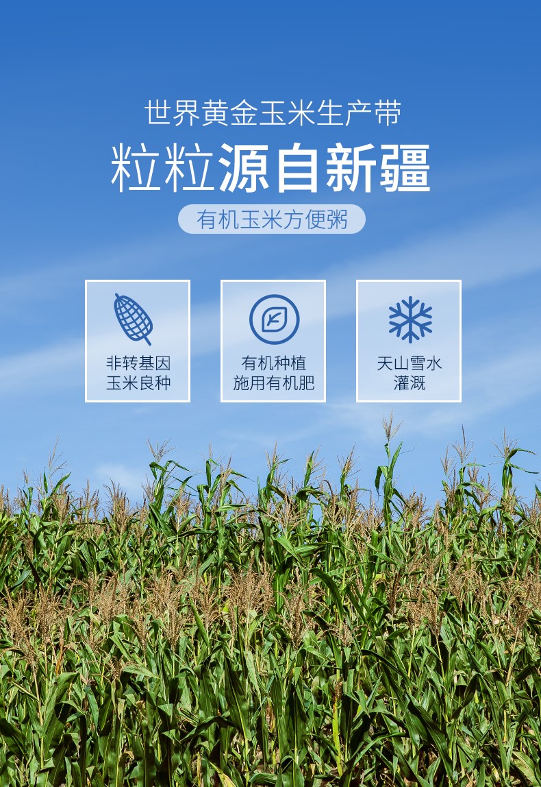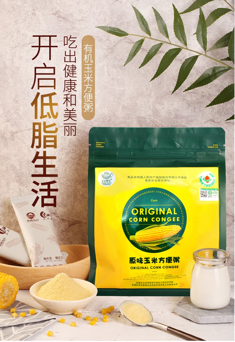 新疆充足的阳光、纯净的雪水、丰厚的土壤给予了有机玉米优秀的品质。玉米颗粒饱满,口感绵软,甜糯嫩香,且富含多种维生素、氨基酸等营养元素及膳食纤维。儿童辅食,上班族黄金早餐代餐粥。