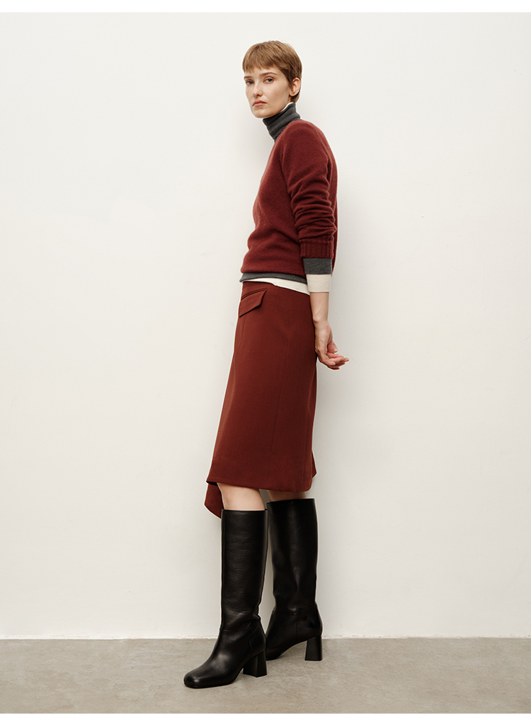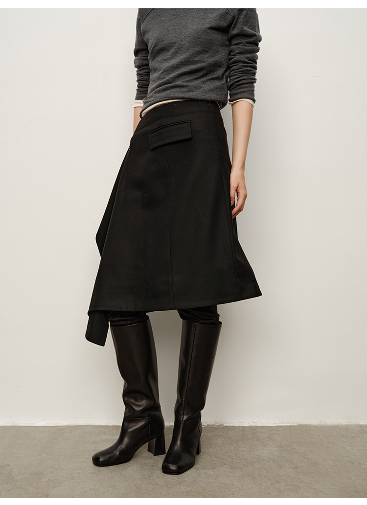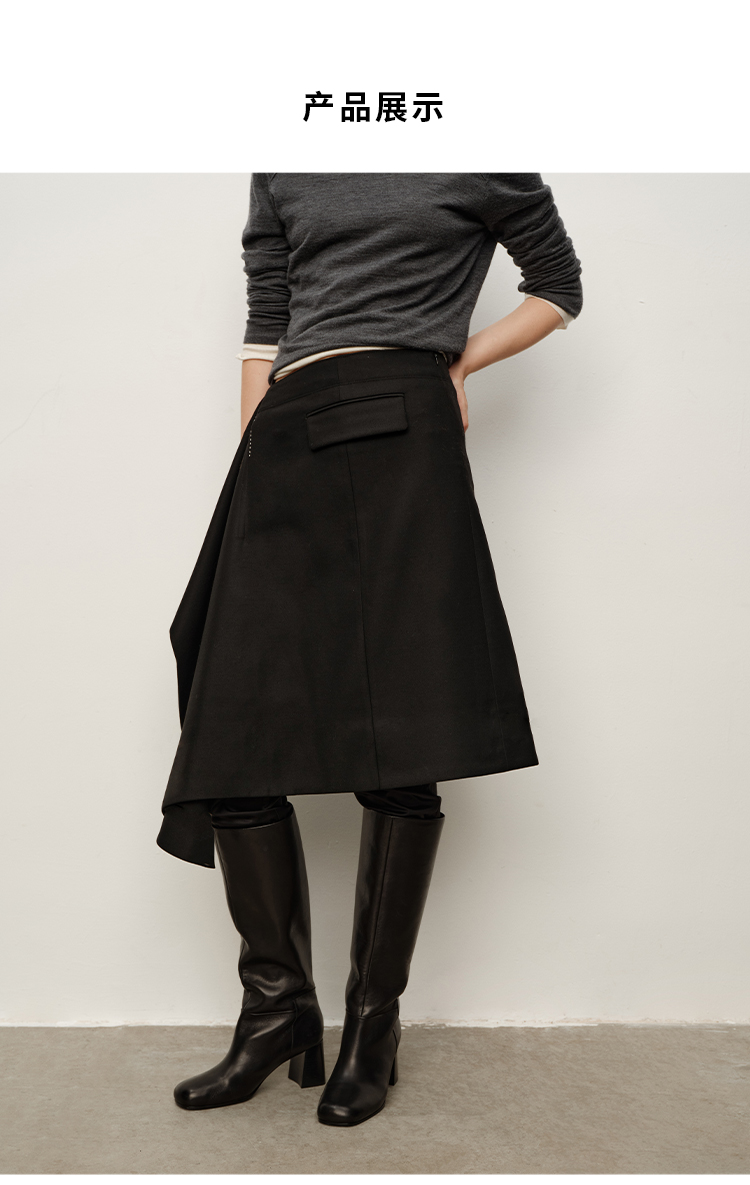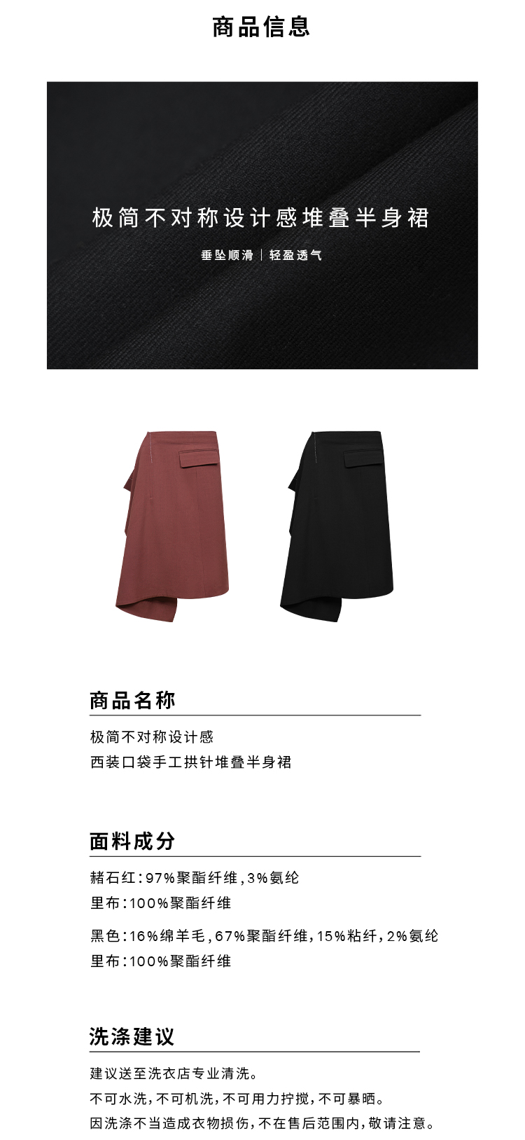 HIDEMI 极简不对称设计感西装口袋手工拱针堆叠半身裙