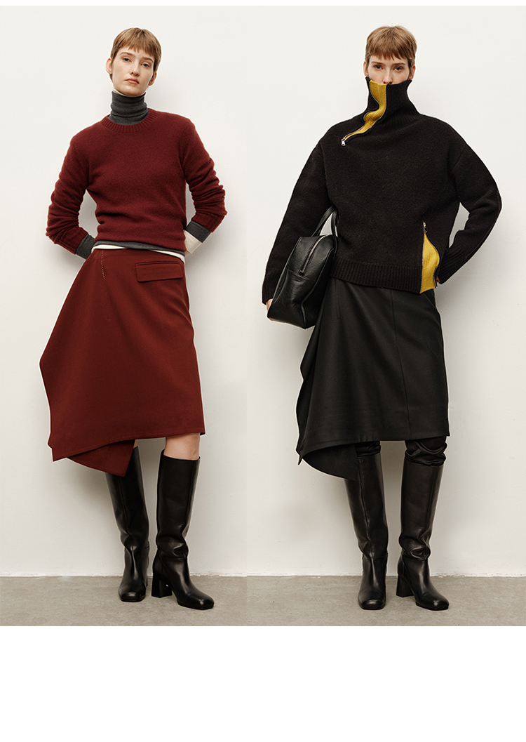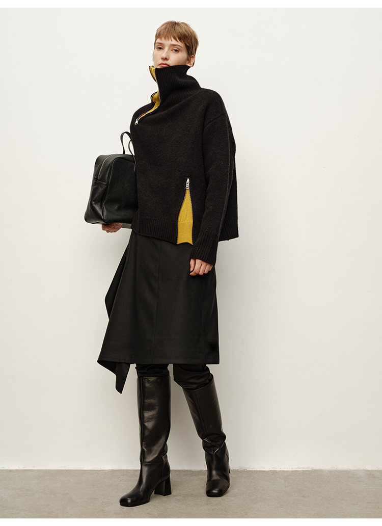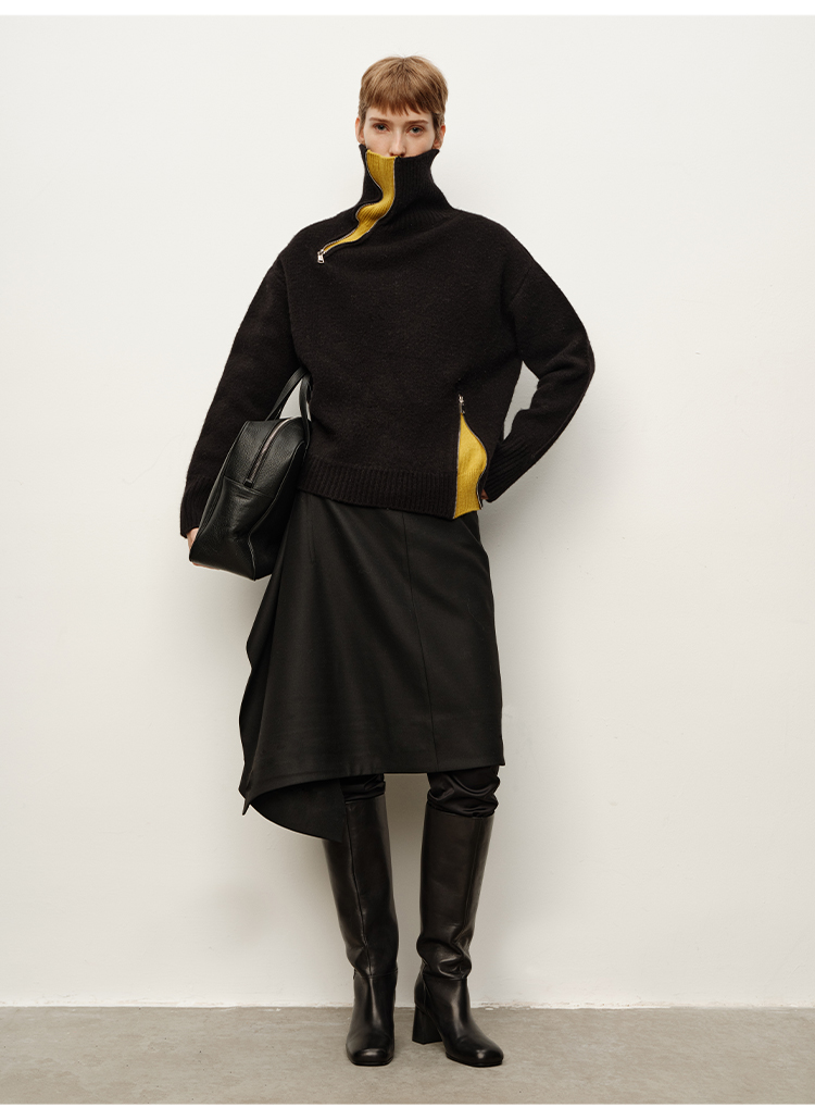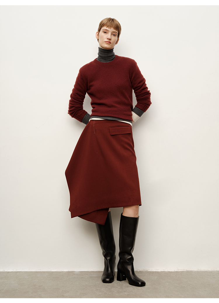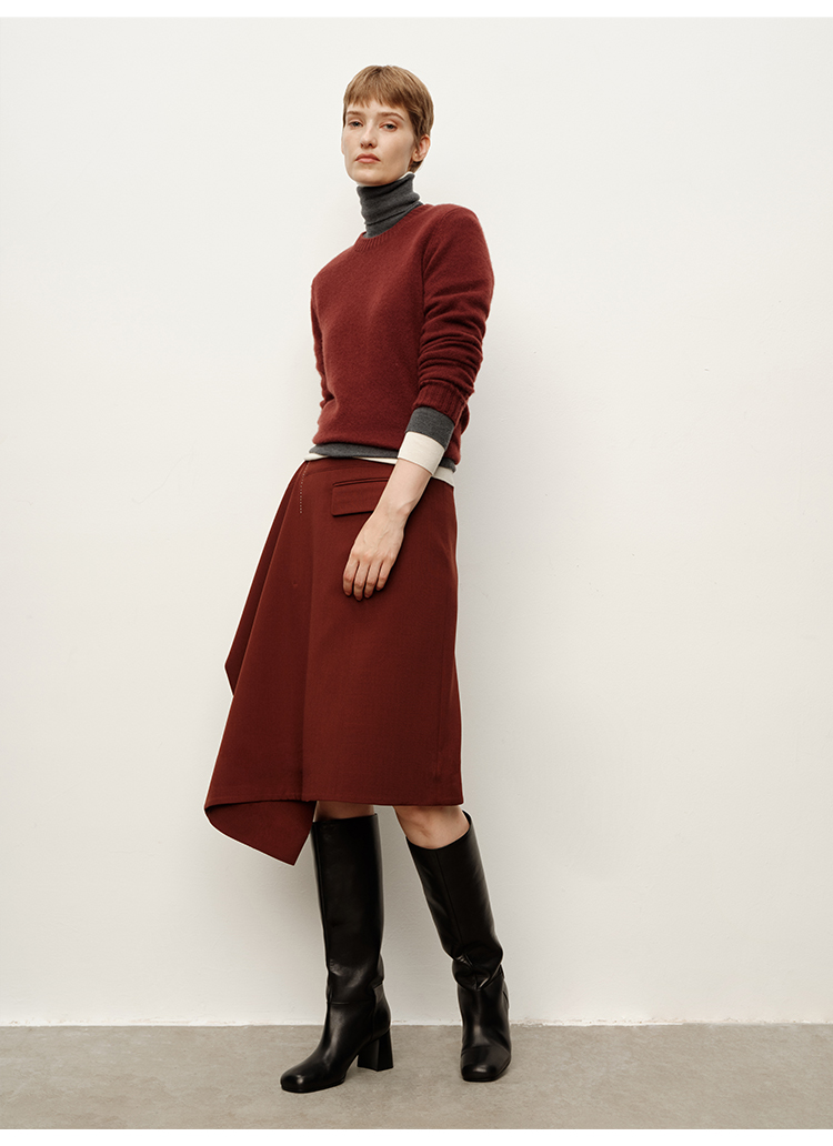 HIDEMI 极简不对称设计感西装口袋手工拱针堆叠半身裙