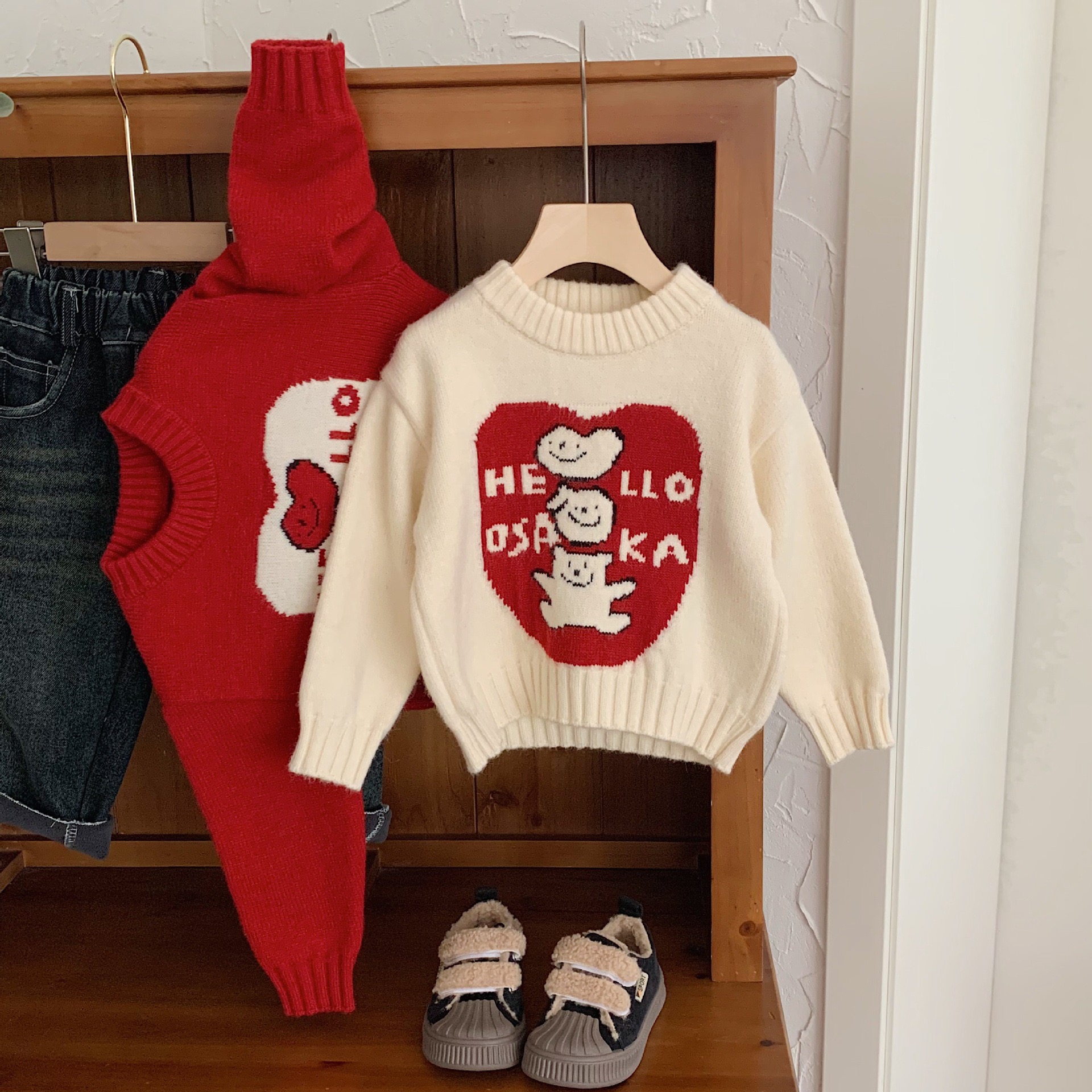 【YW】无忧购男女童可爱卡通针织衫毛衣加厚圆领新年服F0613(截单后7天发货)25年清仓捡漏