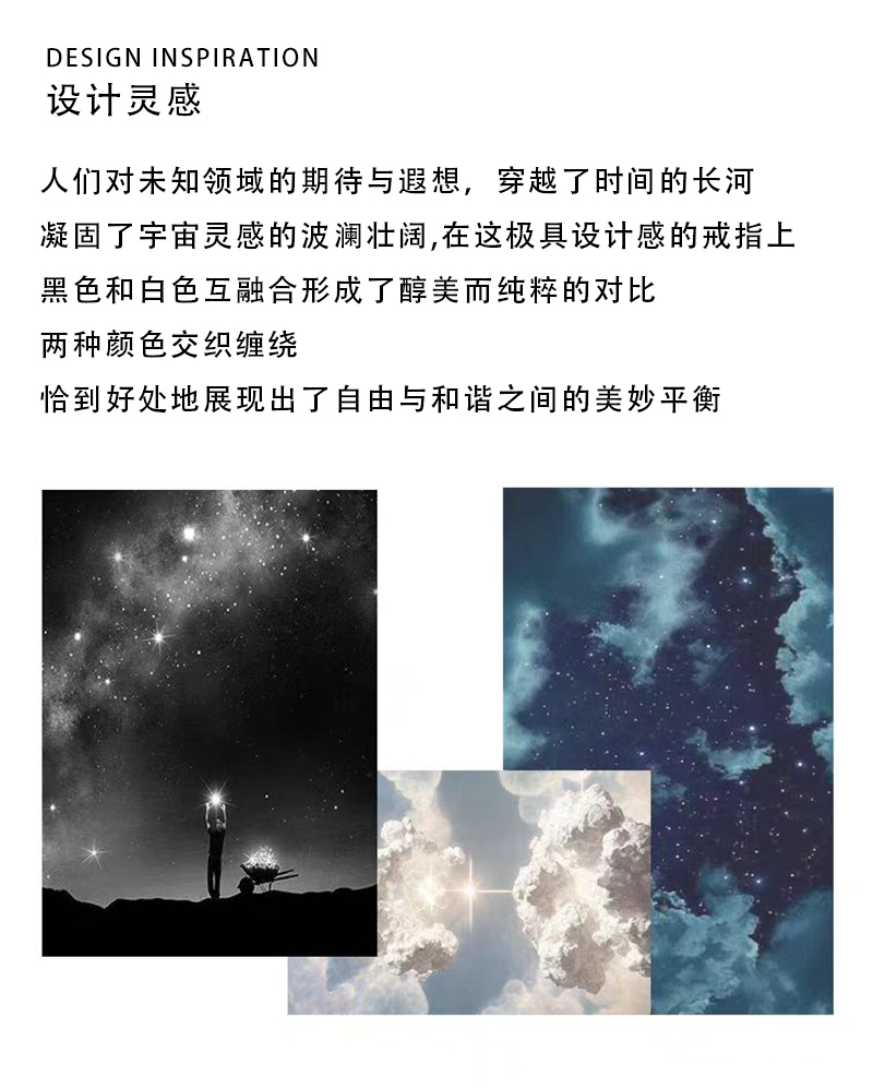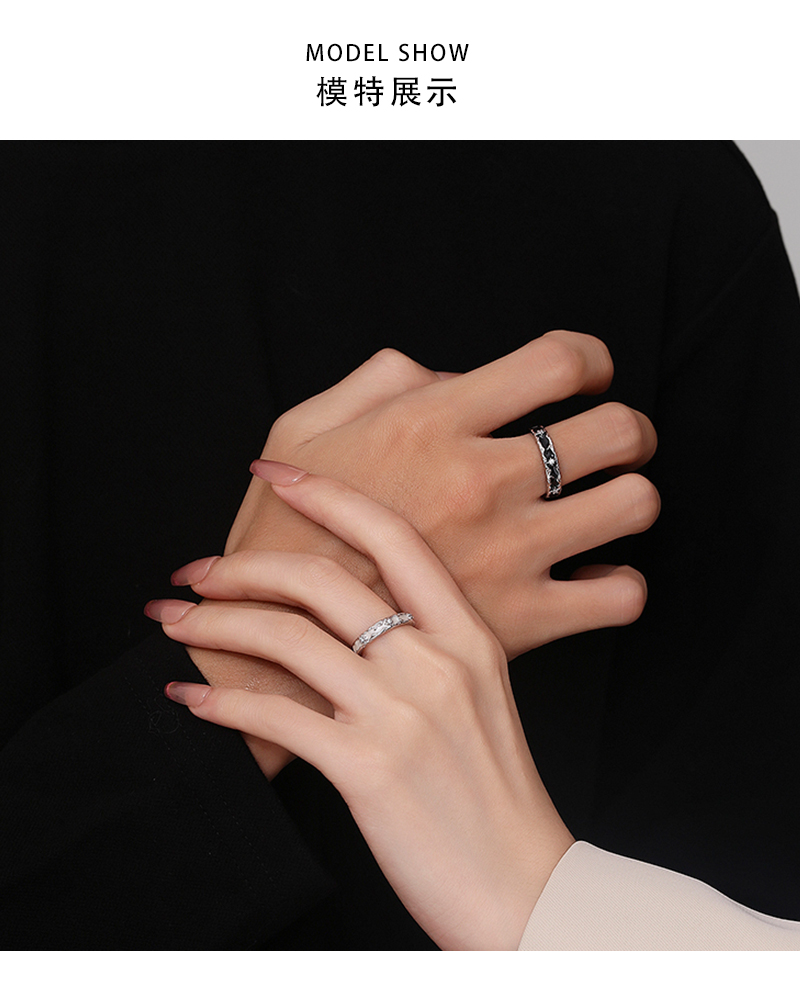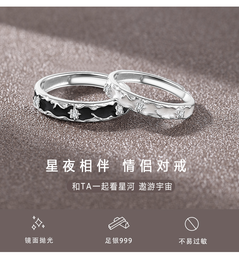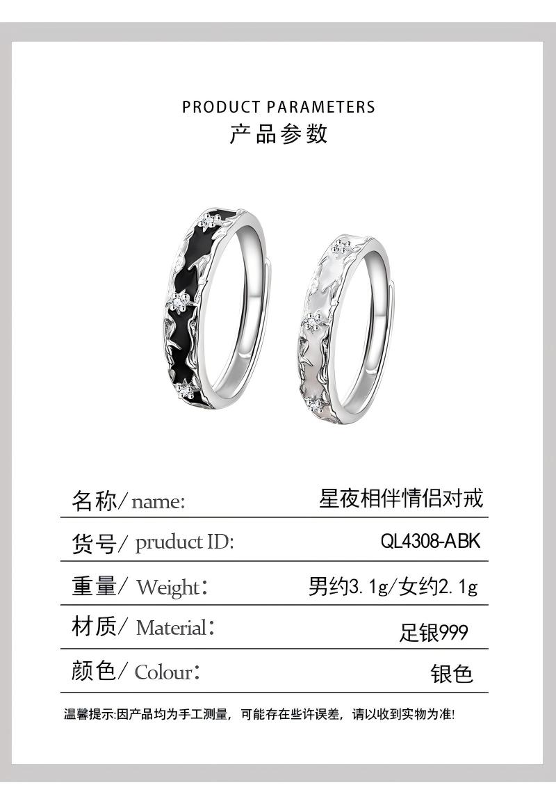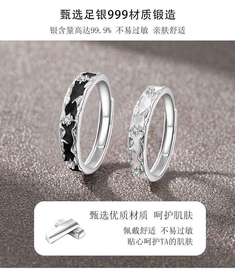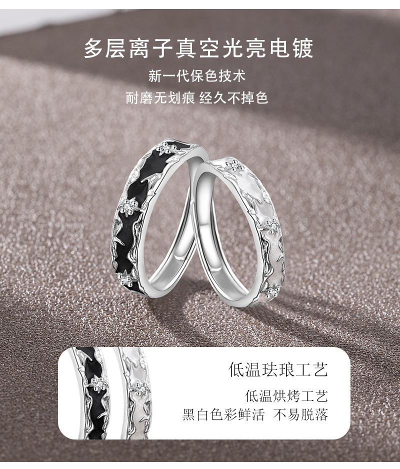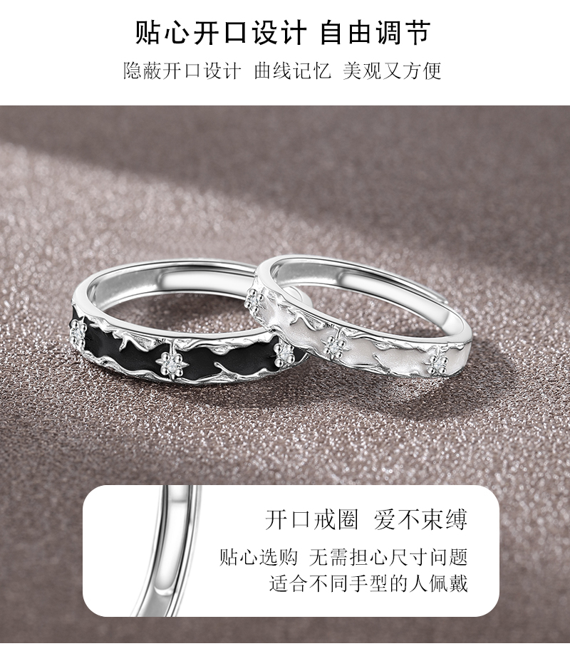 【999足银】KADER卡蒂罗 星月相伴情侣对戒 经典百搭简约风相伴一生男女友开口可调节素圈一对 梦幻灵动不规则纹理感设计