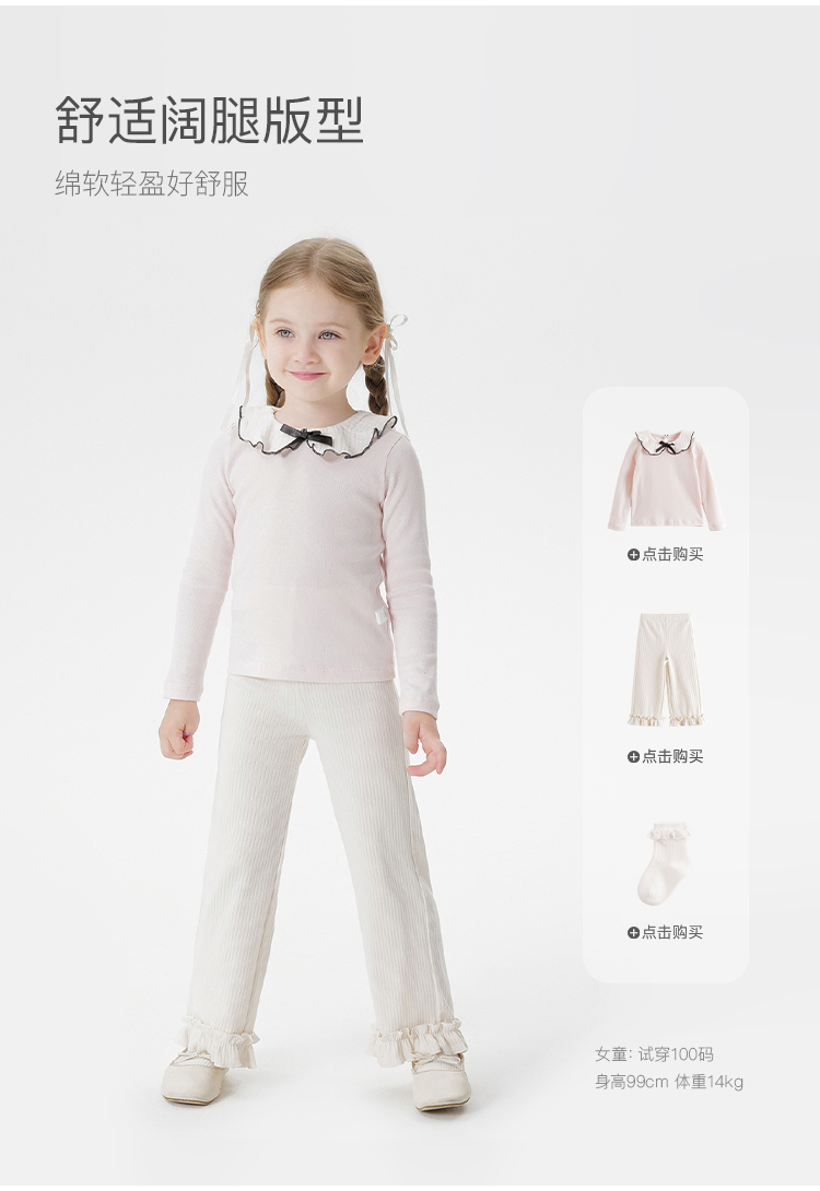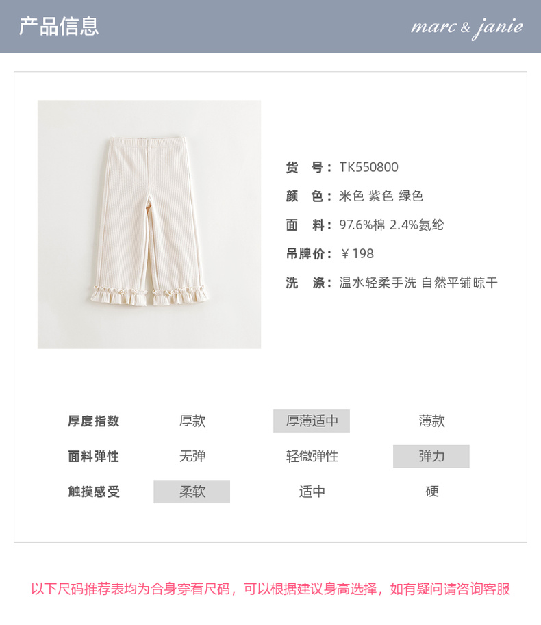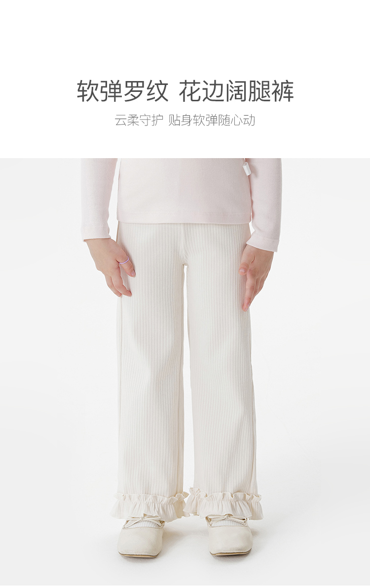 马克珍妮女童软弹罗纹花边阔腿裤 宝宝裤子2025年春装新款550800