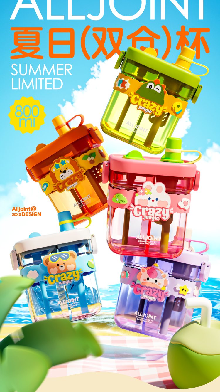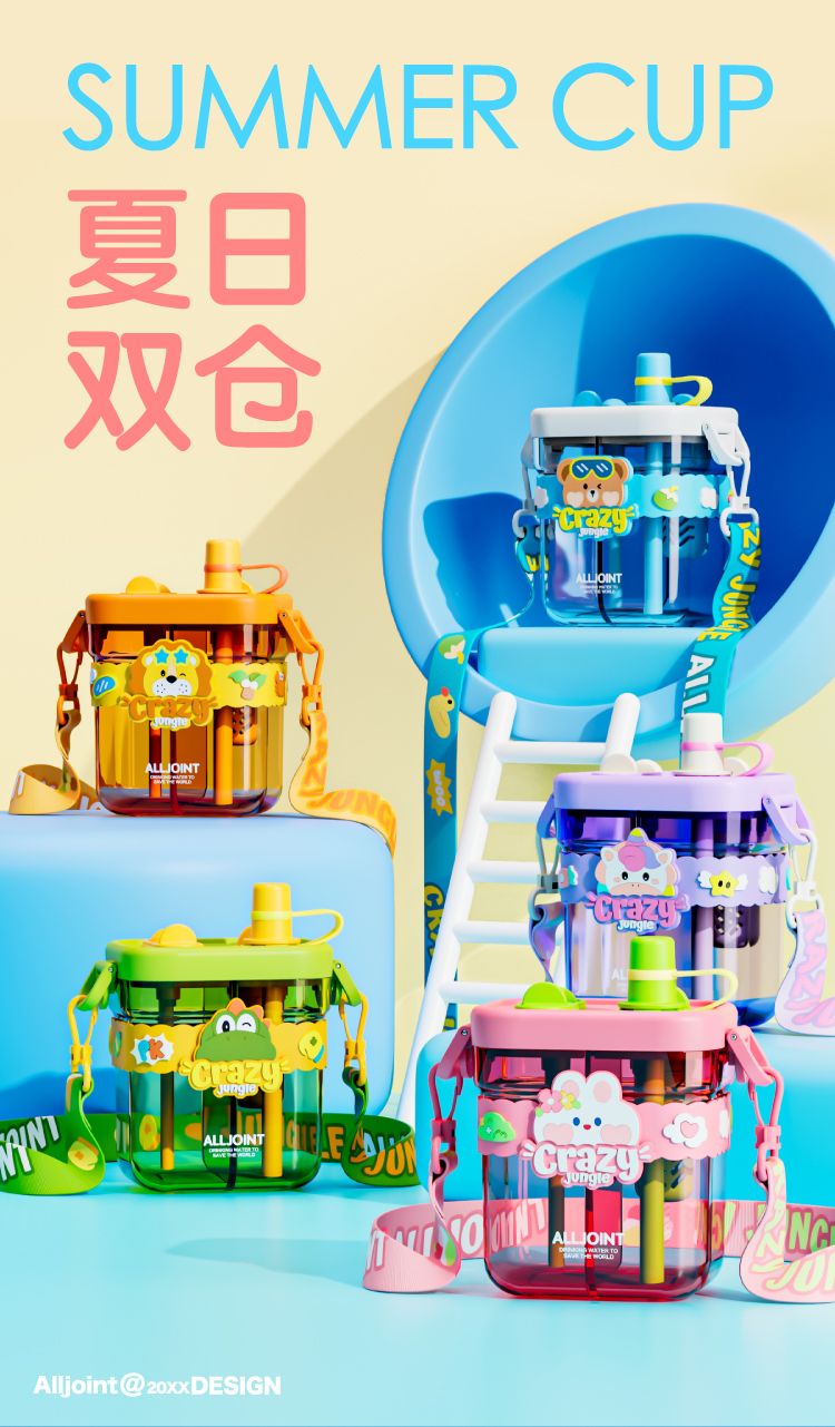 【632优选】优仅 ALL-JOINT BB40-C5 疯狂丛林双仓杯—小熊(蓝白)-SH1156