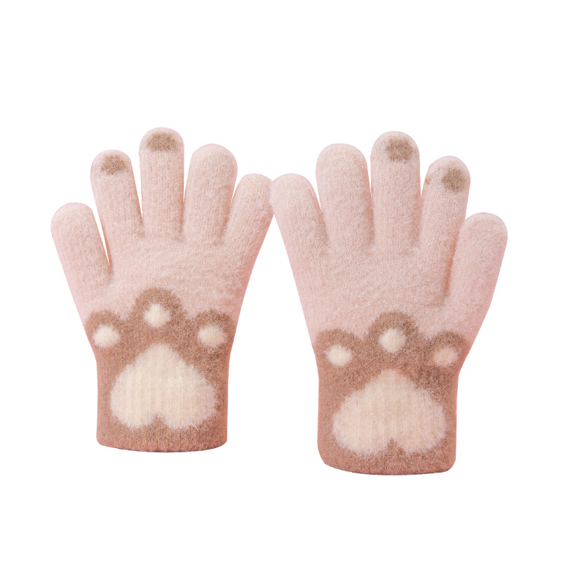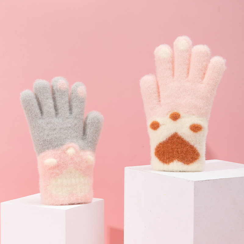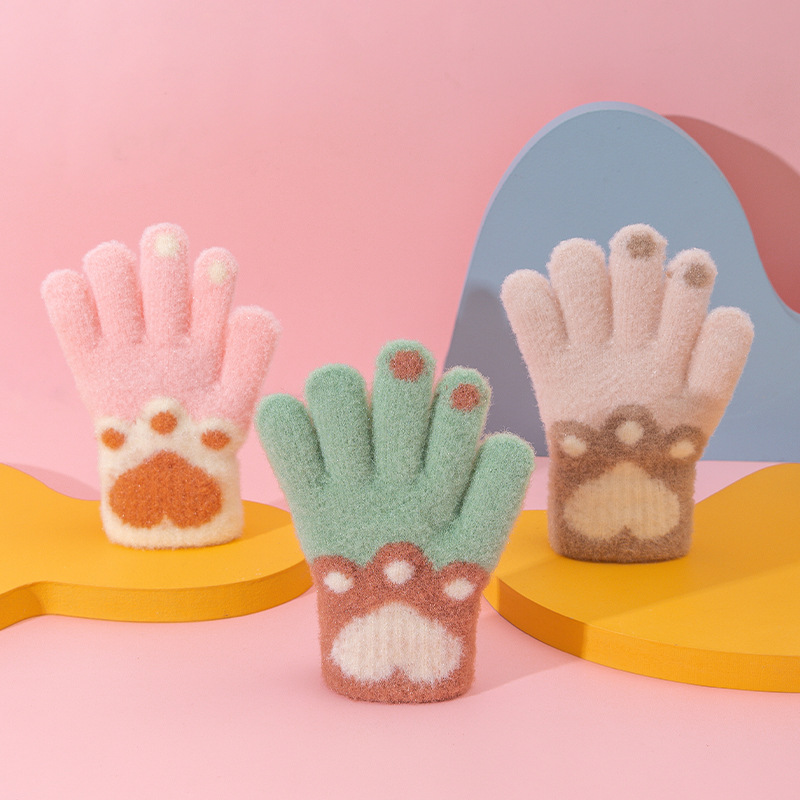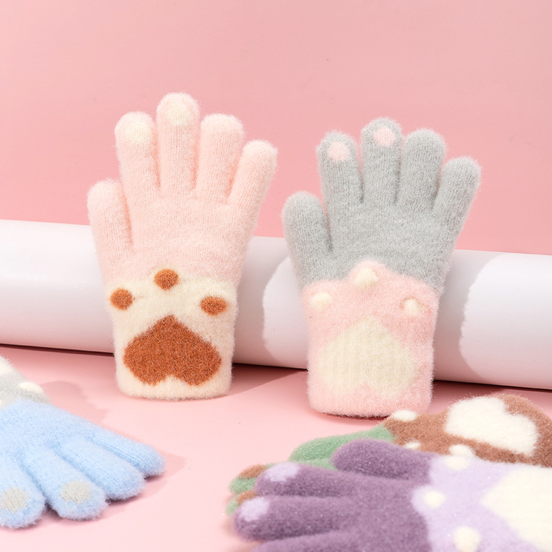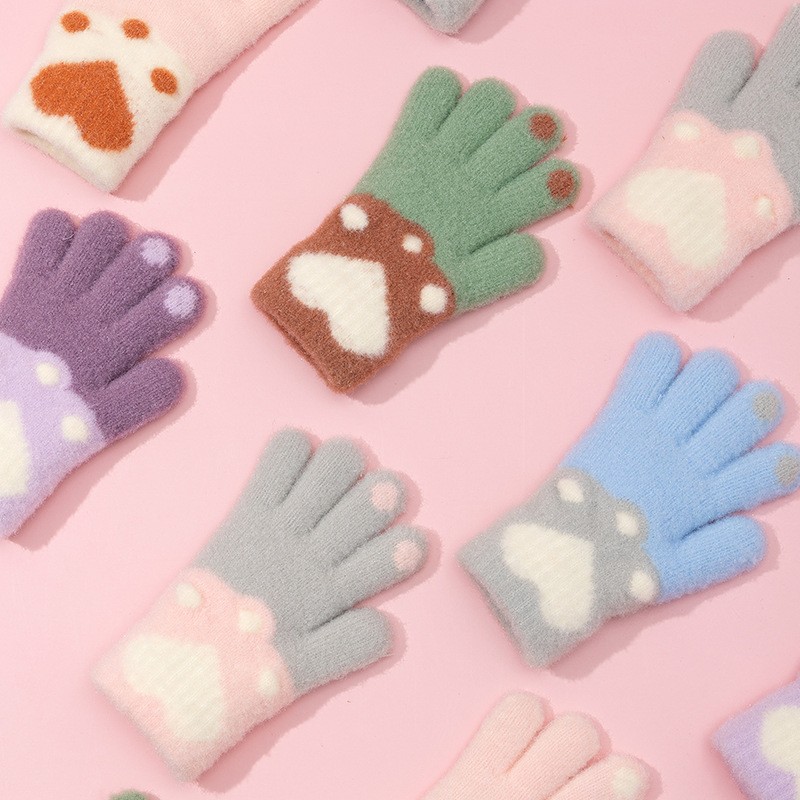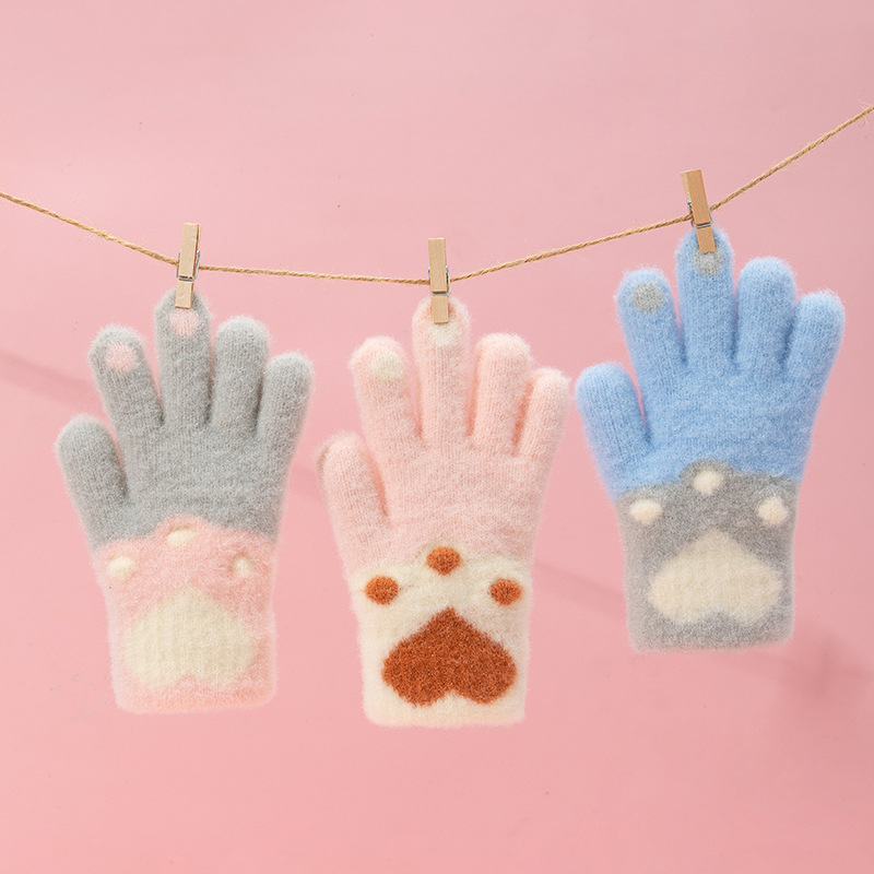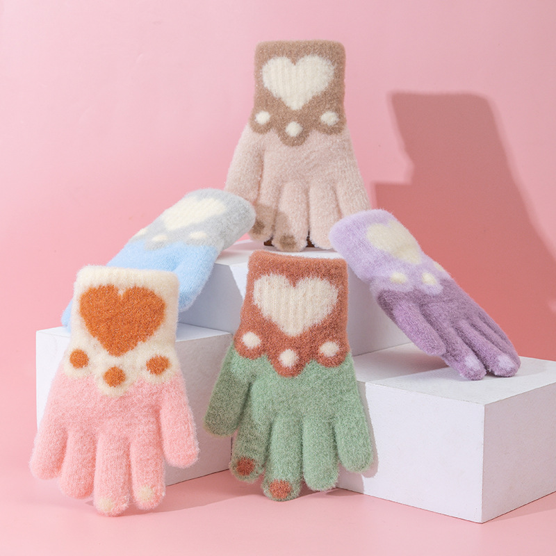 【新款儿童手套,可爱保暖,户外必备~】5-10岁儿童手套冬季 可爱中童女童五指手台 户外宝宝毛线保暖加厚学生手套-QQ