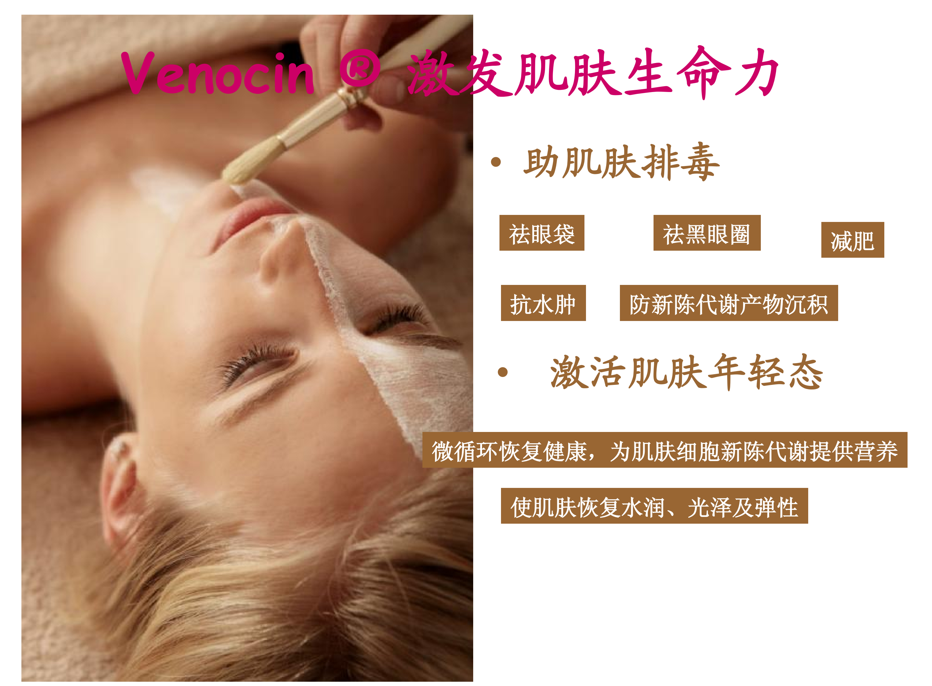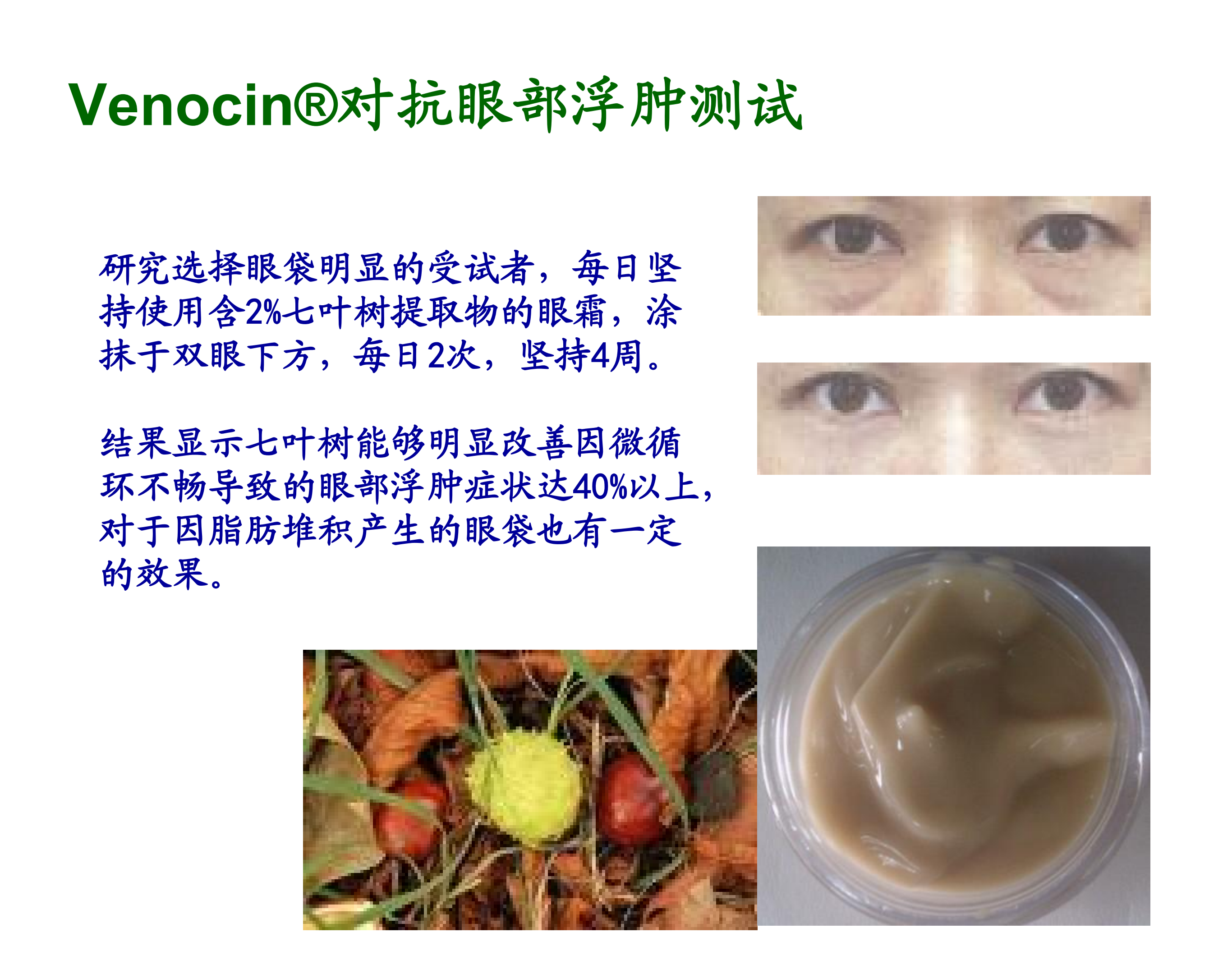 功效应用:去黑眼圈眼袋、抗衰老、抗浮肿等