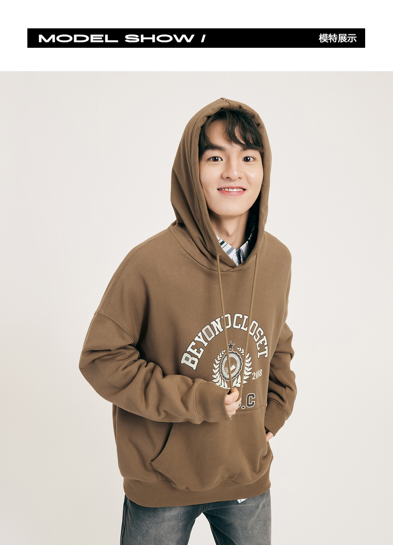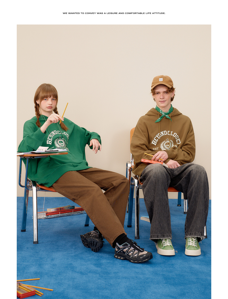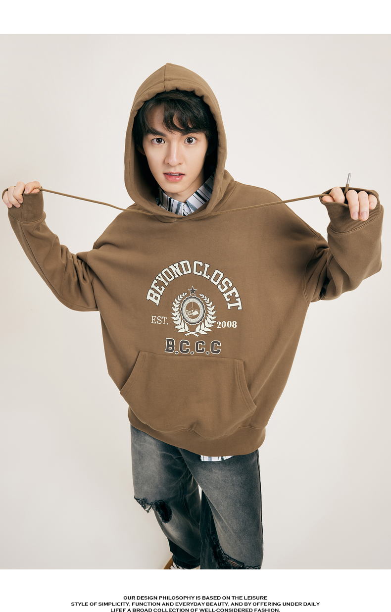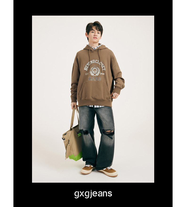 gxgjeans男装春学院风时尚印花情侣连帽卫衣潮