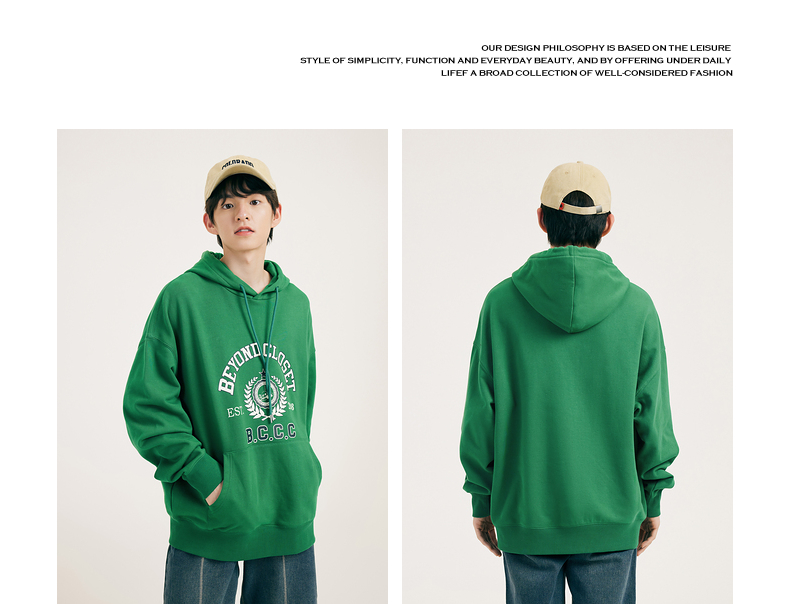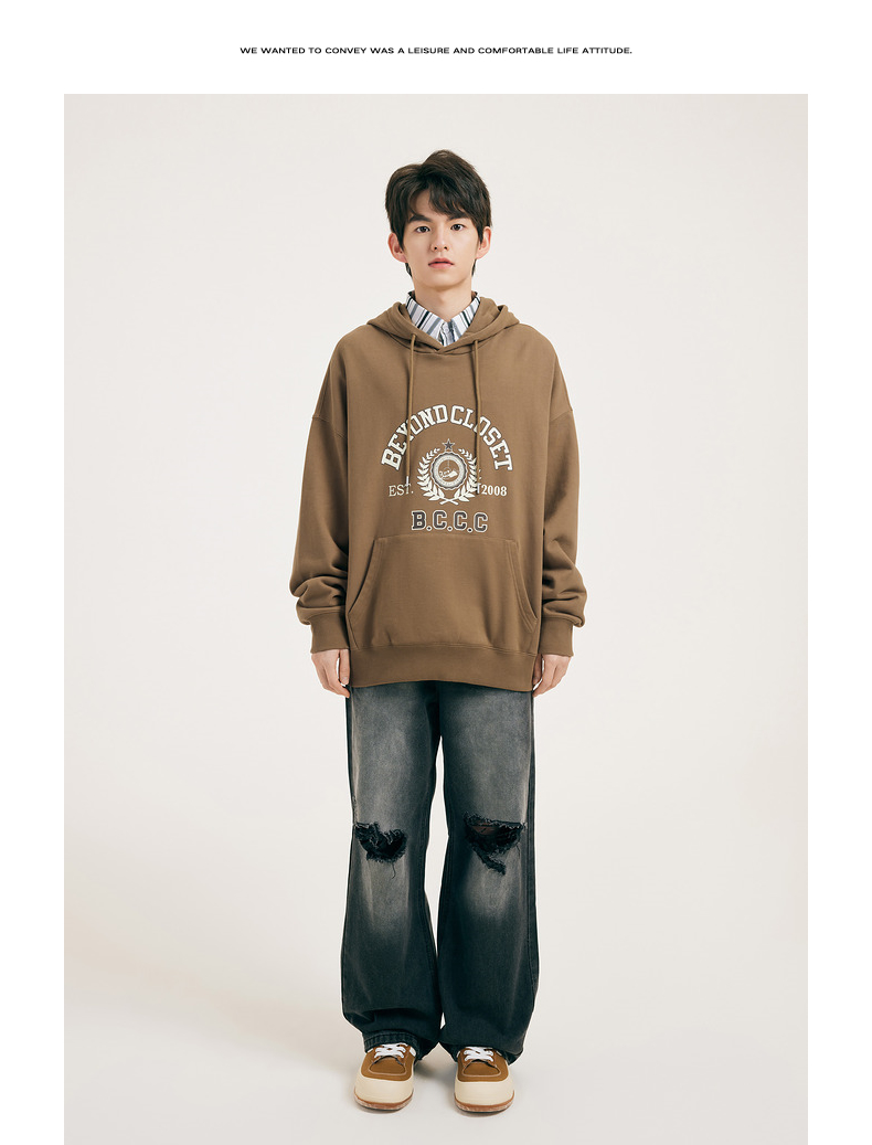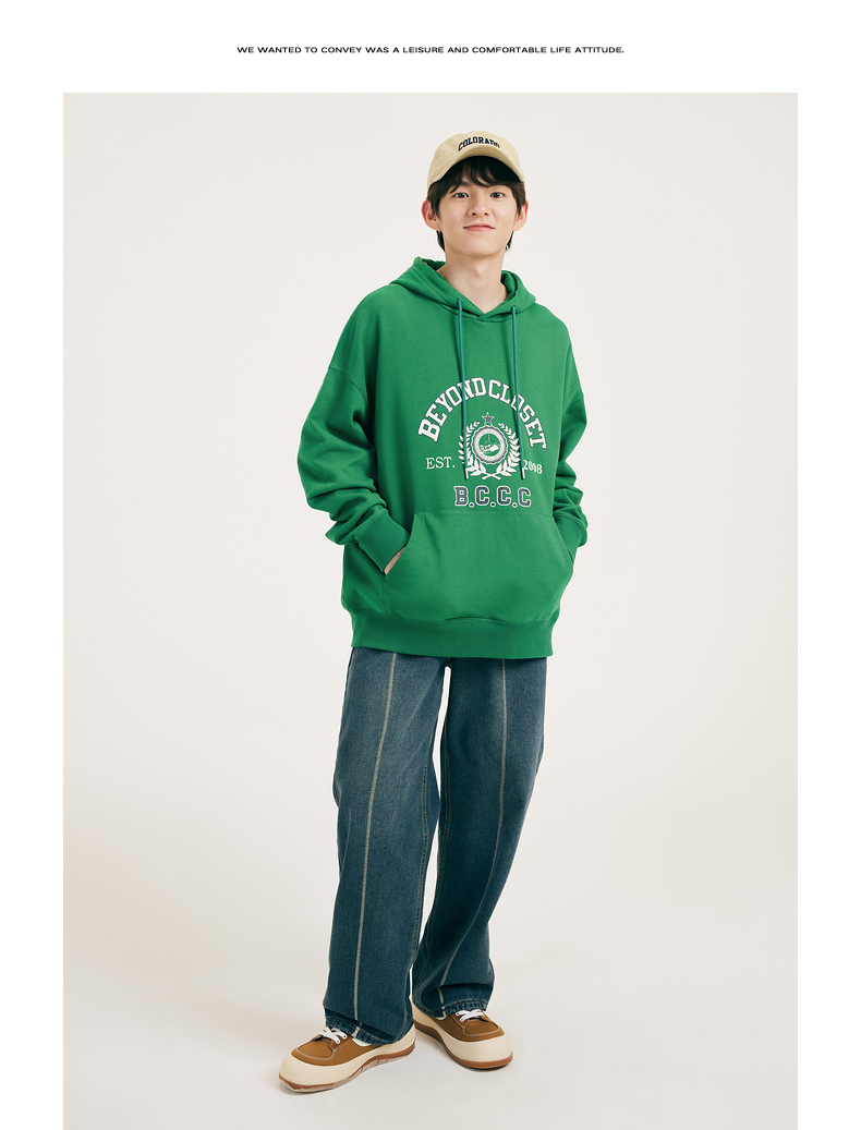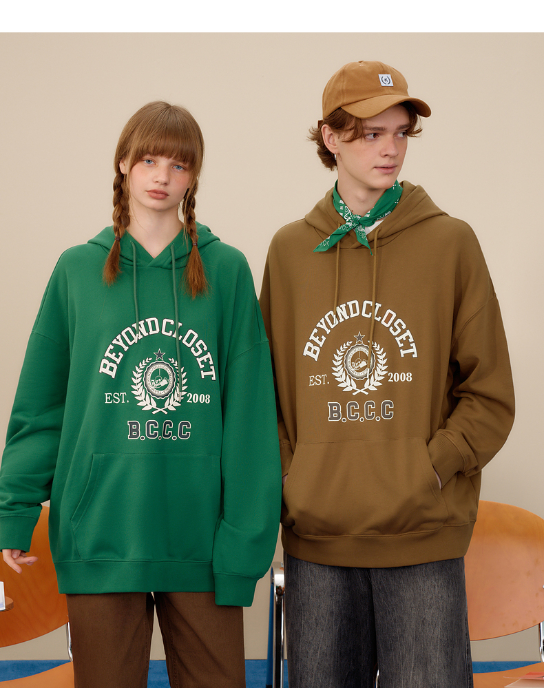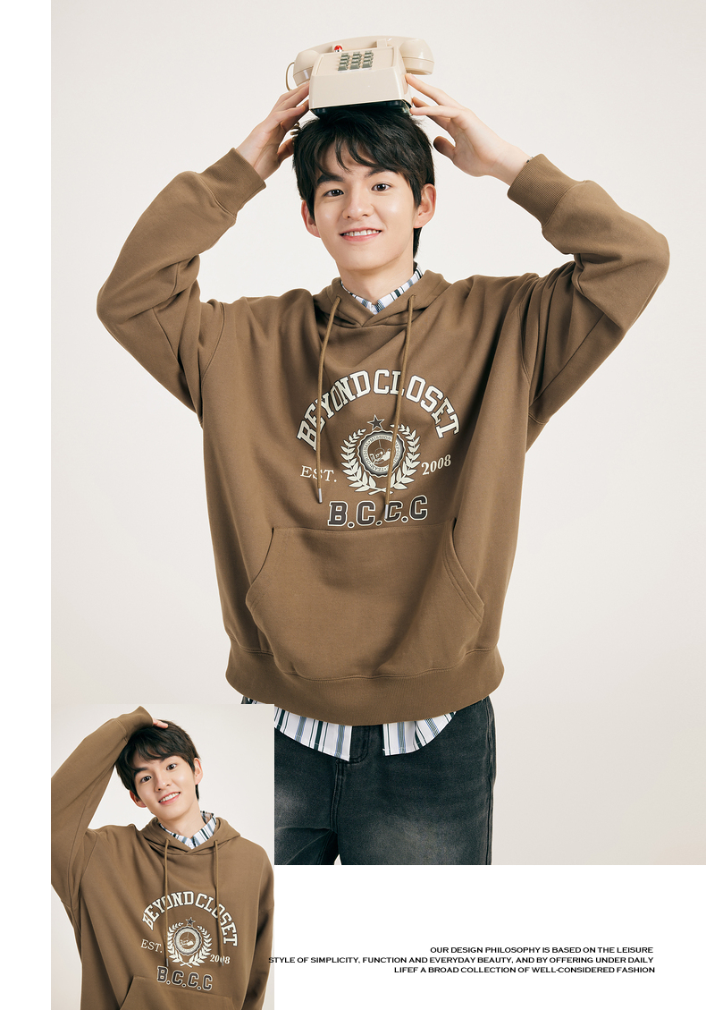 gxgjeans男装春学院风时尚印花情侣连帽卫衣潮