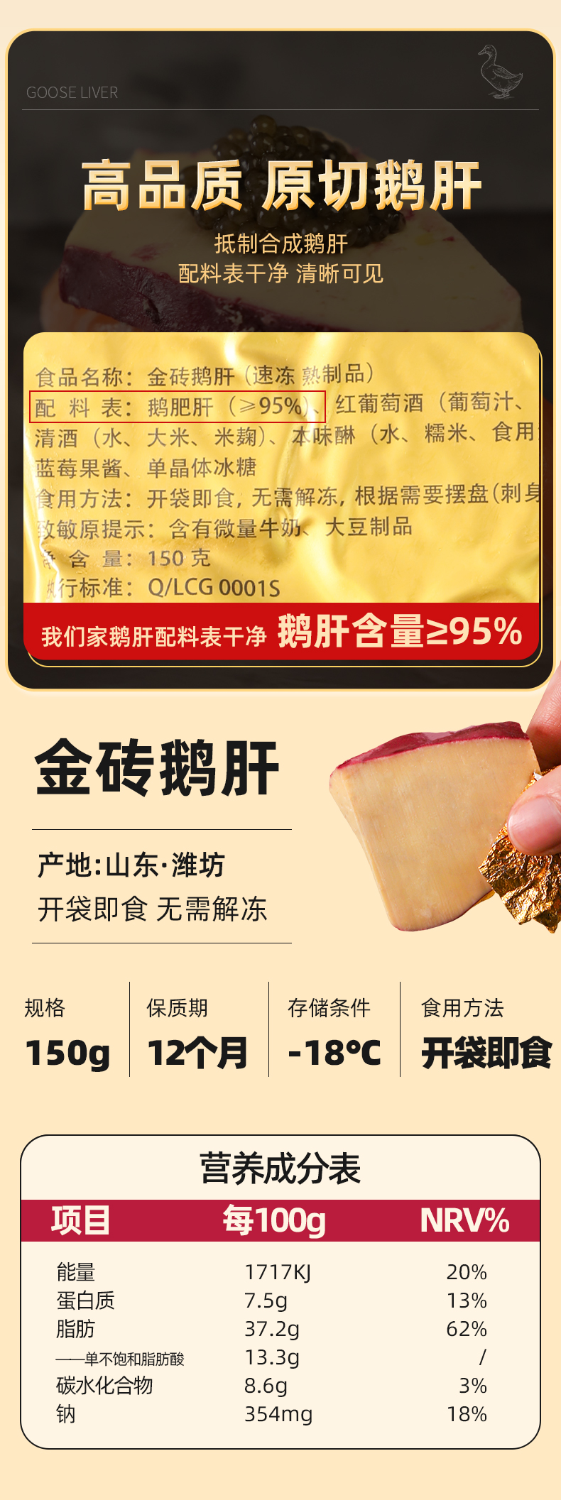 即食法式红酒鹅肝100g化冻即食!A级鹅肝 口感细腻 小小一块 众享丝滑