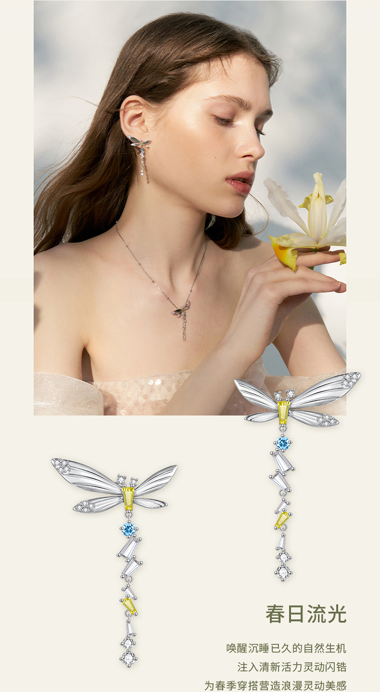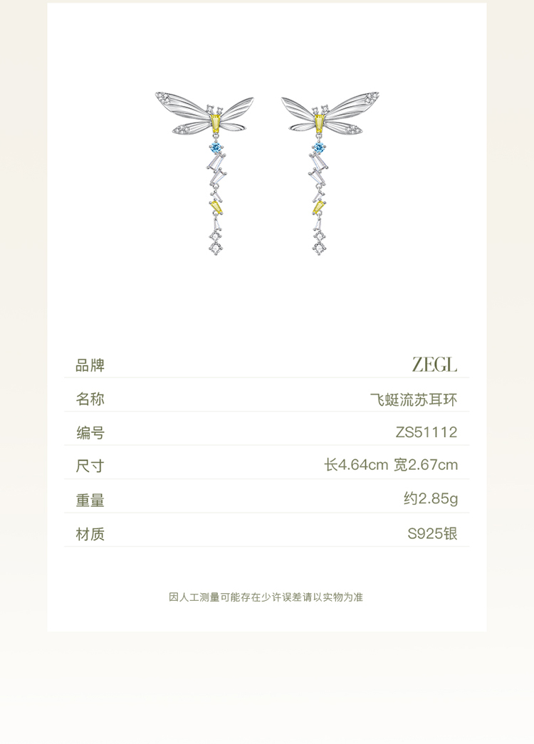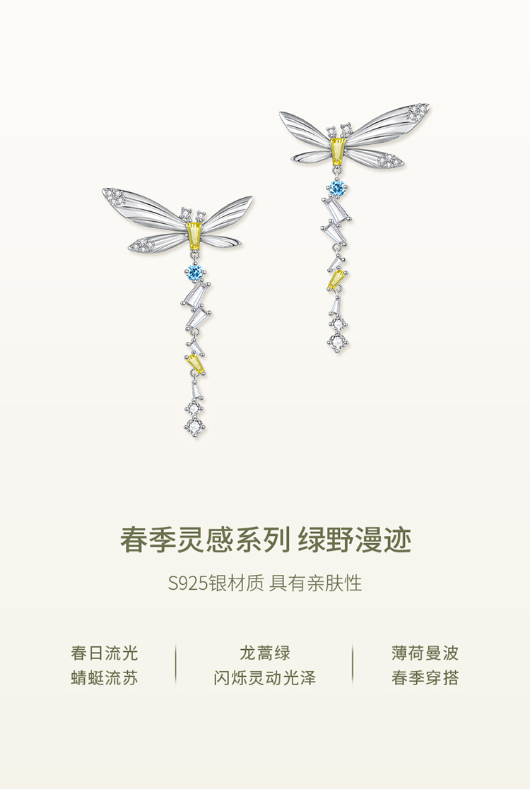 ZEGL设计师绿野漫迹系列925银流苏耳环2024新款耳钉春天蝴蝶耳饰