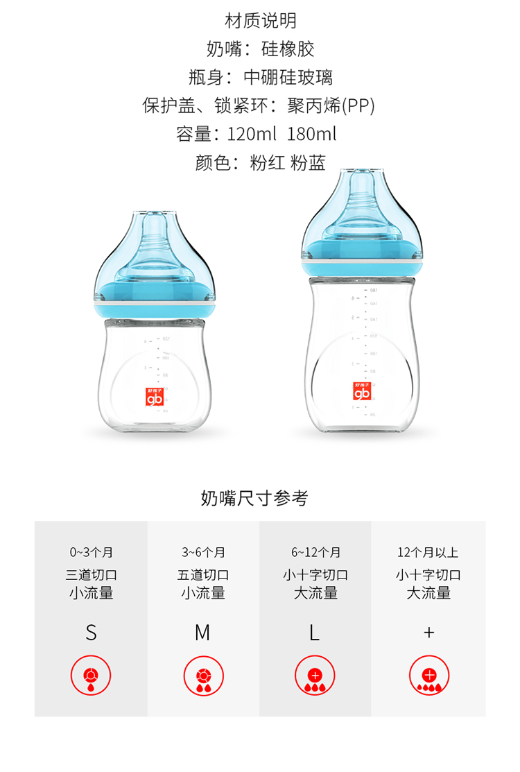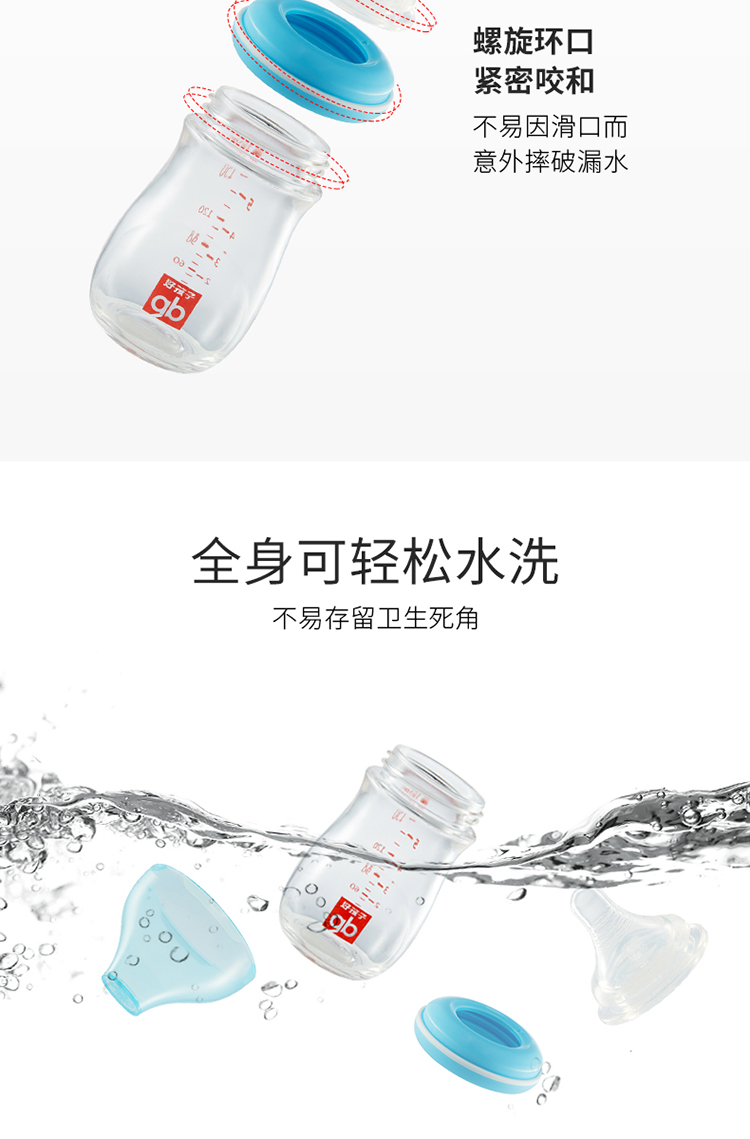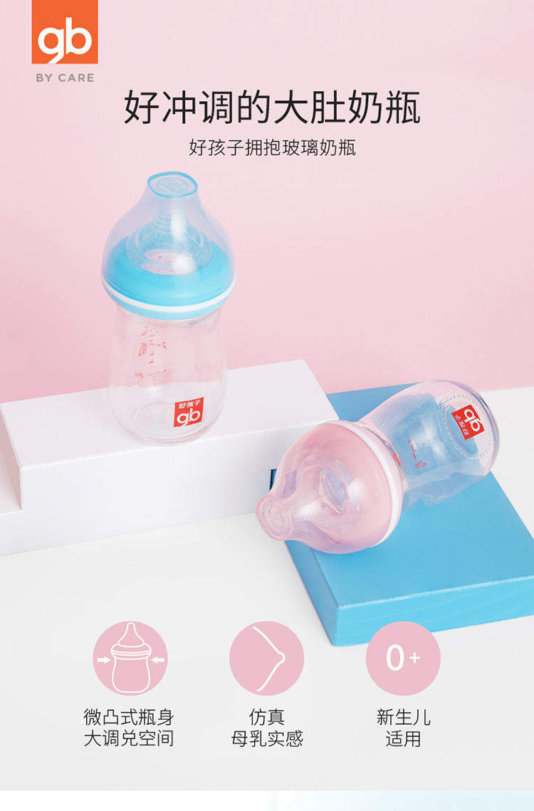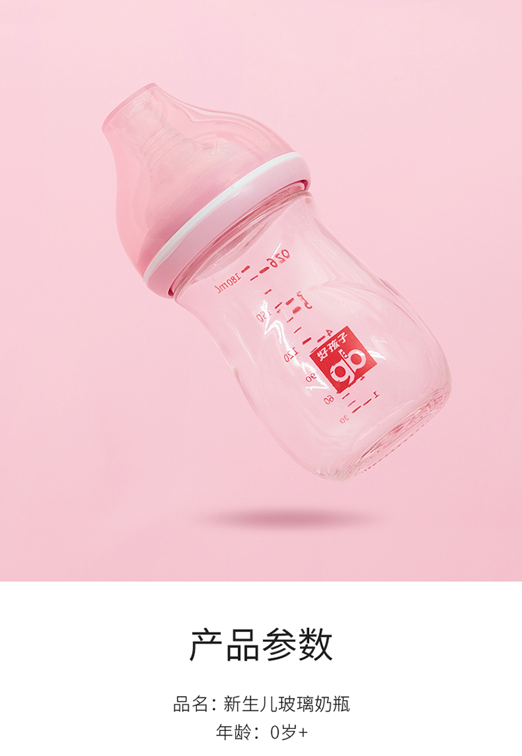 好孩子拥抱系列宽口径新生儿玻璃奶瓶120ML(粉红)B80392两件JPY带授权招加盟代理