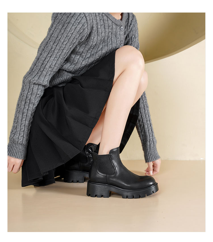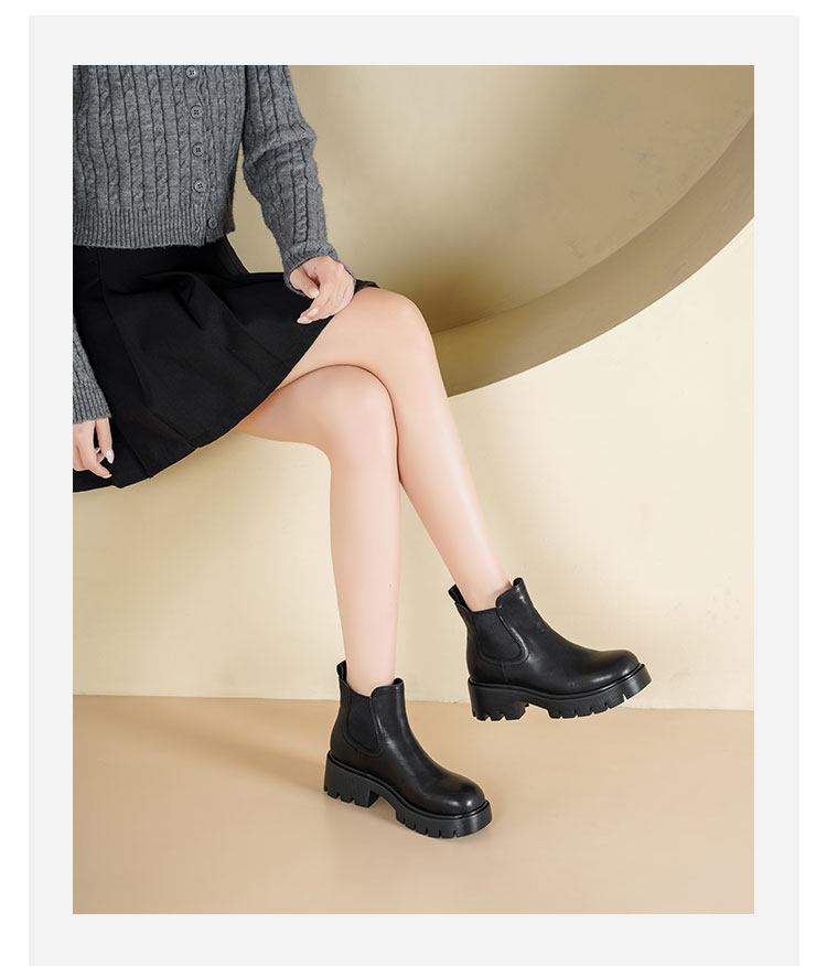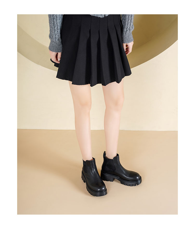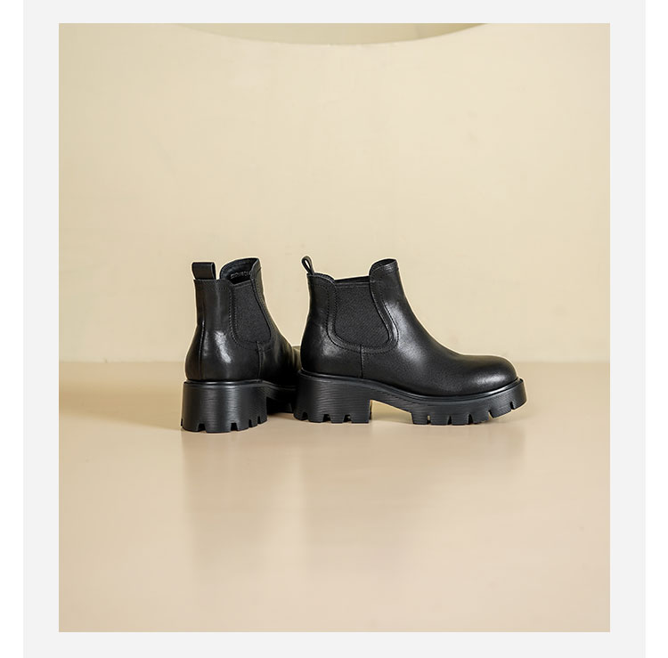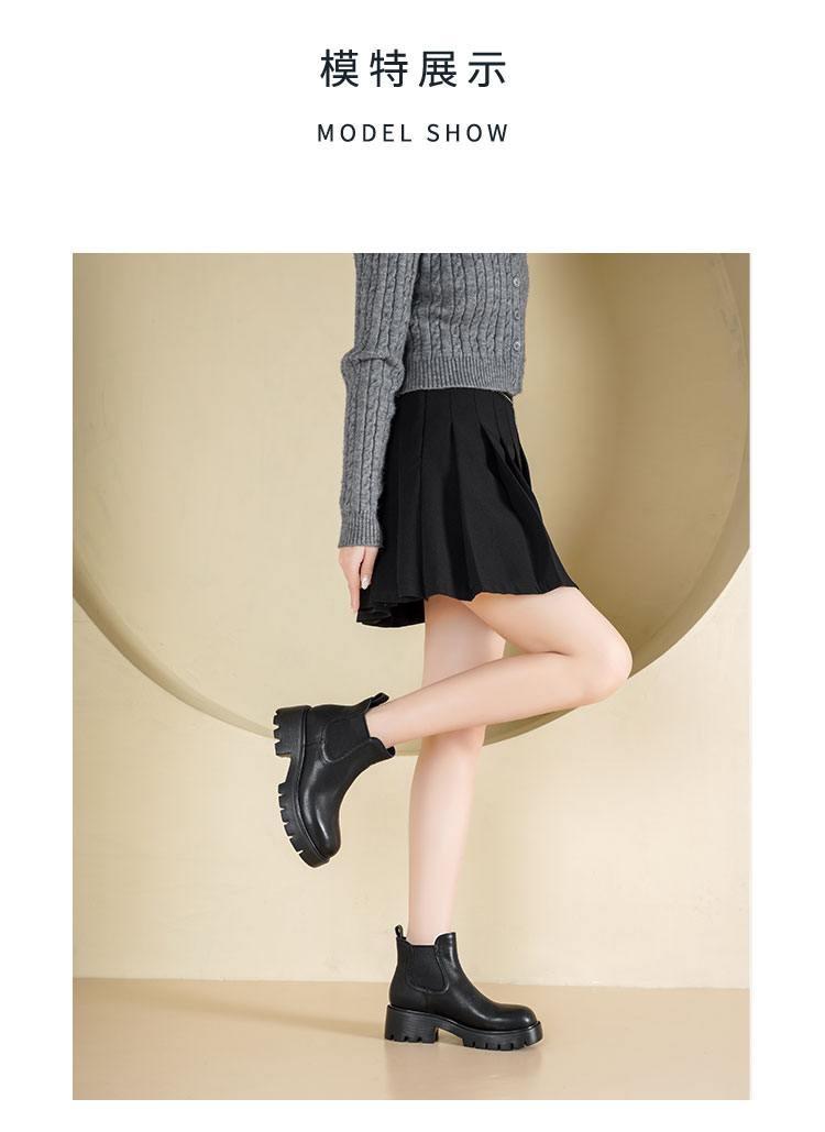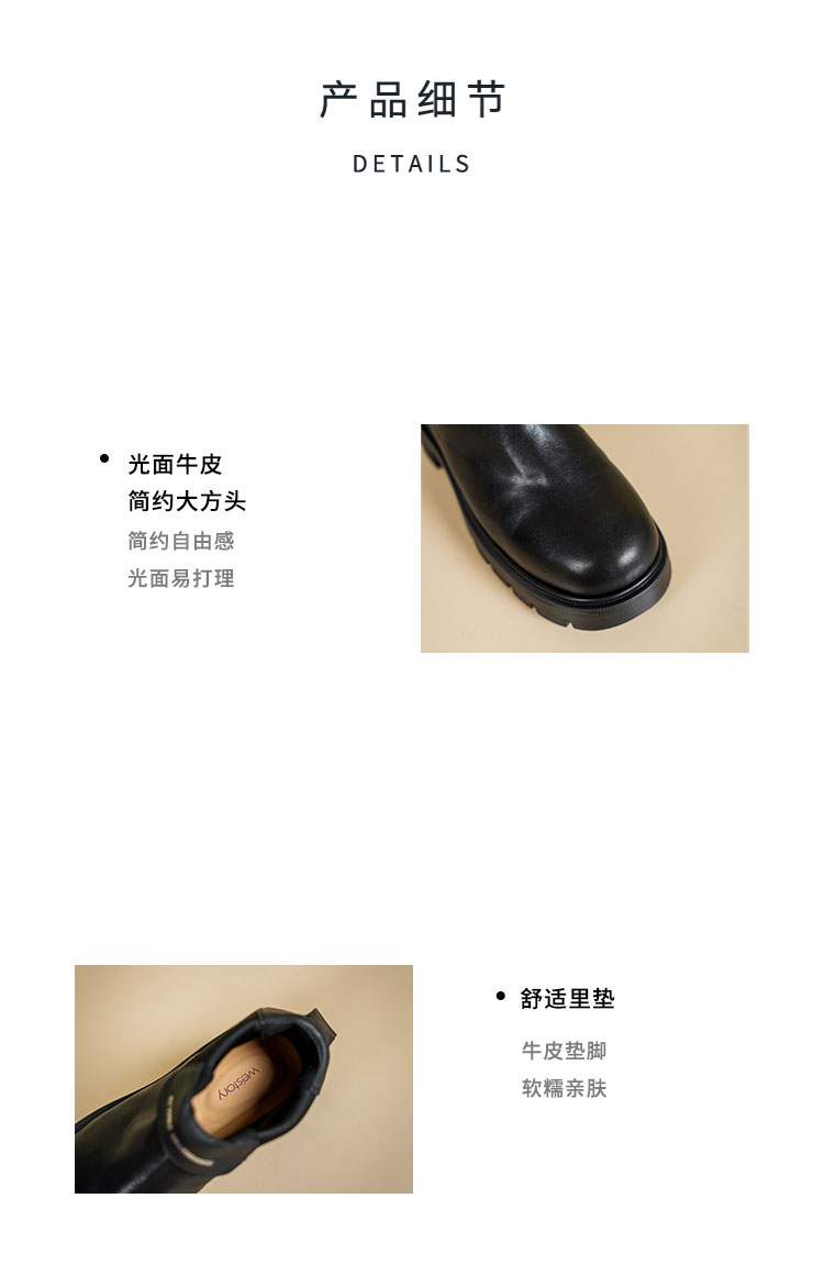 Westory2025年冬季简约方头厚底牛皮休闲马丁靴百搭酷帅短靴S25DS86211