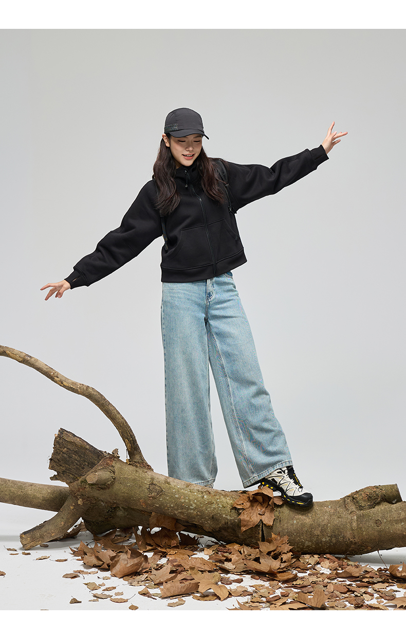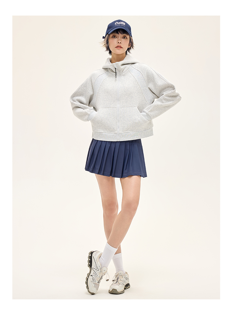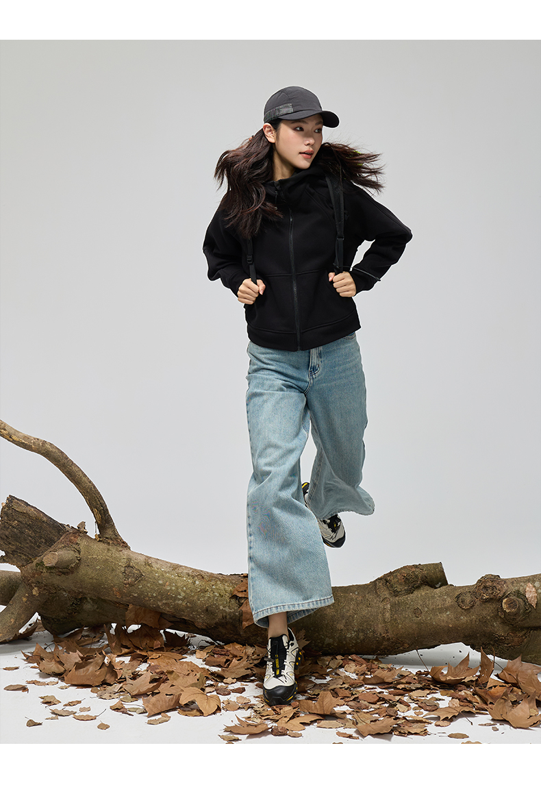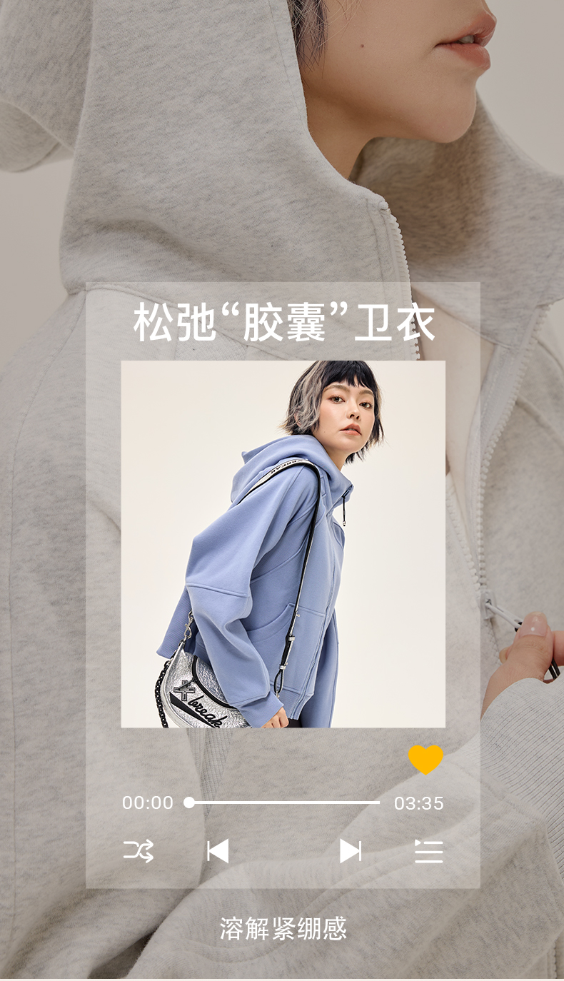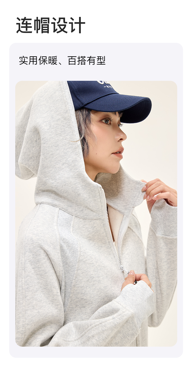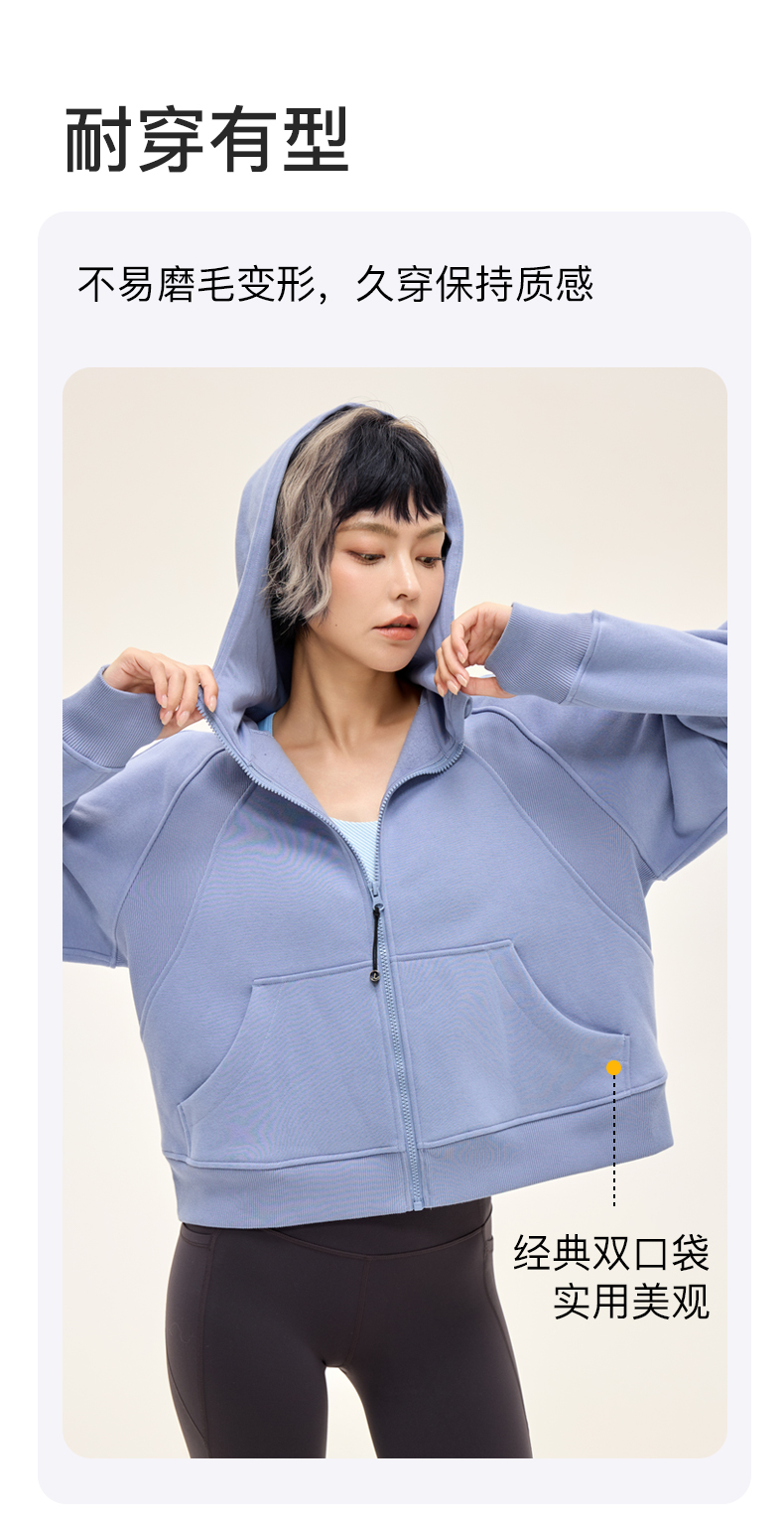 Leorrey乐拉运动休闲户外弹性宽松百搭亲肤夹克连帽卫衣外套长款外套WT0386