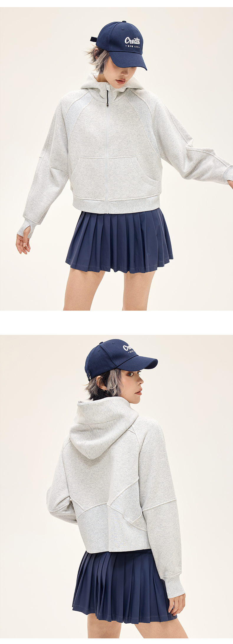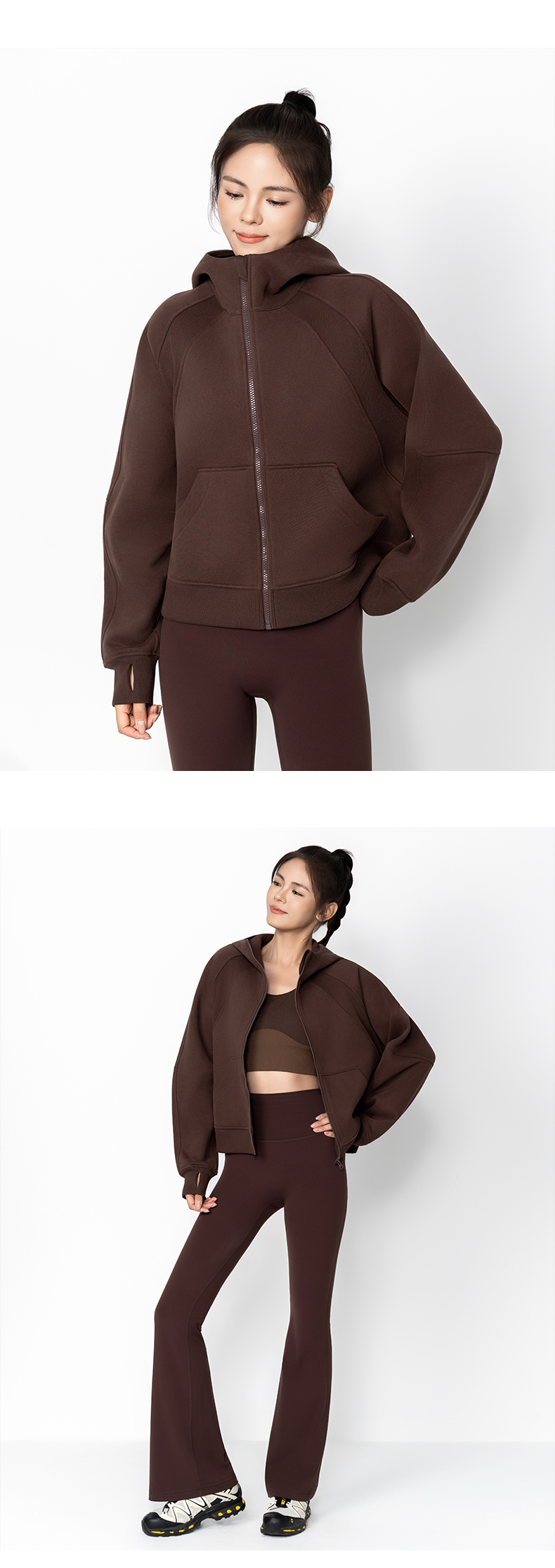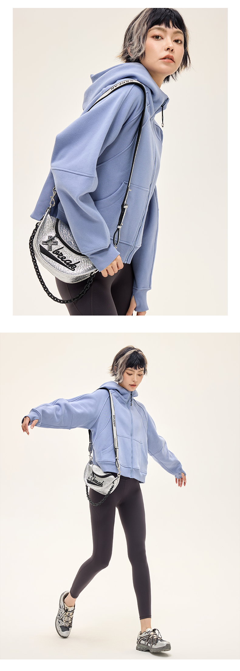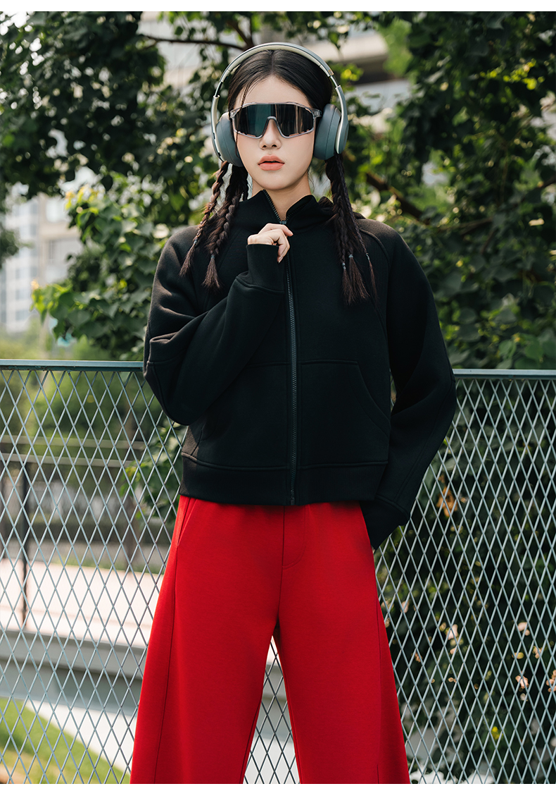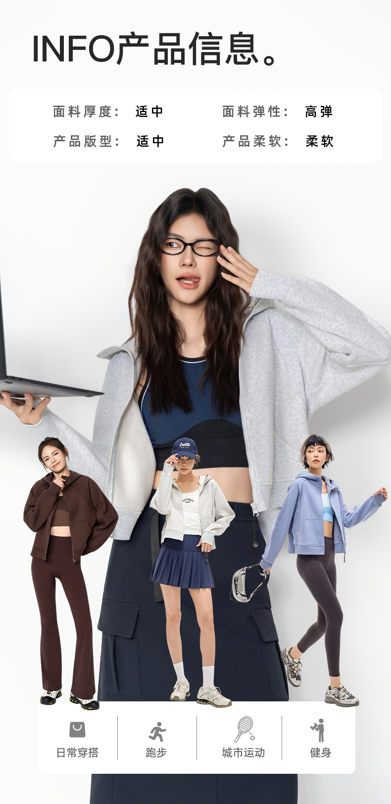 Leorrey乐拉运动休闲户外弹性宽松百搭亲肤夹克连帽卫衣外套长款外套WT0386