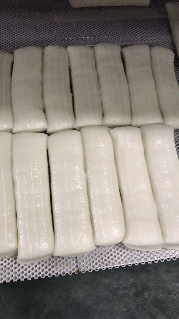 打开袋子,一条条撕开后阴干放置,不要吹风哦,可以在年糕上盖块布,待年糕水分置干后放冷水浸泡保存,几天换洗一次