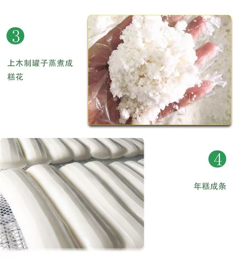 除了水和米,无任何其他添加,就这样米水洗后,沥干,蒸熟,捶打,制成年糕,保持原始米香~