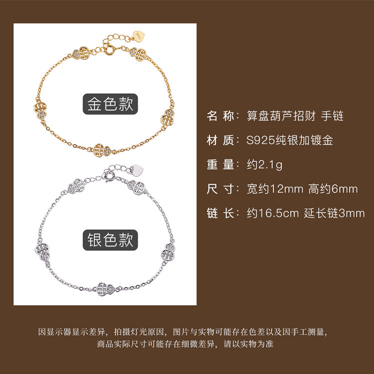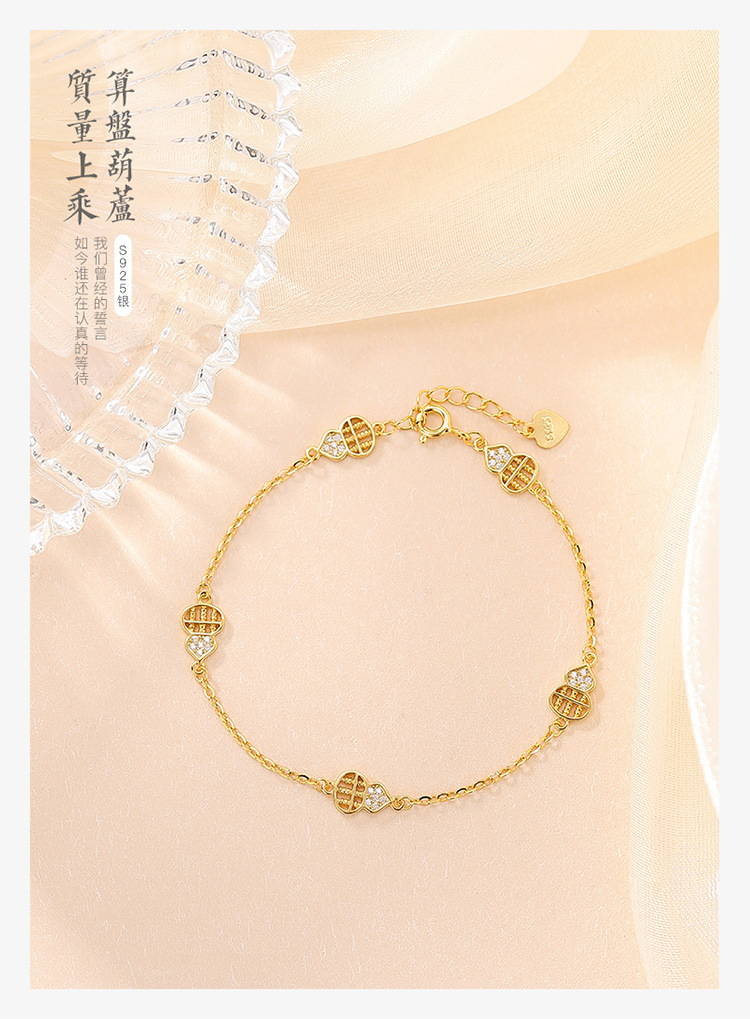 【招财葫芦】S925纯银镀金算盘葫芦招财手链【CW-SL12016】