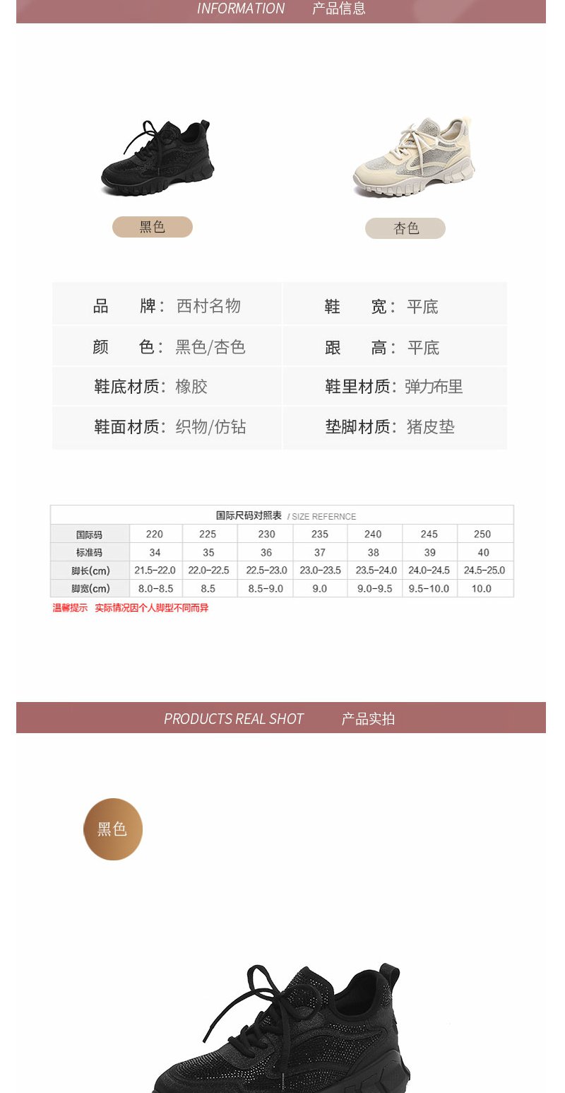 西村名物2022年春新款街头运动风厚底老爹鞋女休闲鞋T22AM19331