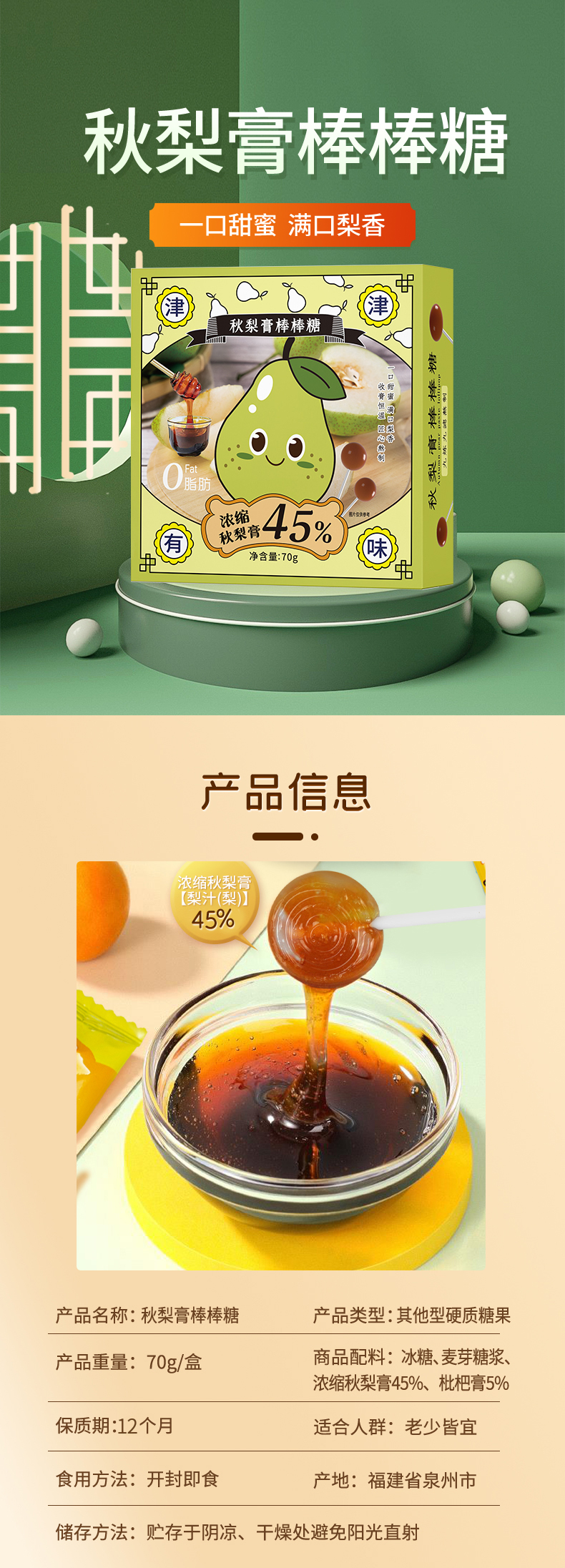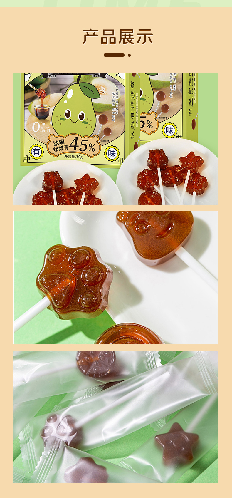 【产品名称】健德秋梨膏棒棒糖70g*8盒(共80支)/猫村长无糖山楂棒棒糖60g*8盒(共80支)