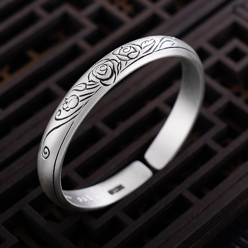 【玫瑰情怀】子佩集S999银手工手镯原创设计【55071201】2407
