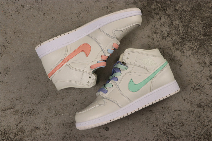 乔丹/Air Jordan AJ1 aj1 乔丹1代 乔1 乔丹1代中帮系列 Air Jordan 1 WMNS “Candy” 货号:555112-035 乔1鸳鸯糖果米黄 粉红鸳鸯