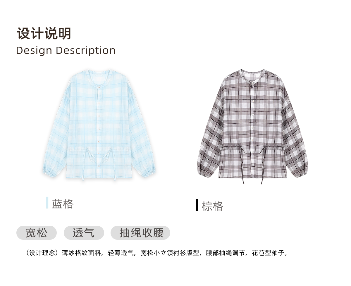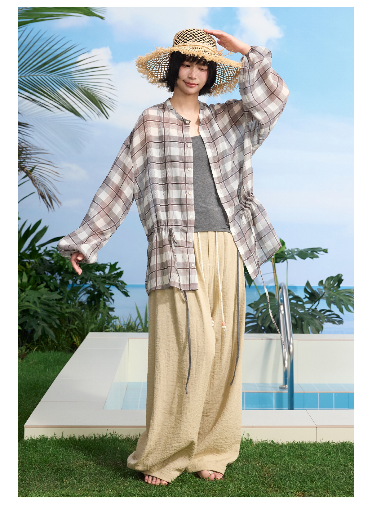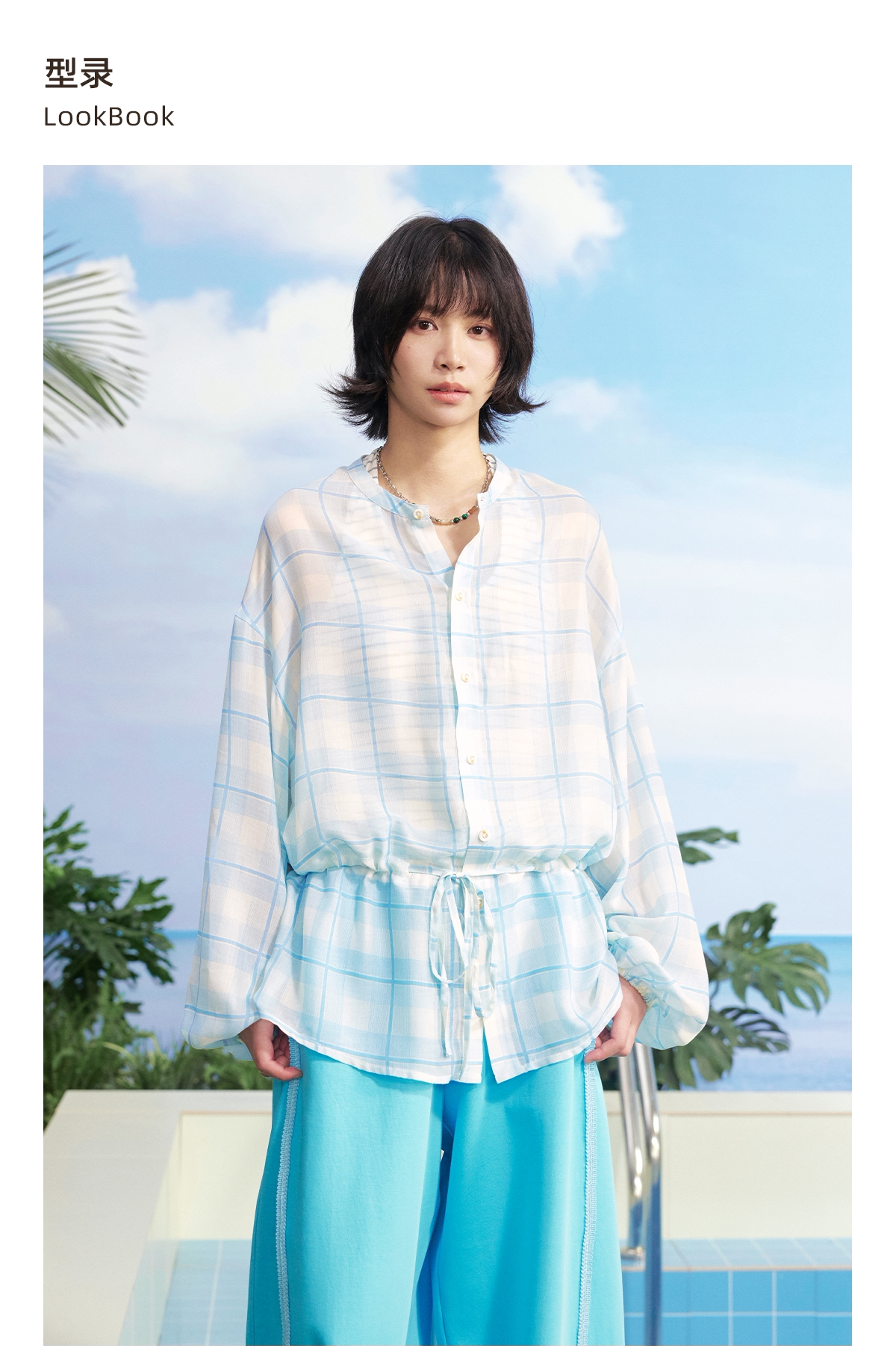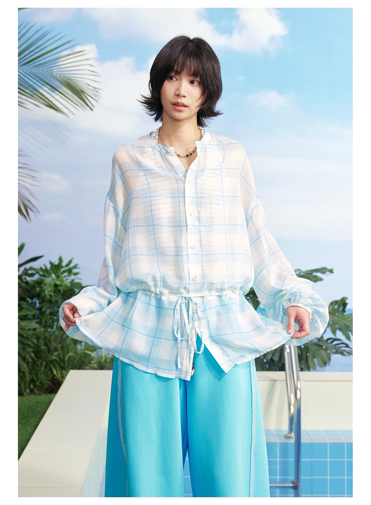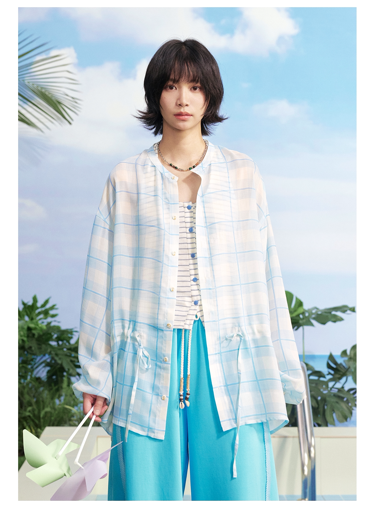 早乙女惠子saotome/STMCS222206/格纹薄纱遮阳收腰长袖衬衫