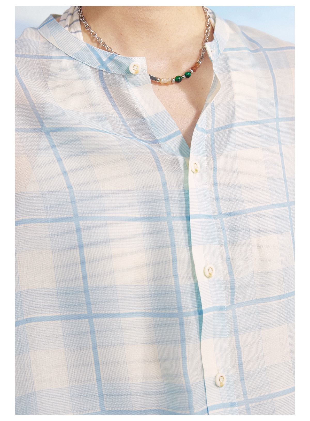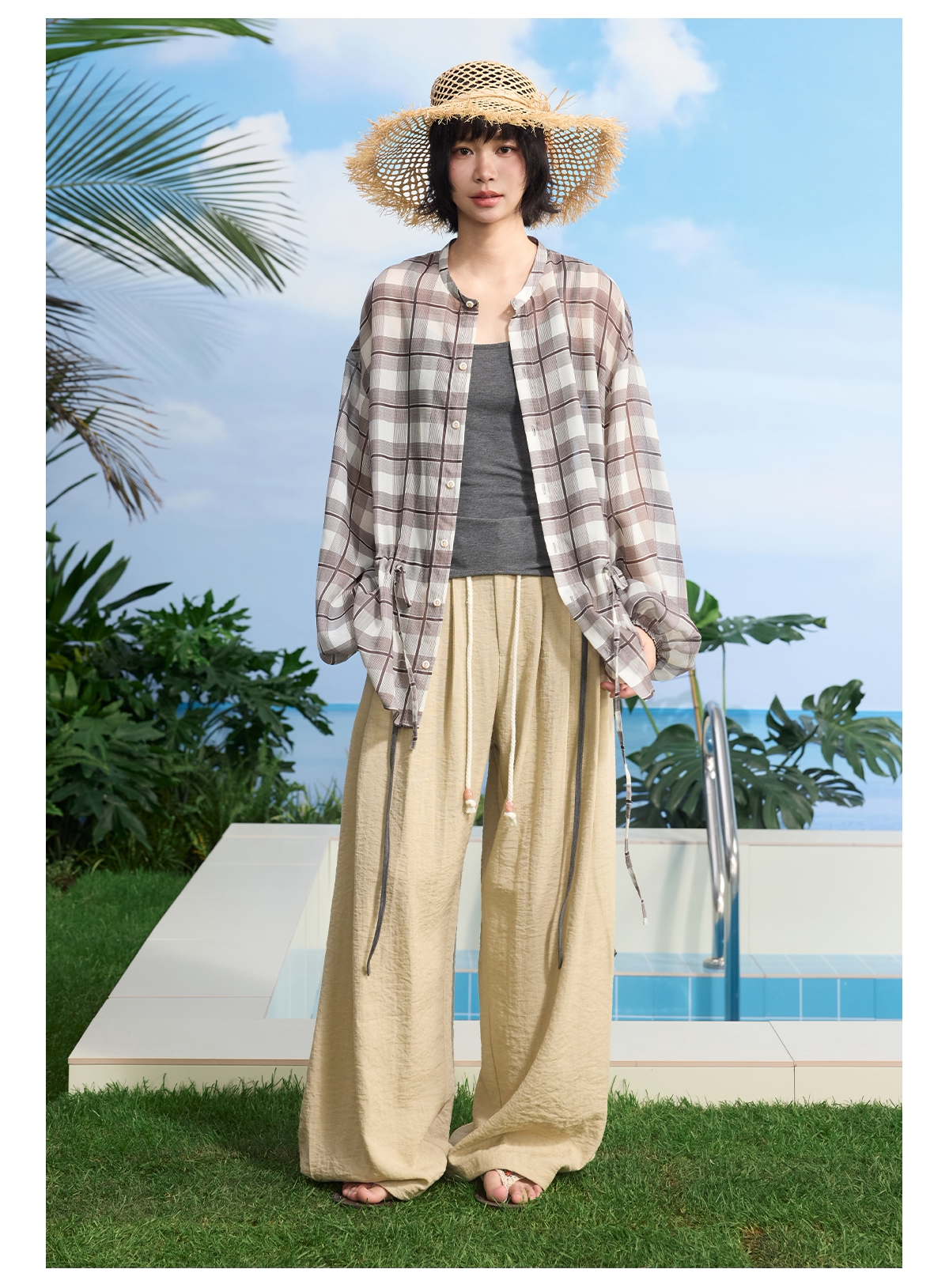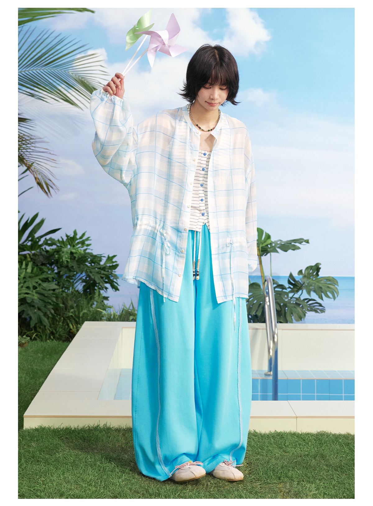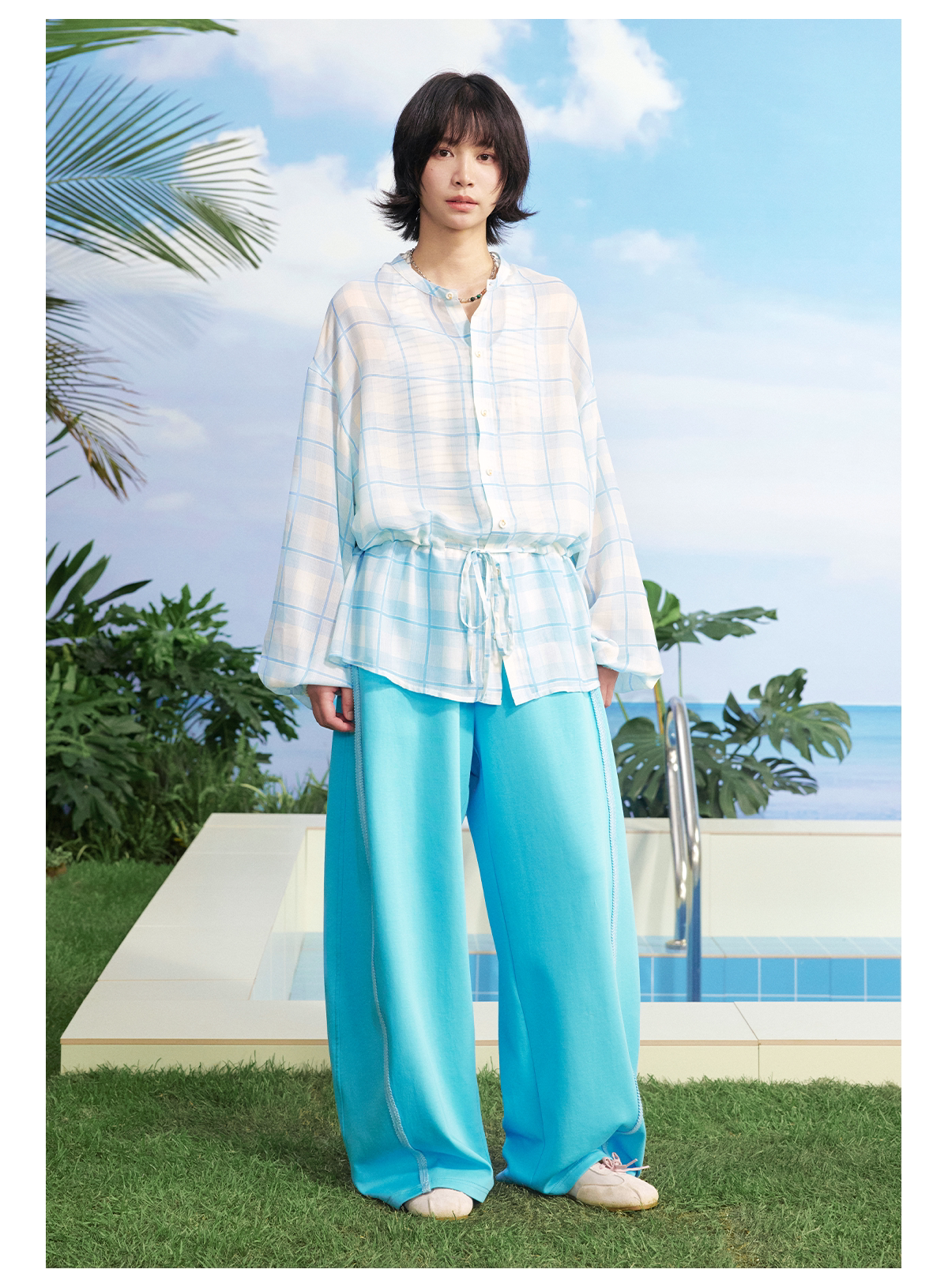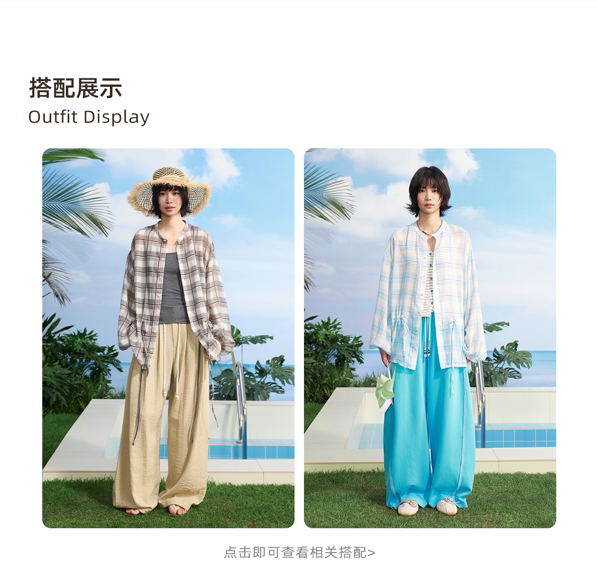 早乙女惠子saotome/STMCS222206/格纹薄纱遮阳收腰长袖衬衫