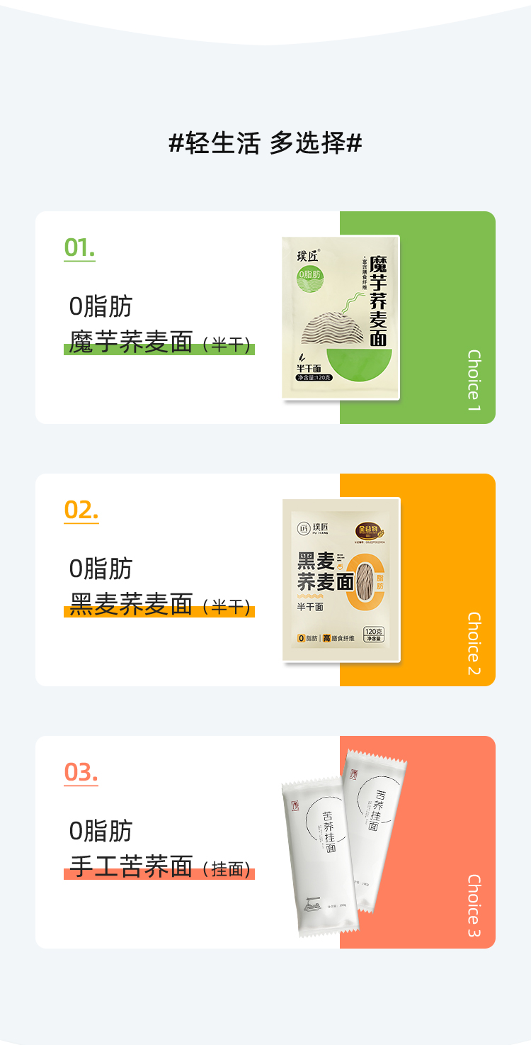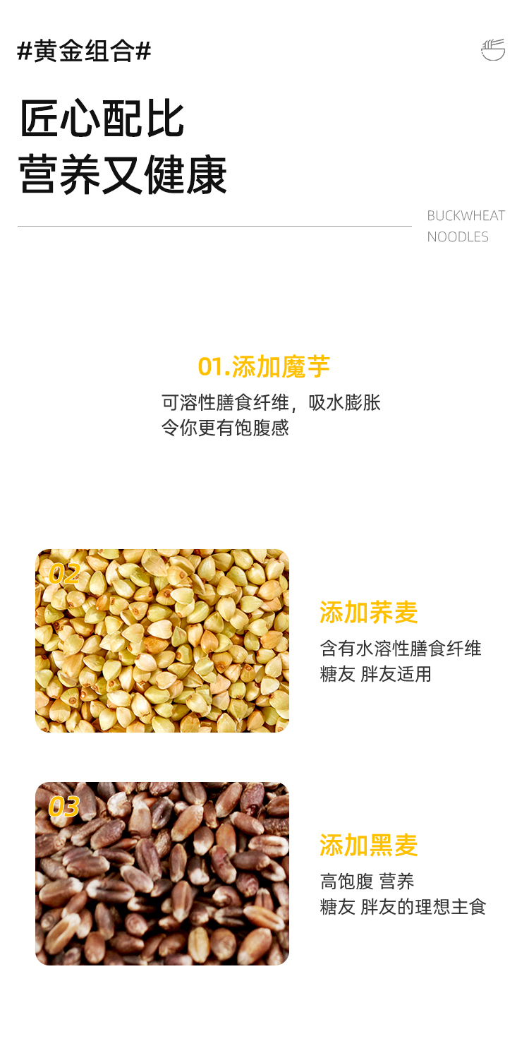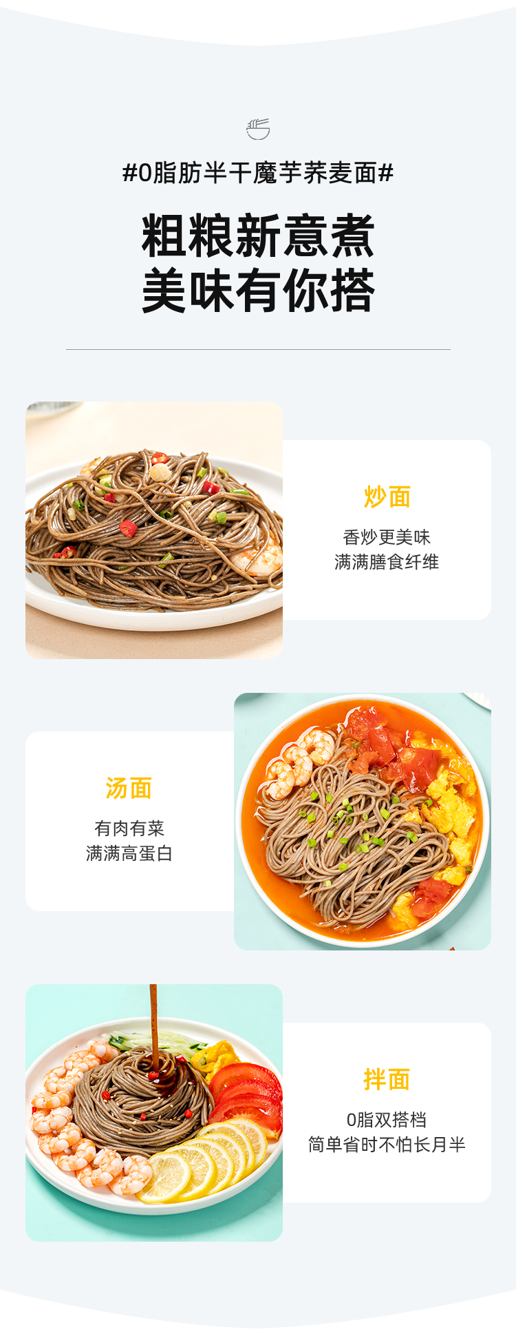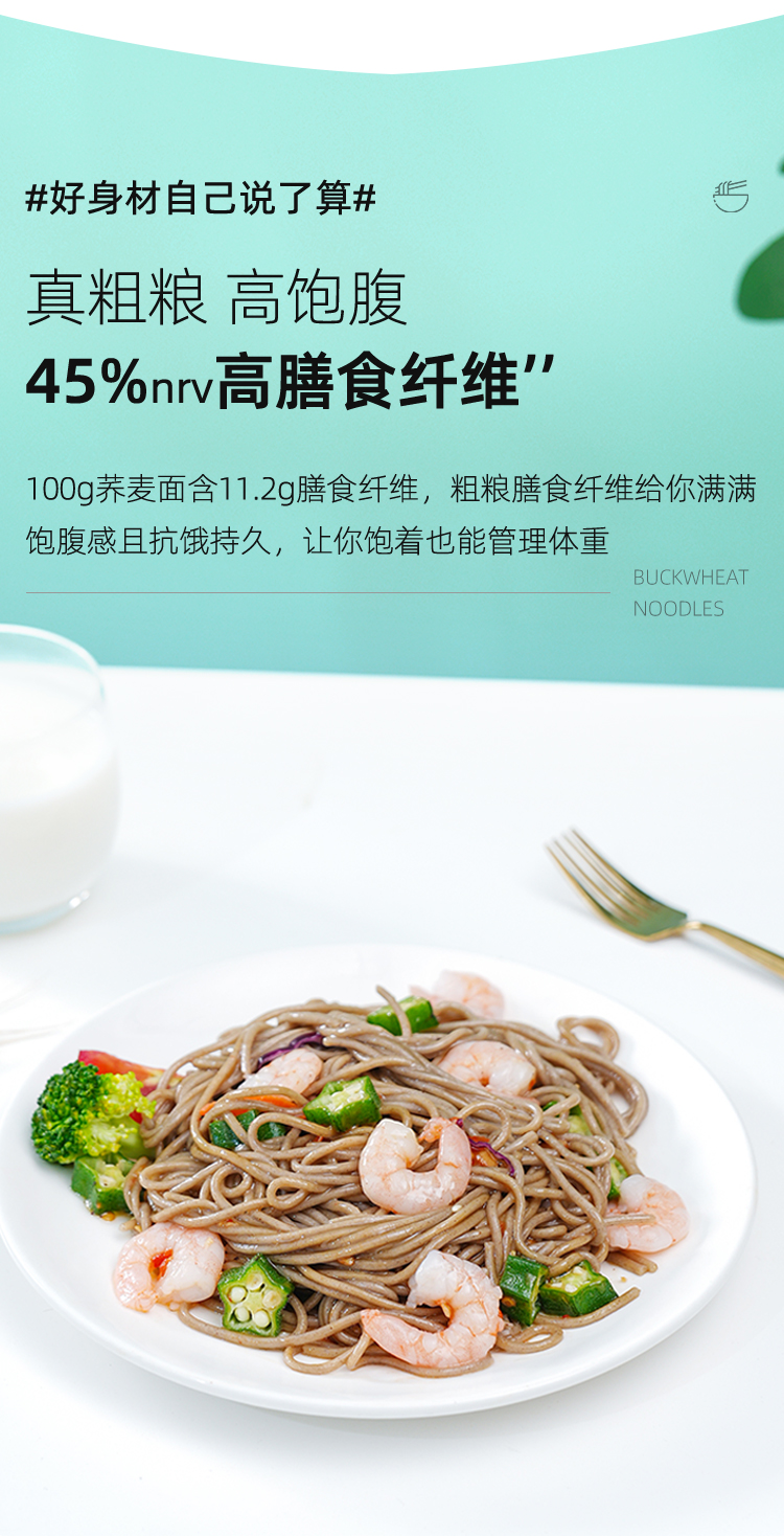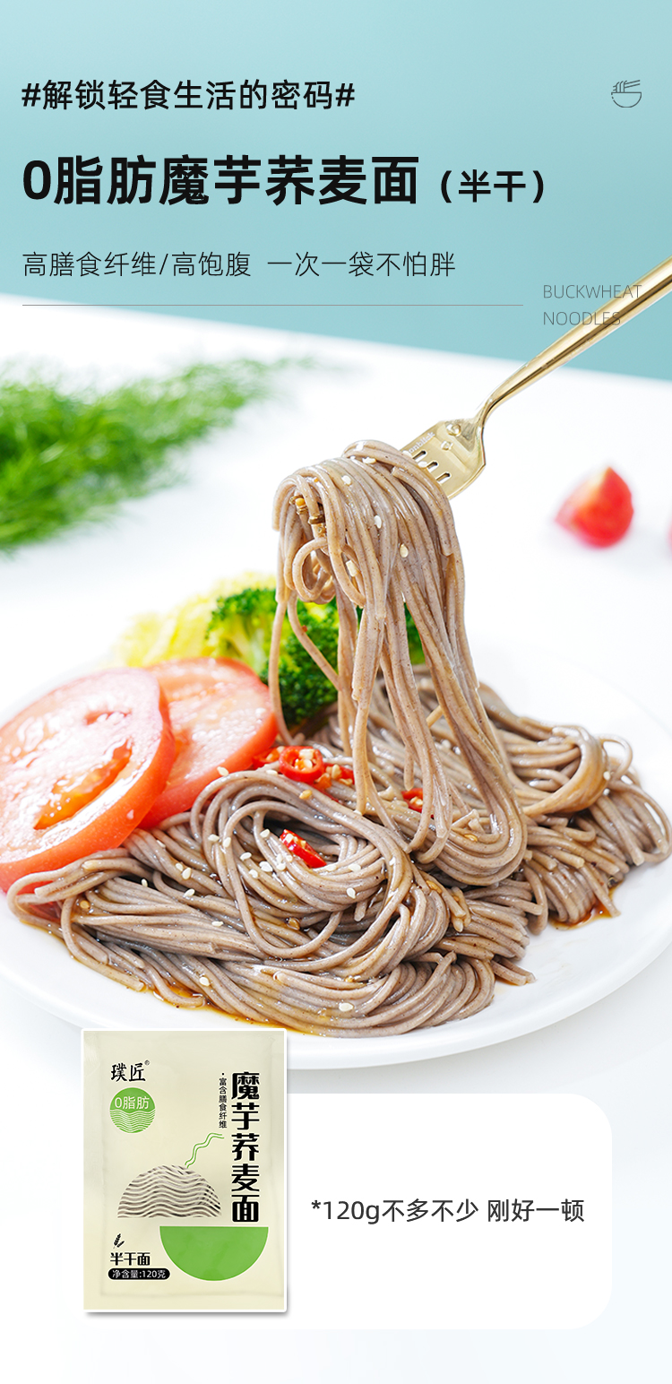 璞匠半干魔芋荞麦面条0脂肪挂面粗粮健身代餐杂粮主食半干面