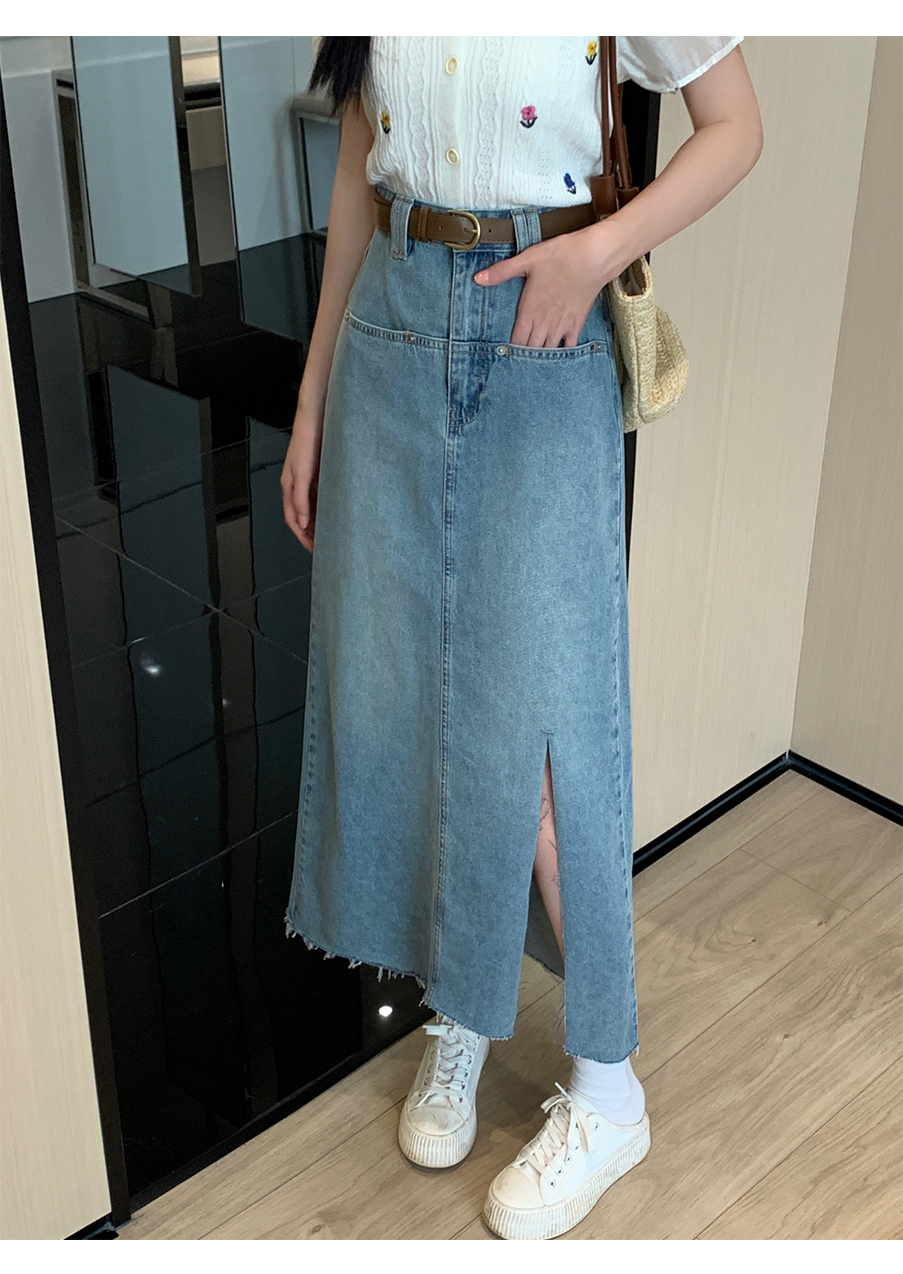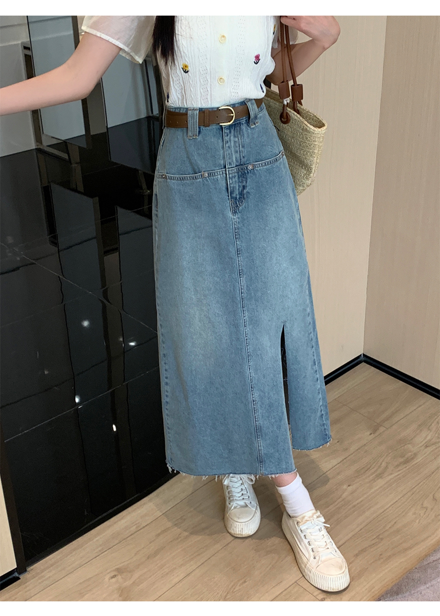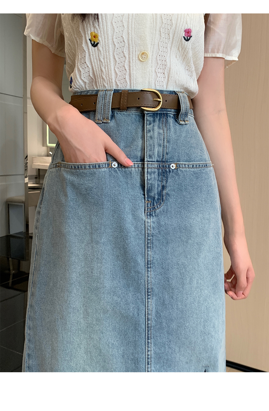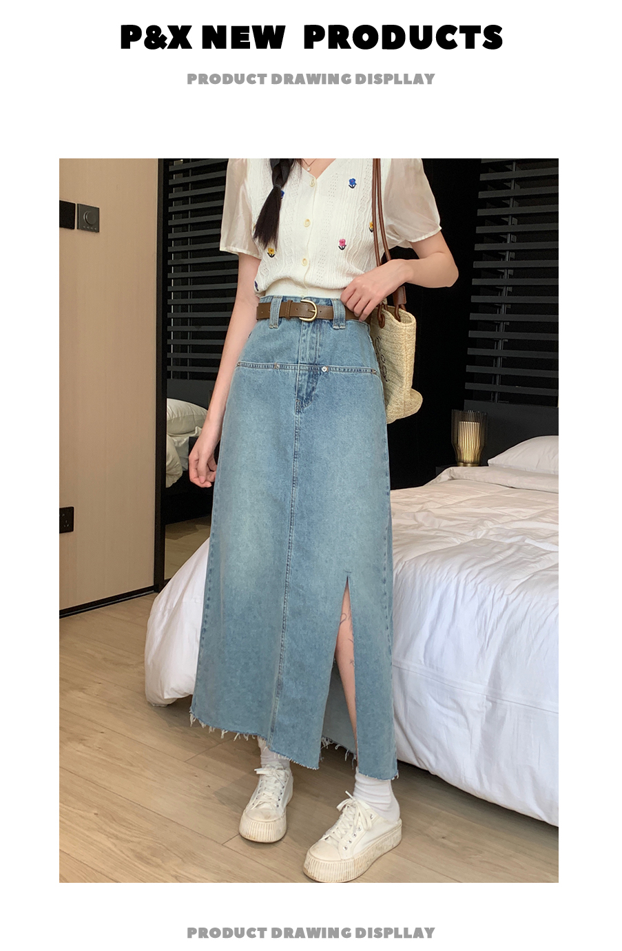 P&X设计师女装2023夏季 牛仔半身长裙 蓝色 823207666B