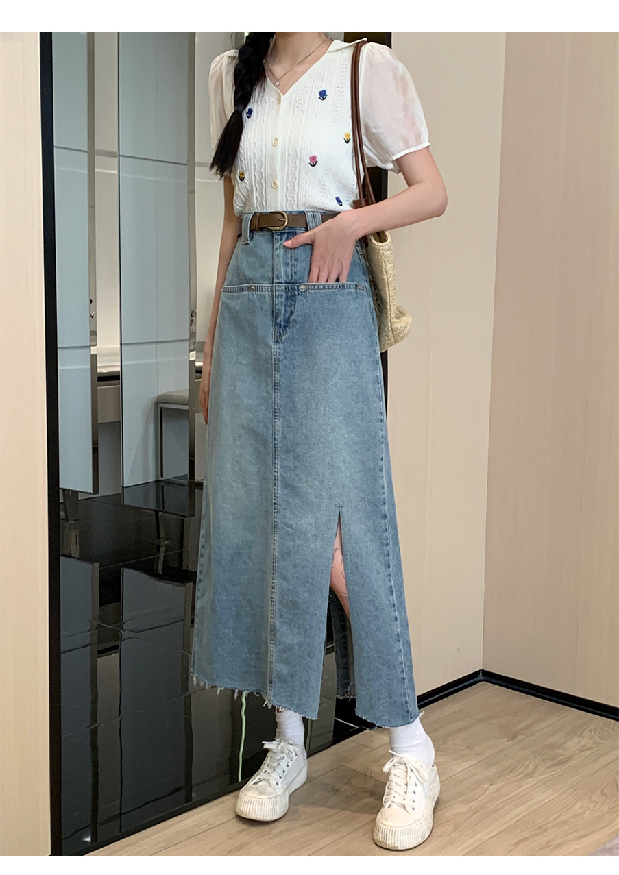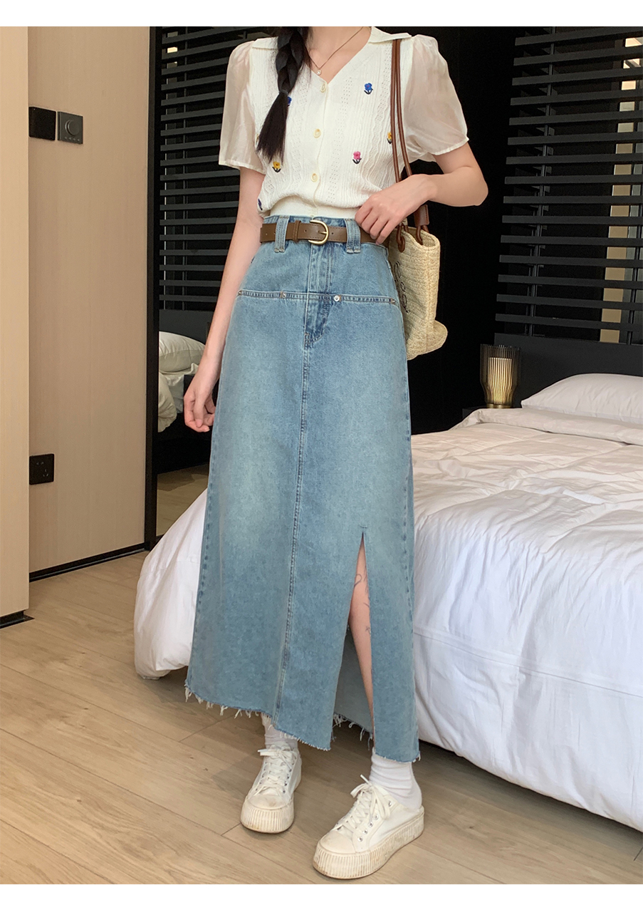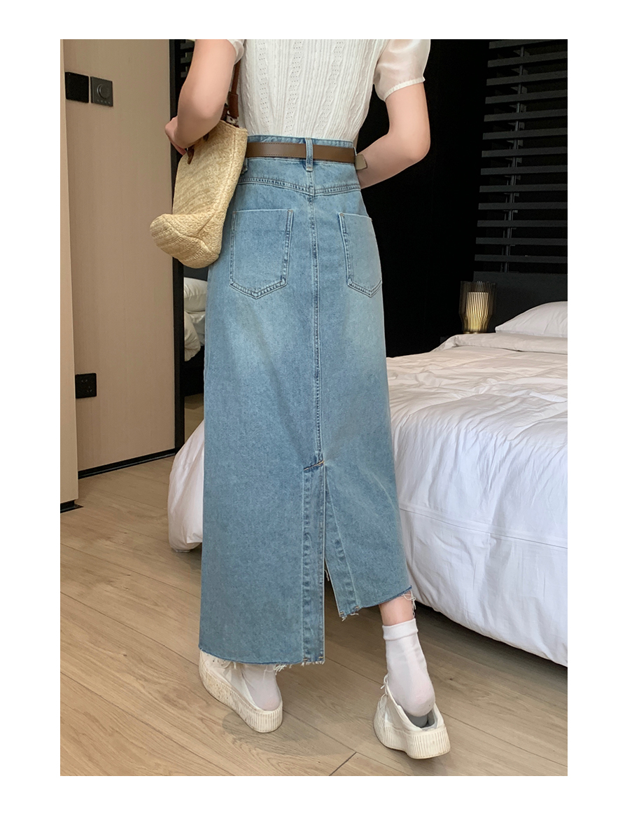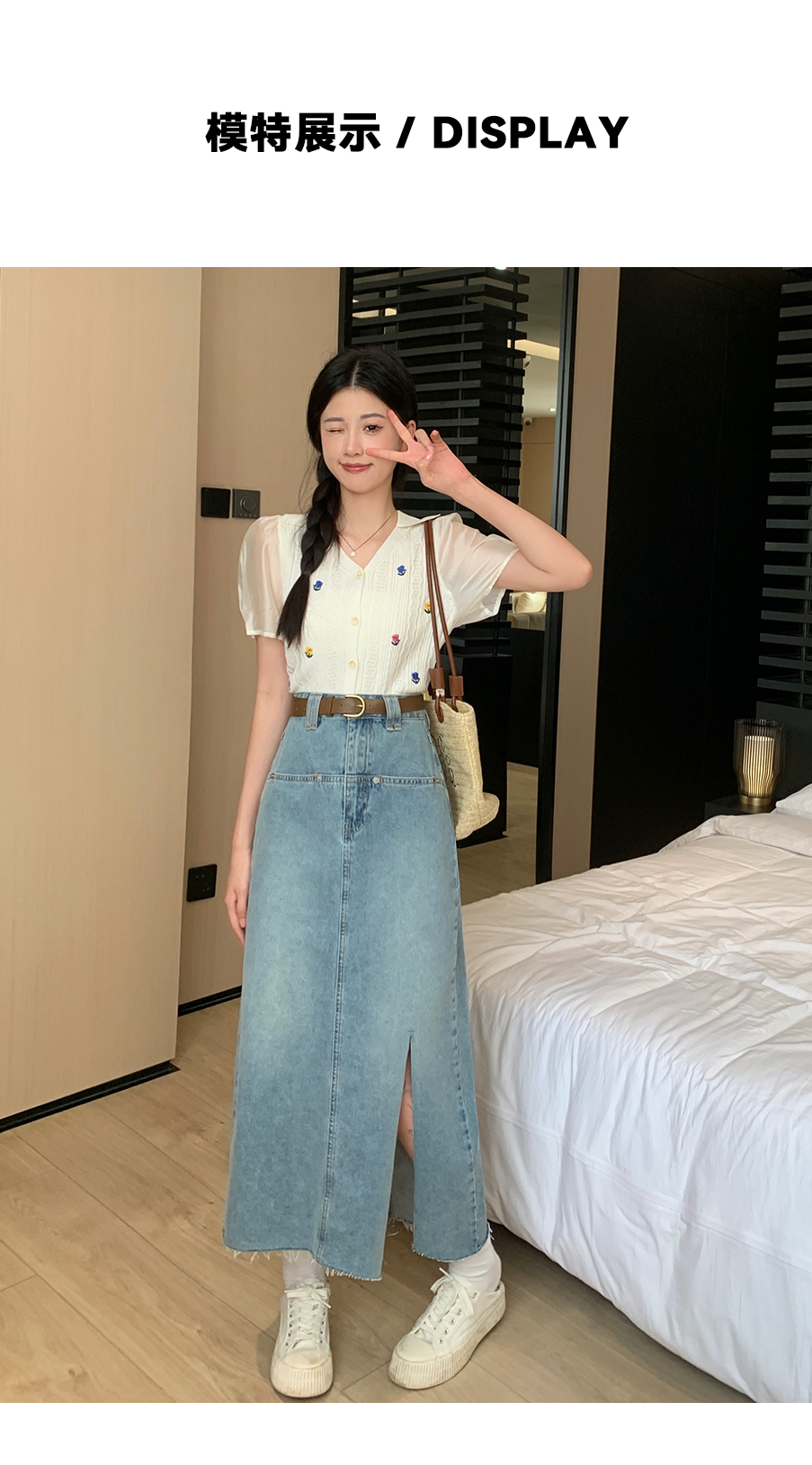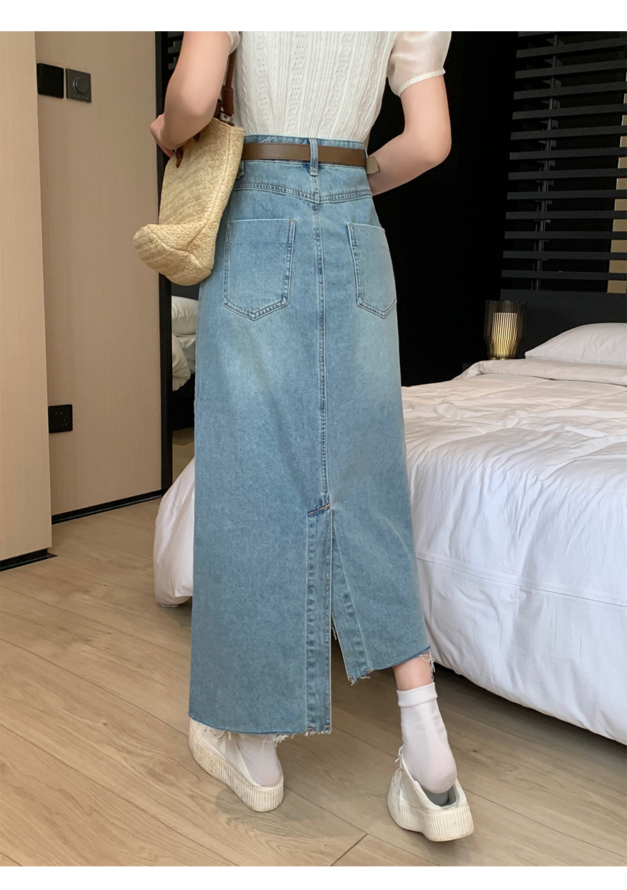 P&X设计师女装2023夏季 牛仔半身长裙 蓝色 823207666B