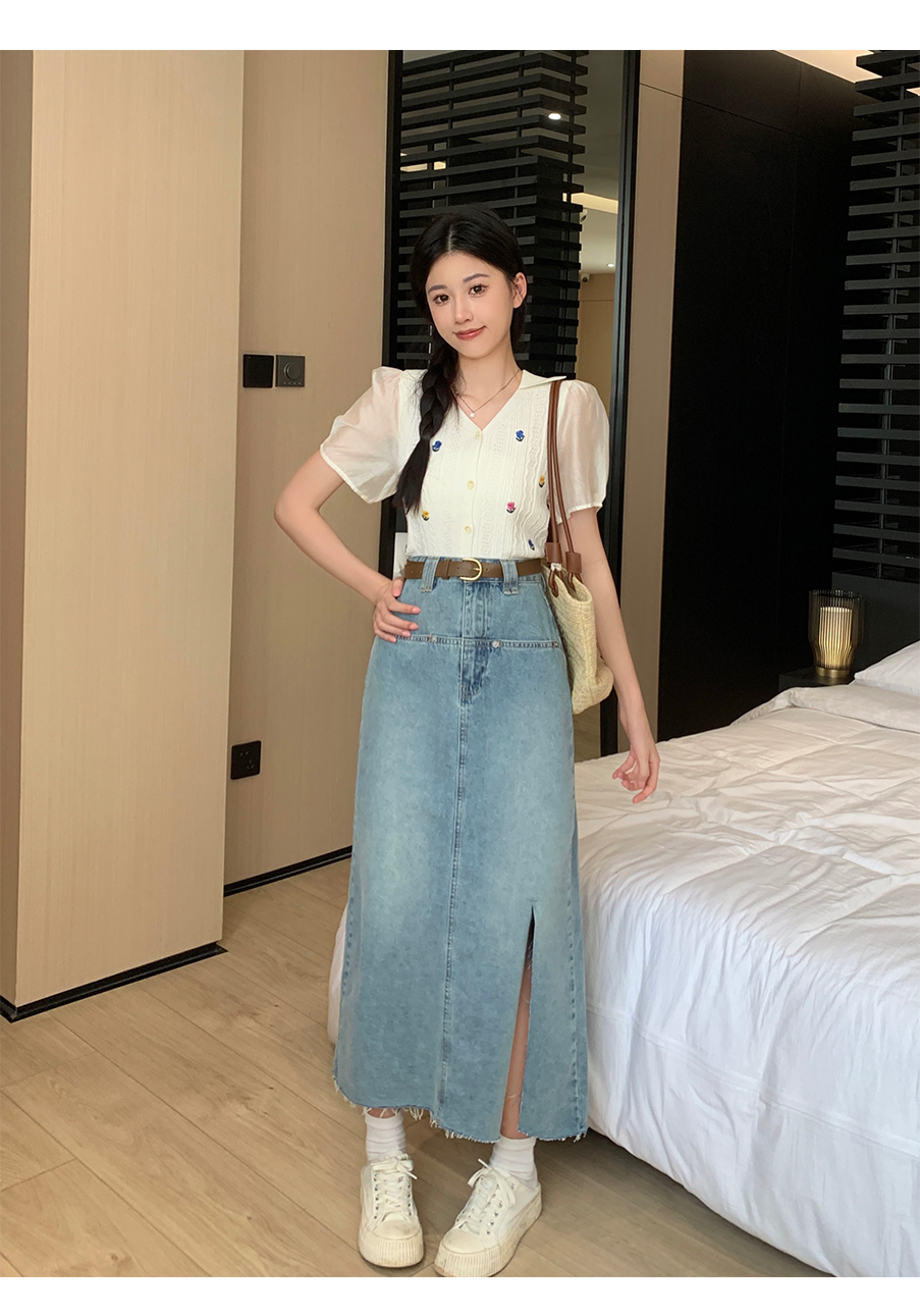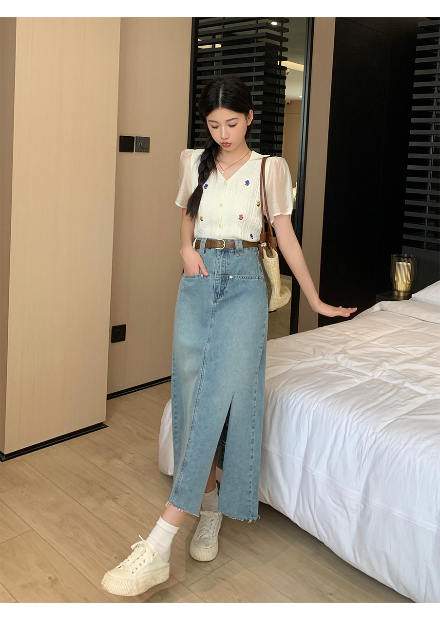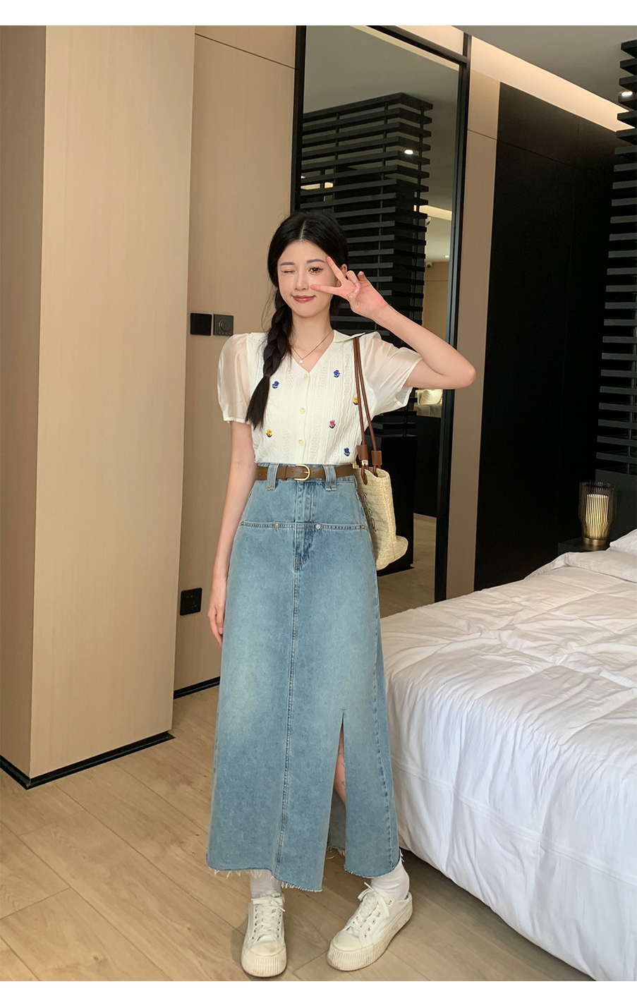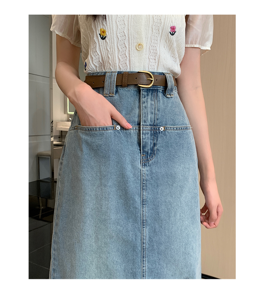 P&X设计师女装2023夏季 牛仔半身长裙 蓝色 823207666B