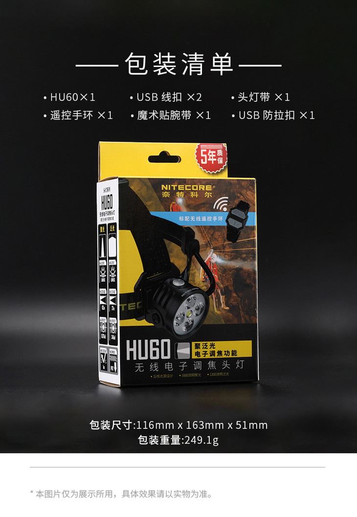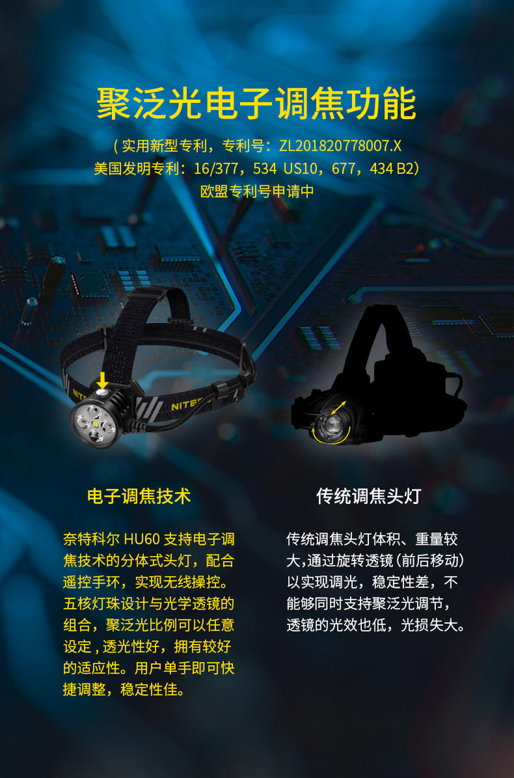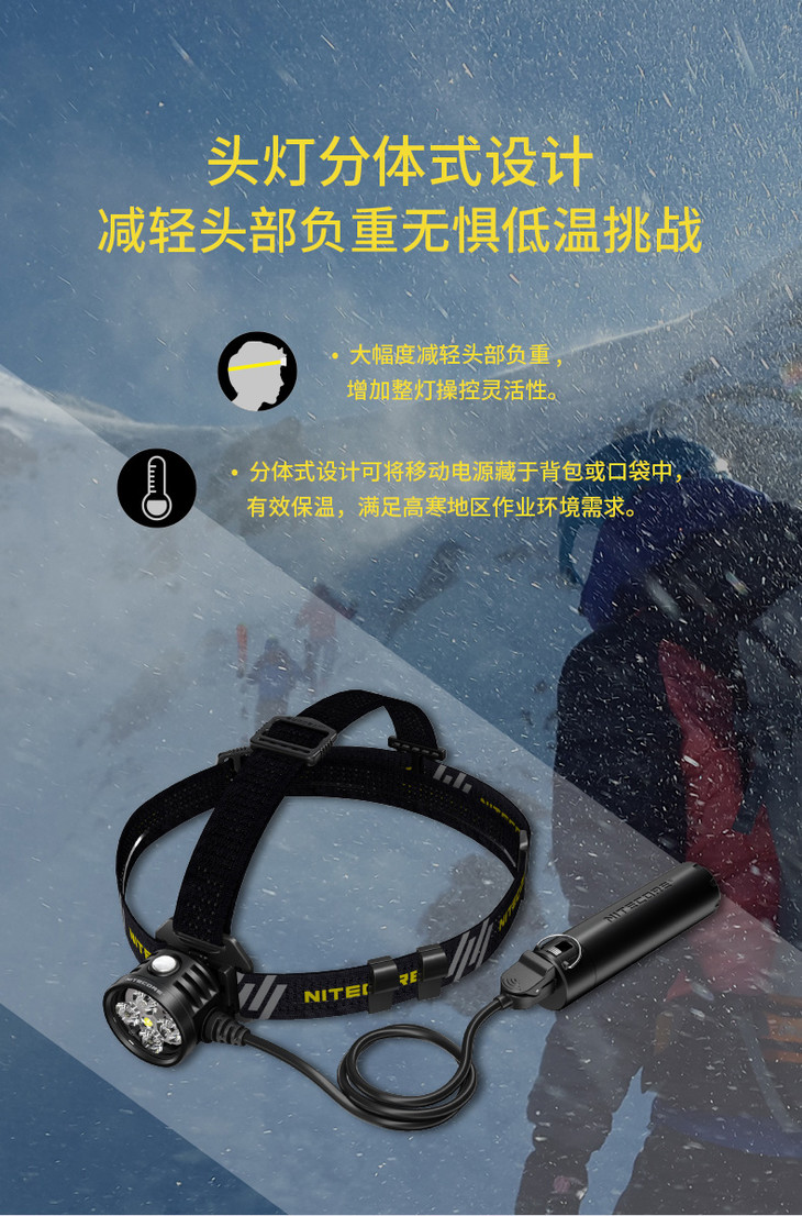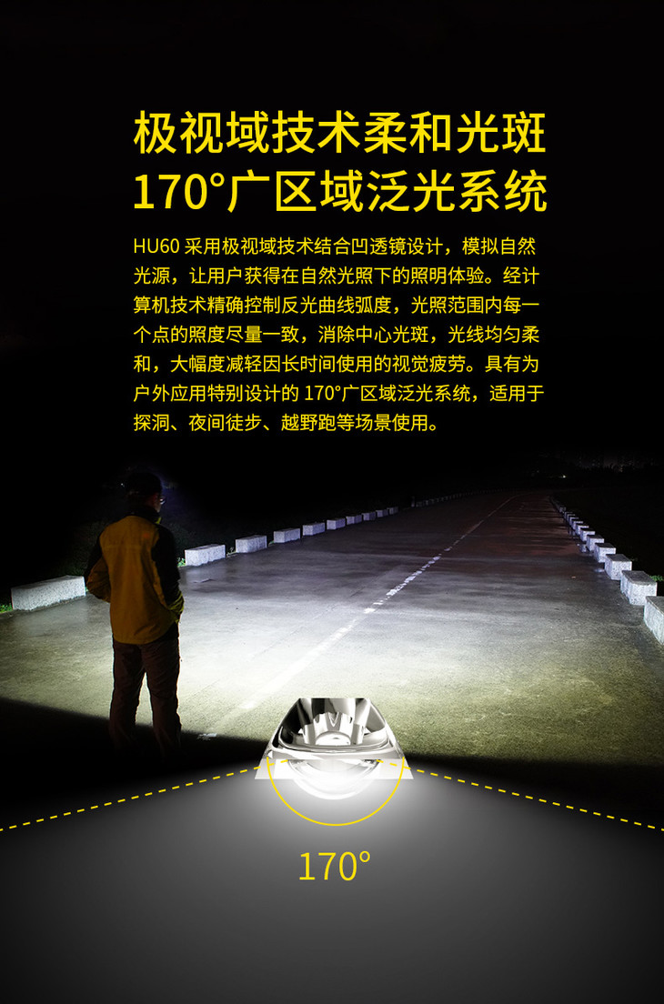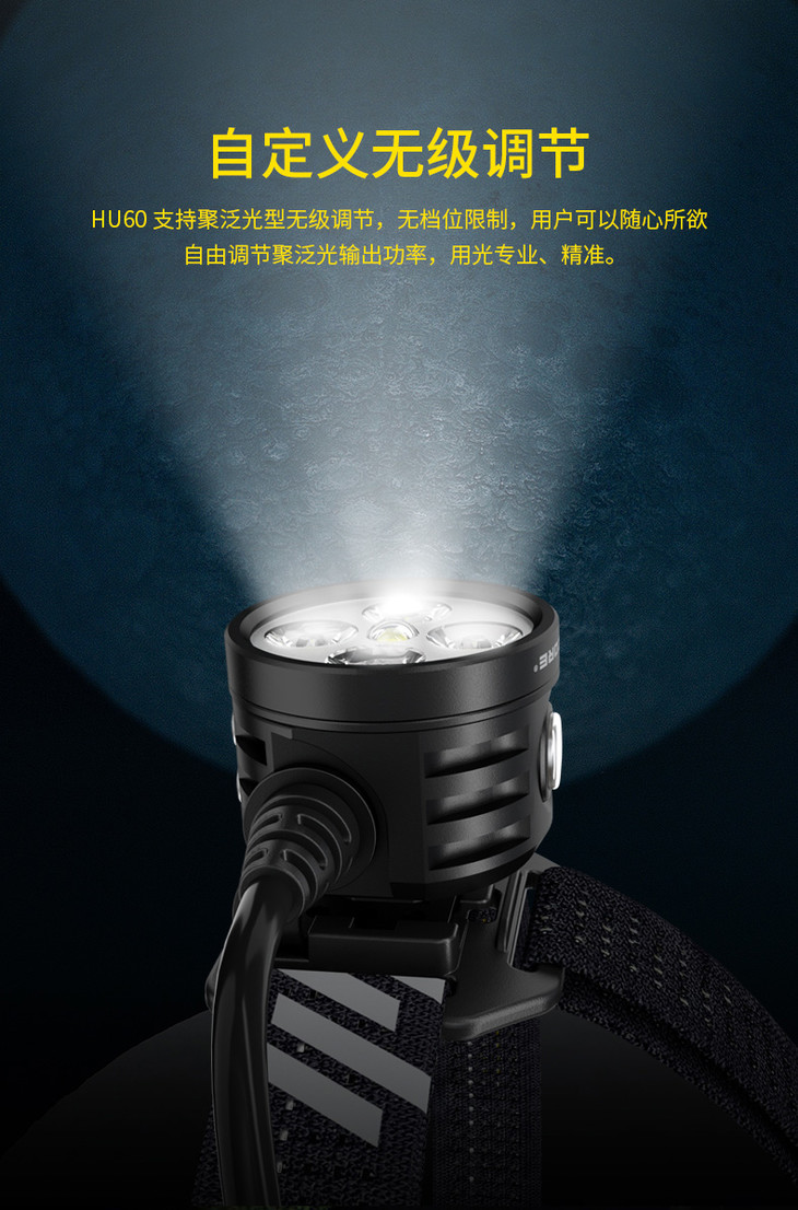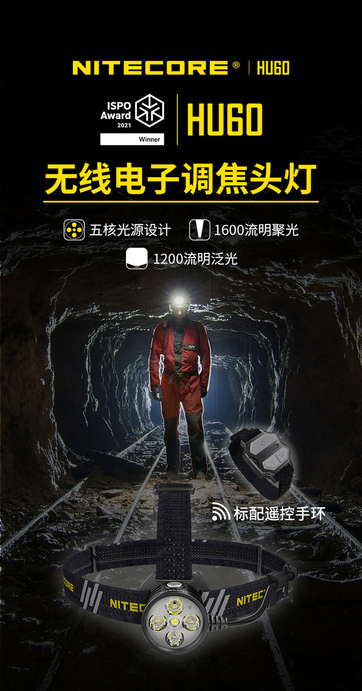 NITECORE奈特科尔HU60无线电子调焦1600流明变焦工业探险头灯