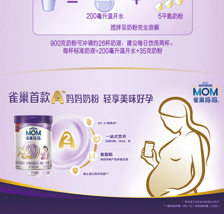 雀巢(nestle)孕产妇奶粉 A2妈妈配方奶粉 (孕妇产妇适用)900克【雀巢】