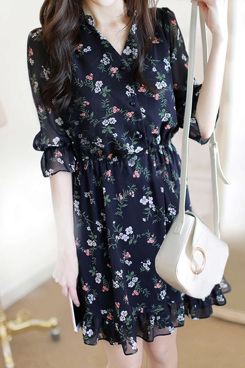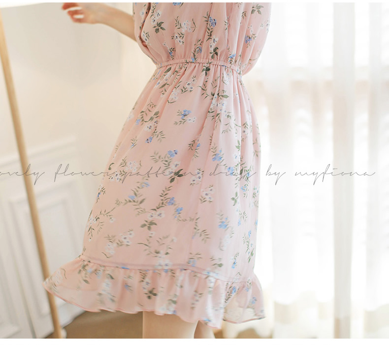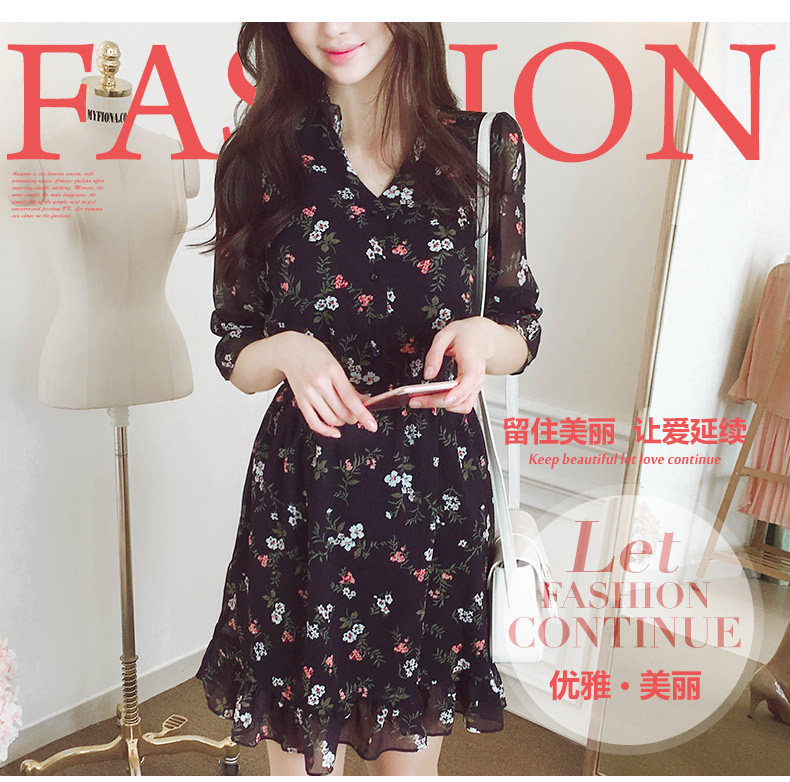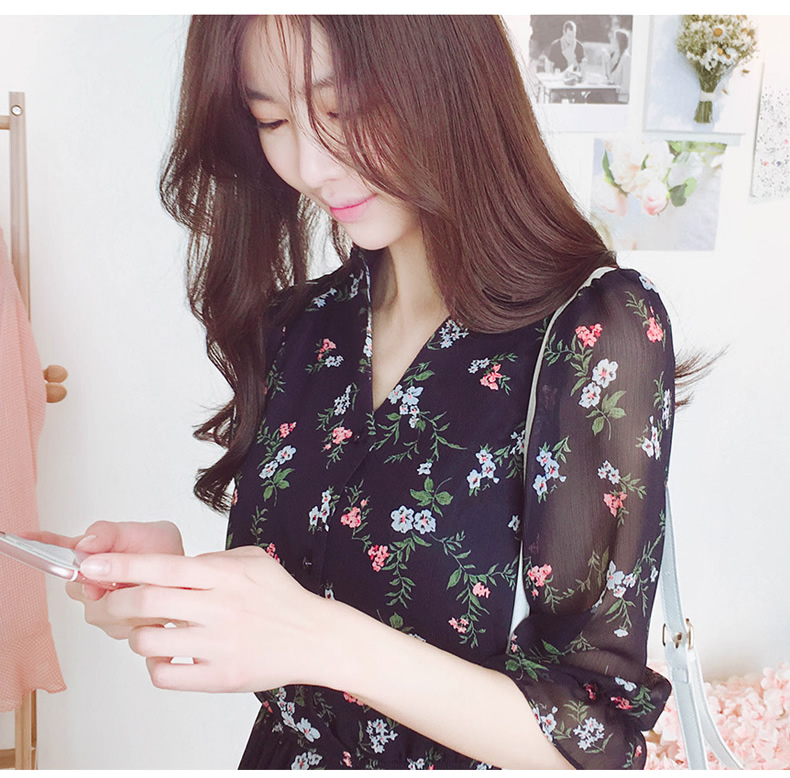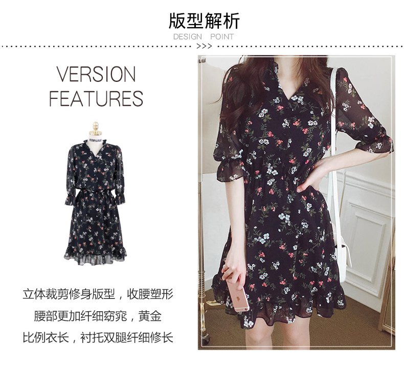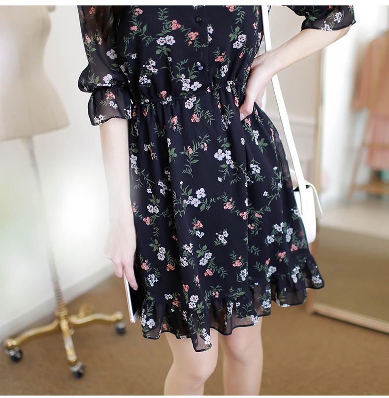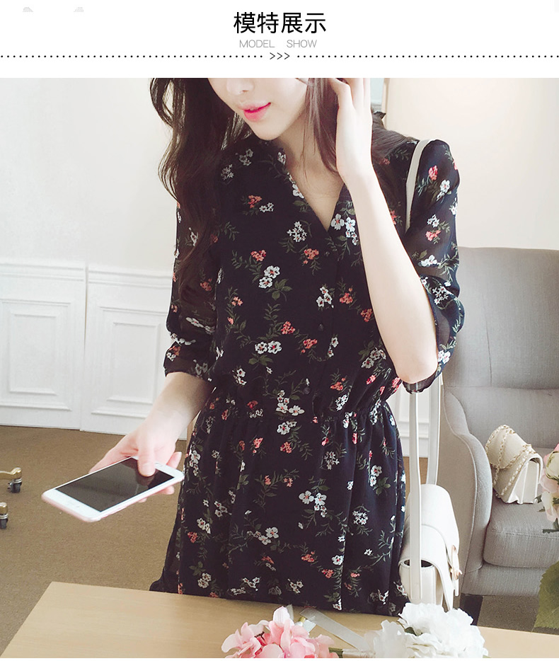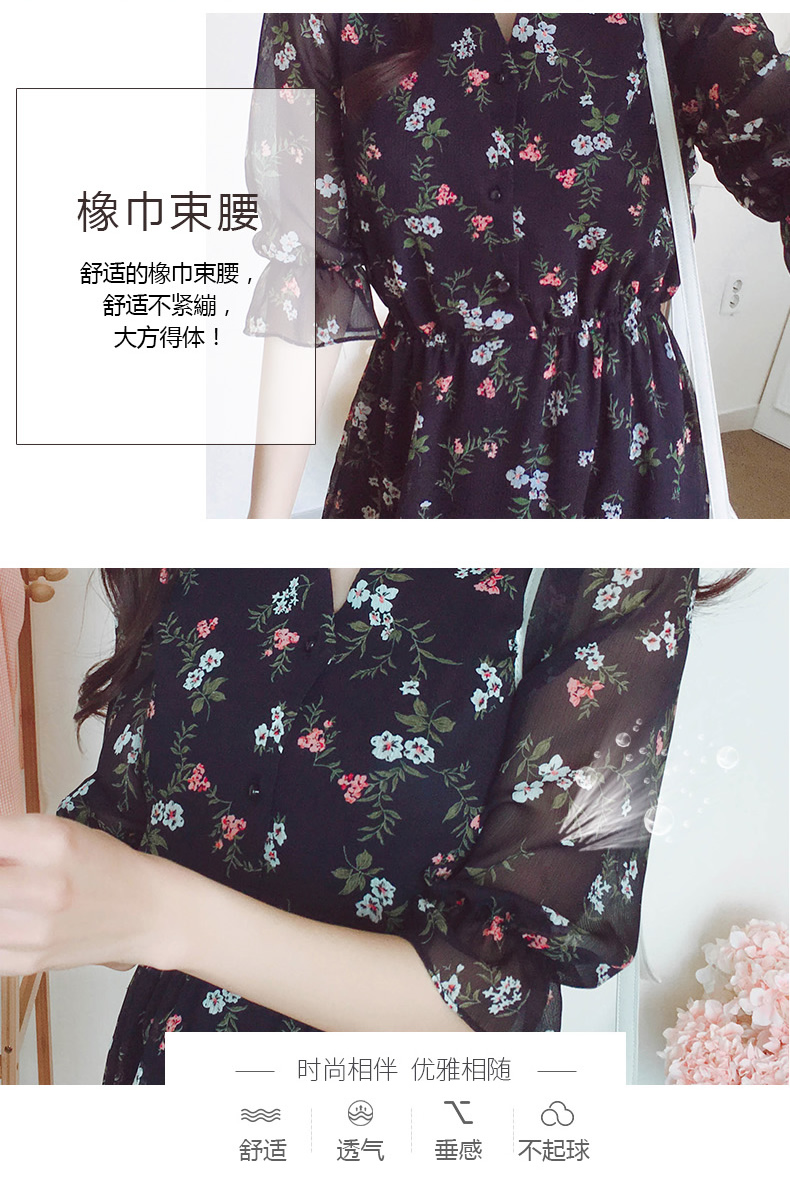 法式桔梗收腰连衣裙很仙的雪纺碎花裙少女小个子仙女裙chic裙春秋